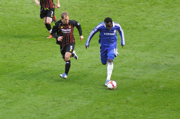 The weather was great throughout the game. I arrived a couple of minutes late and so missed the offside goal from Frank. To be honest, I almost missed Essien’s goal. I saw Frank over the ball, looked up at the away fans, then saw the ball flying towards the goal from the “D.” I couldn’t work it out, but who cares? Essien really impressed me so much throughout the first half. He has so much energy and drive. How we missed him. We gave Wayne Bridge a magnificent reception and he clapped us on more than one occasion. He will always be loved by us at HQ. we passed the ball around well I thought, but City were awful…Robinhio especially. Just a bit annoying that we didn’t score more. I noted a lovely “one-two” between Frank and Essien, something that Ballack would never be able to do.