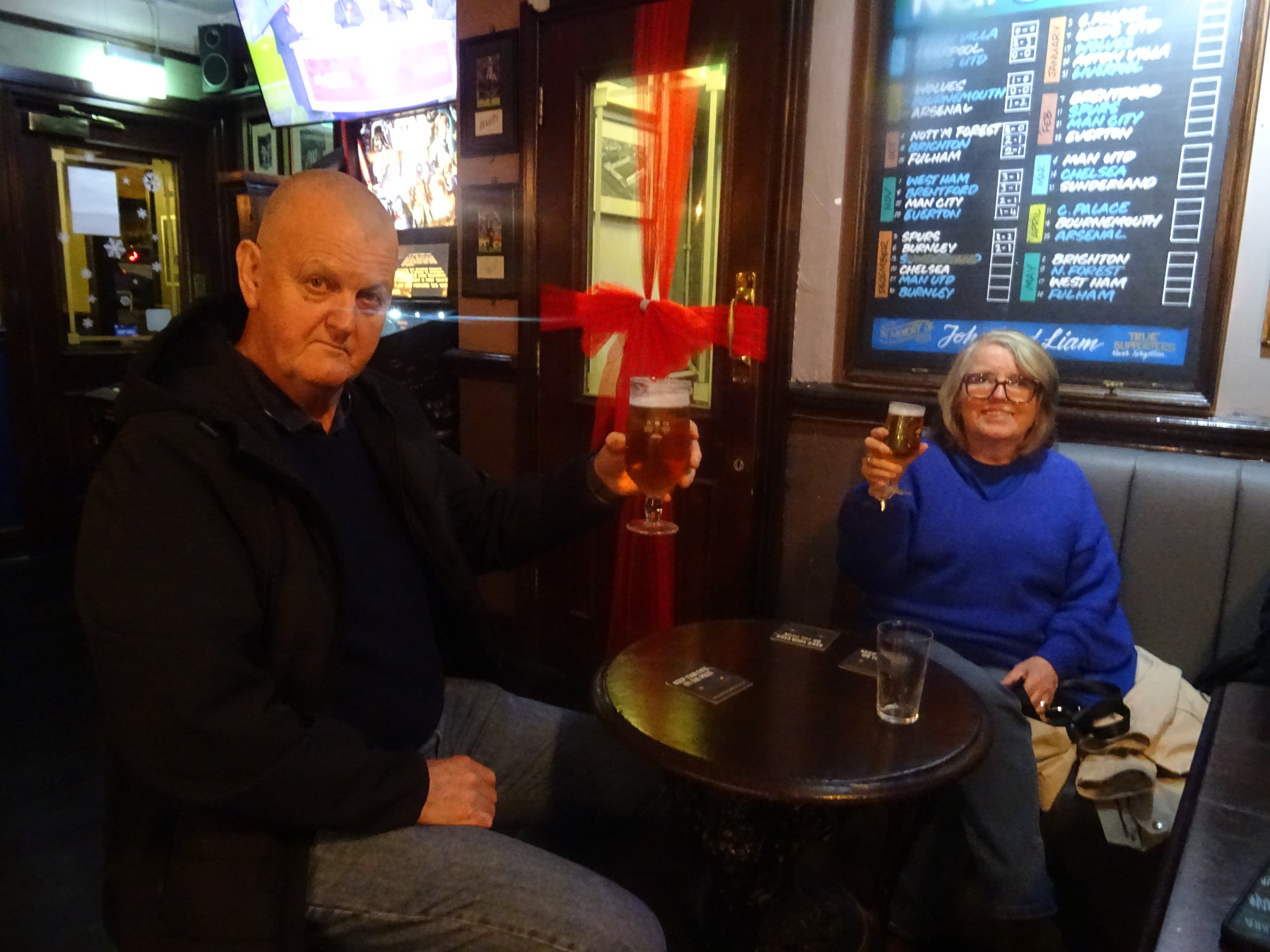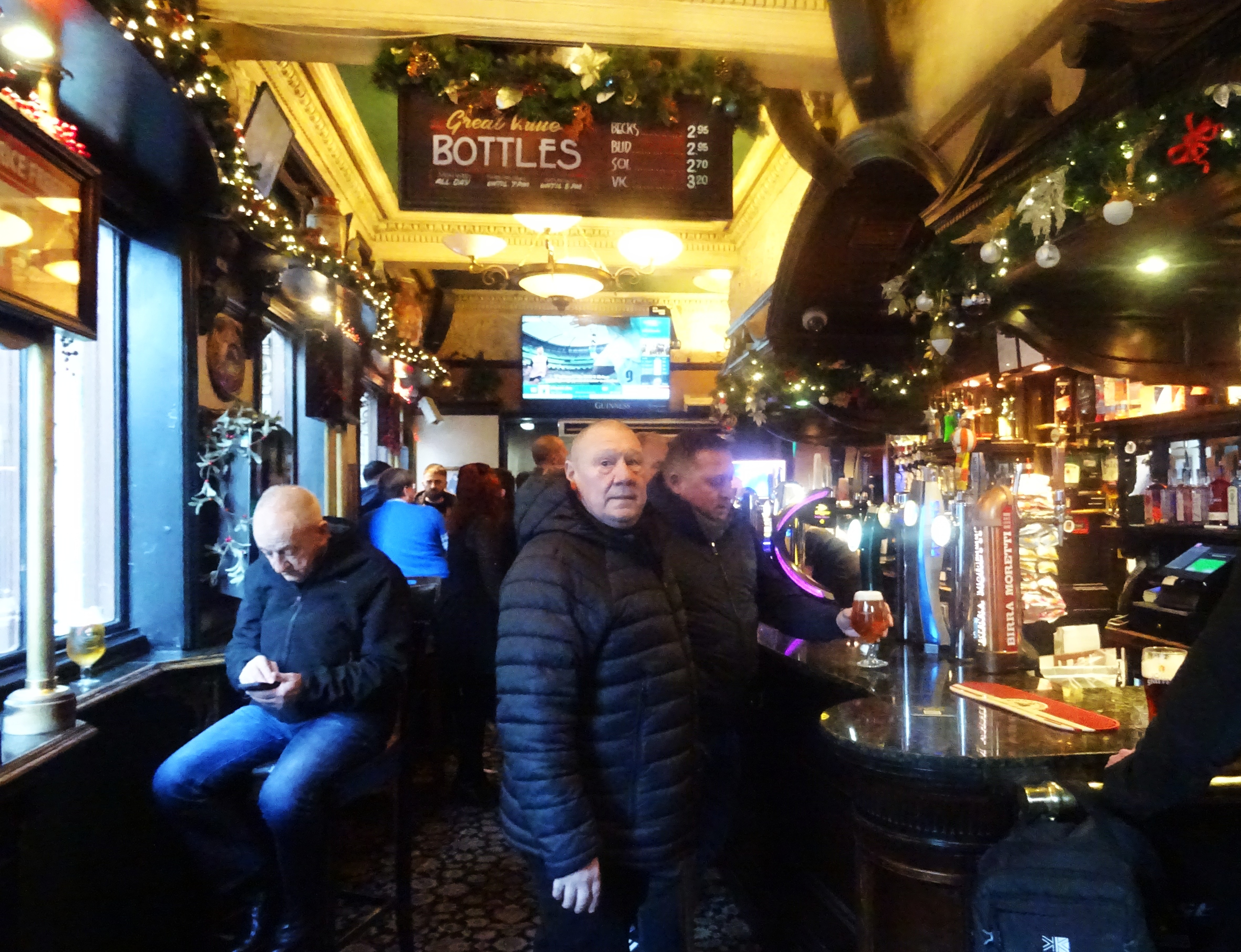 Ryan from Stoke had seen that we were plotted up in “The Beehive” and joined us and stayed with us all night. The place was getting busy. We were perched on stools near the doorway. Space was at a premium. The last Friday before Christmas – “Black Eye Friday” – was heating up.