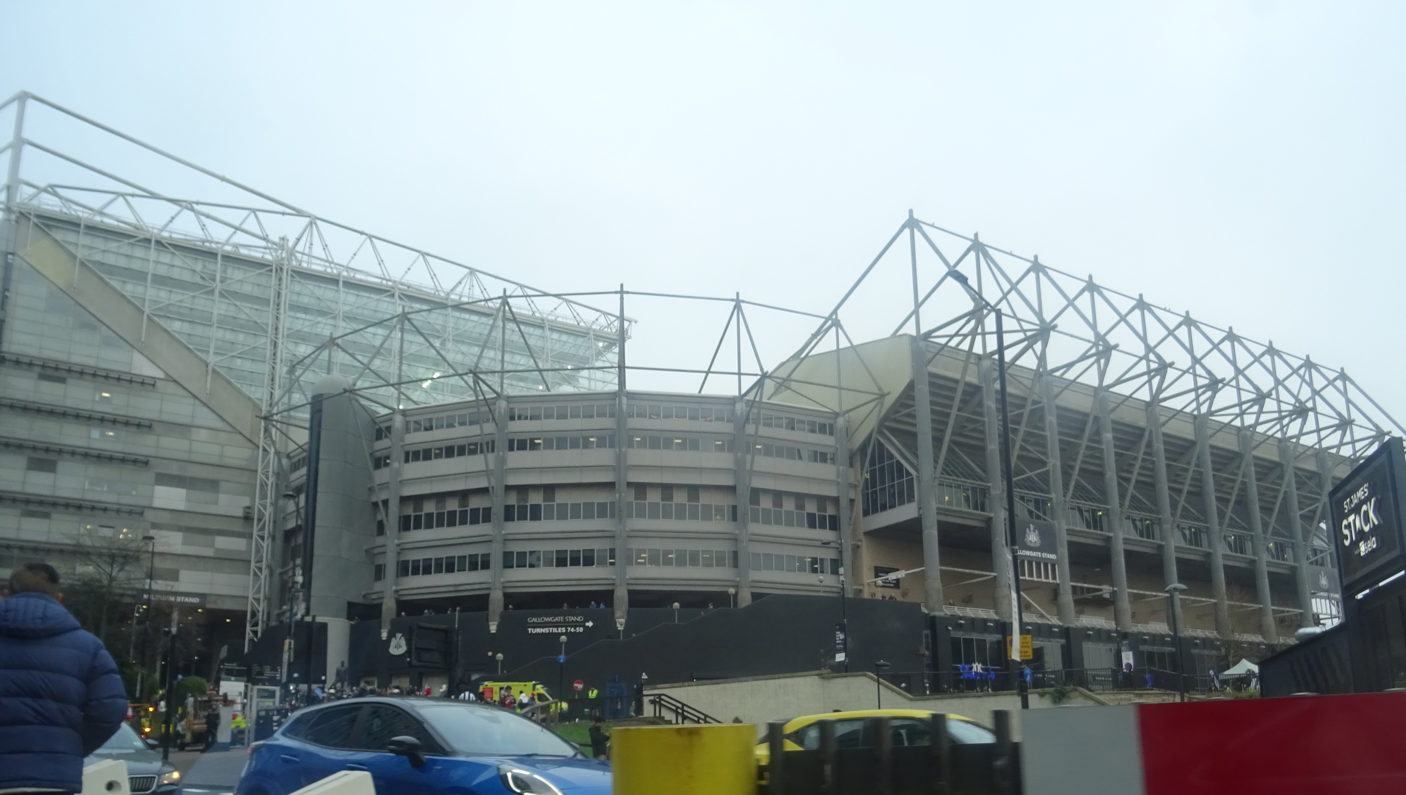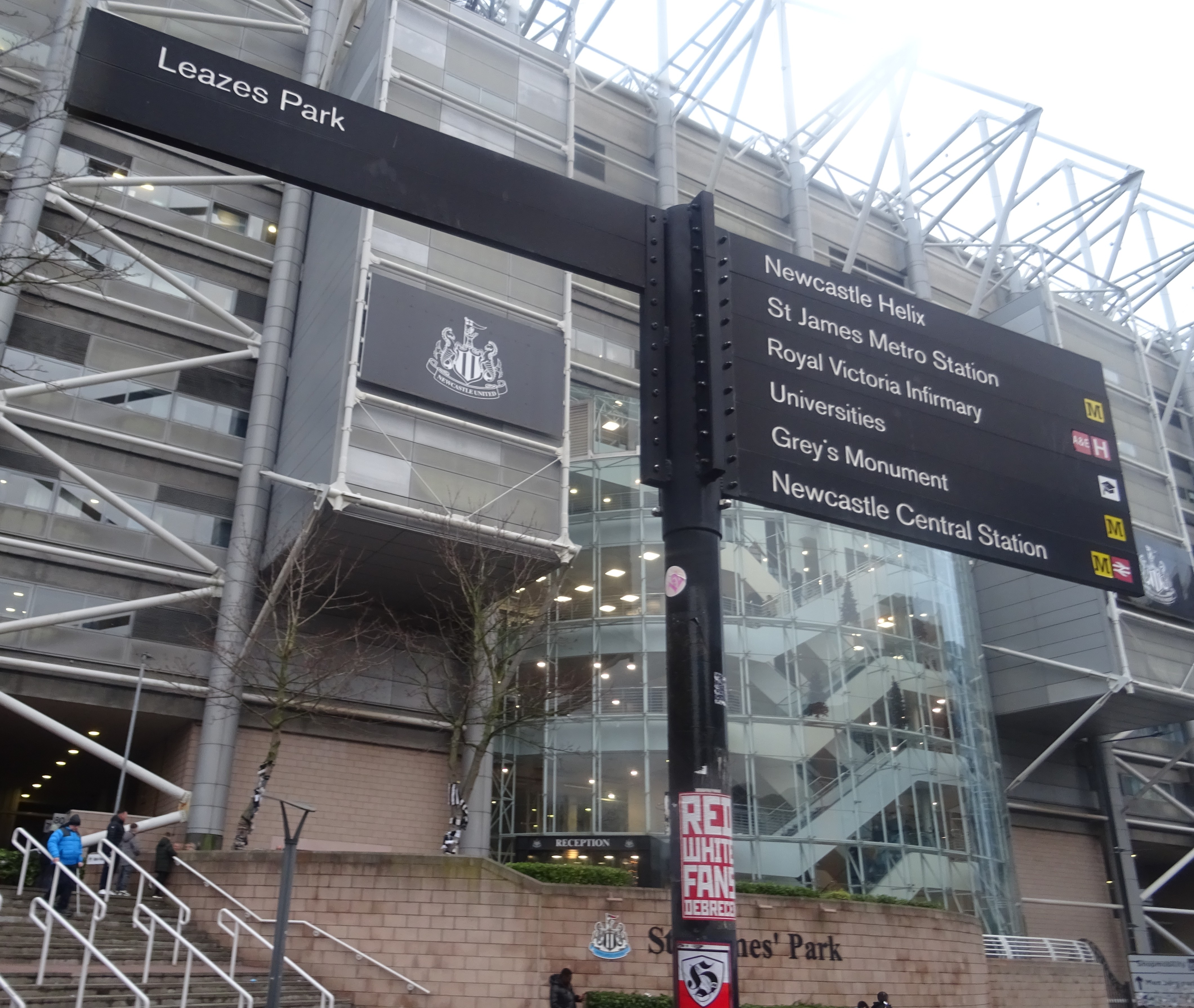 The vivid green grass of St. James’ Park was the only colour of note on this bitterly cold day on Tyneside.
