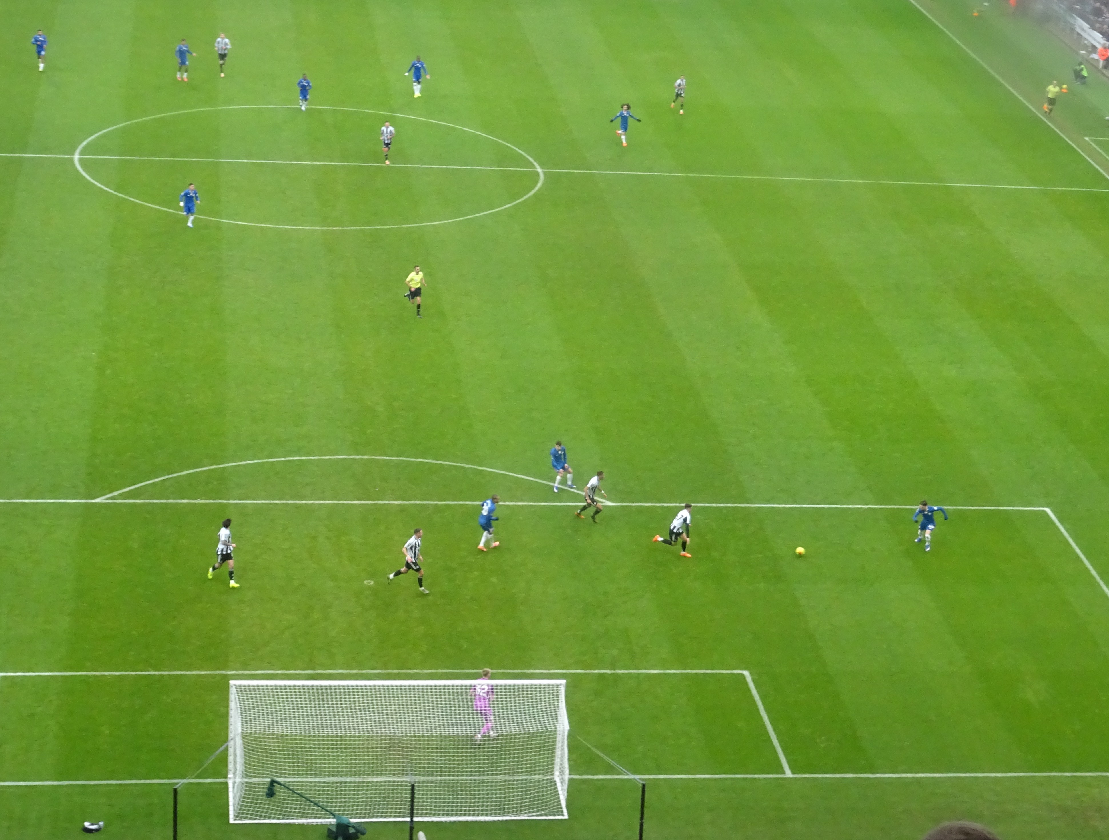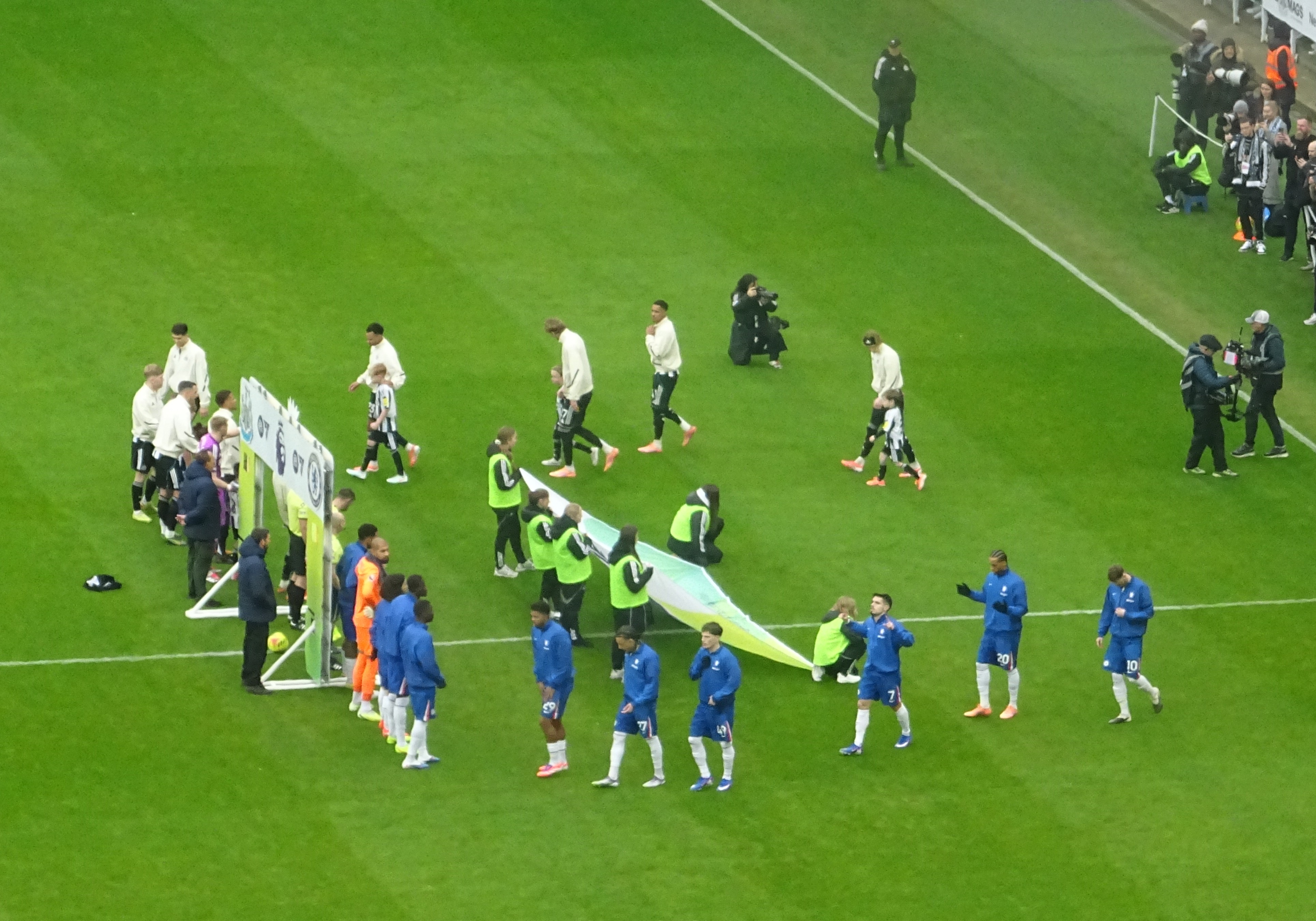 The game began at 12.30pm and we attacked the Gallowgate. I was happy with our start, and our first chance came in the first minute as Cole Palmer attempted to lob Aaron Ramsdale from the left-hand corner of the box but although several Chelsea supporters thought it was going to drop in, it always looked like narrowly missing the target. The ball dropped on the roof of the net.