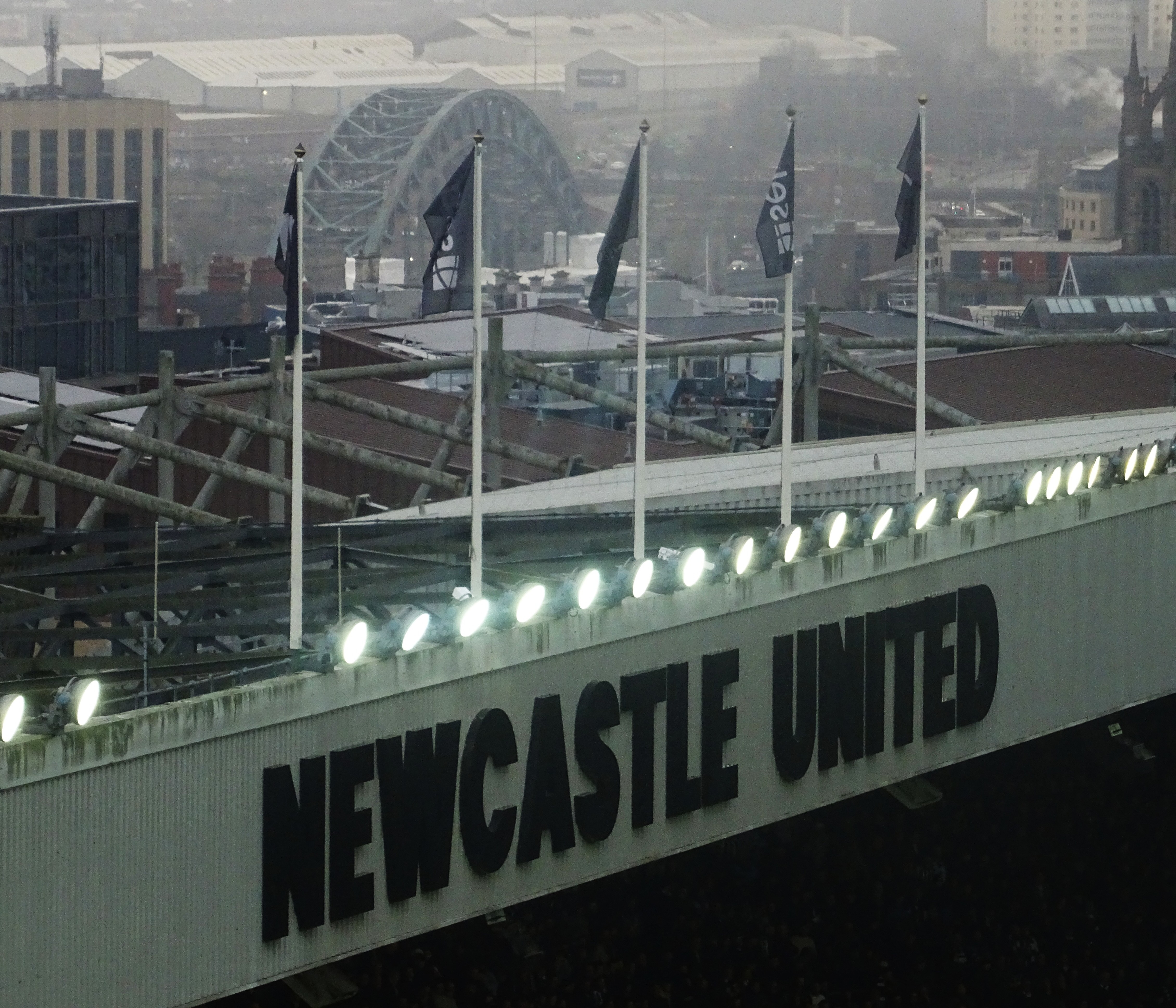 Those of us in the away end can usually spot the high land of Gateshead behind the Gallowgate End.