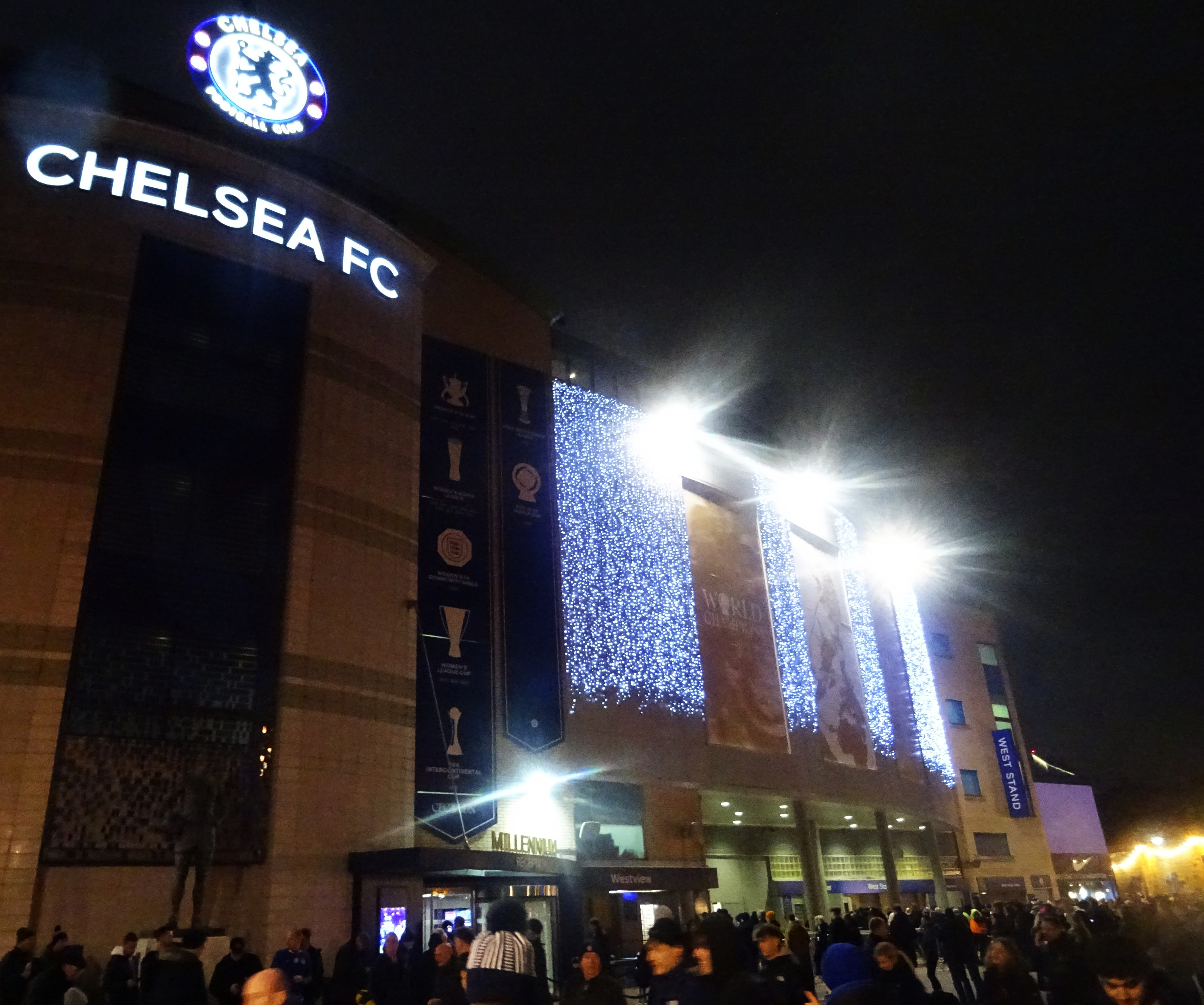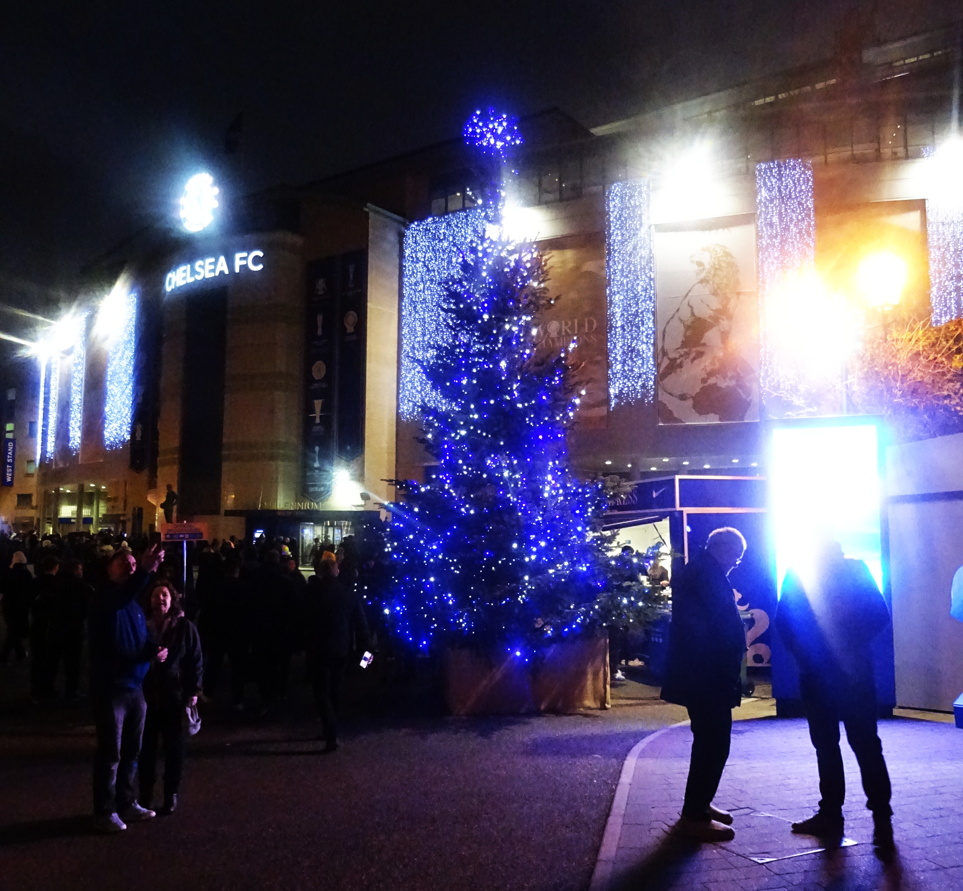 We breakfasted “on the hoof” and made our way to London. Above, no clouds. Ahead, not too much traffic. I dropped the chaps off at 11.50am near “The Eight Bells” and then drove through Fulham to park up at midday. I had a few moments to myself. I had to decide between my warmest coat and my small camera or another coat and my SLR. I didn’t fancy suffering for my art and dropped my Sony “pub camera” in the pocket of my “K-Way” jacket and slowly walked down towards Stamford Bridge. I stopped off at “Café Ole” for a cappuccino. There was another, small, bite to eat too. I then spent a few moments outside the West Stand, taking photos of the pre-match scene. Although the game was still four hours off, the place was getting busier by the minute.