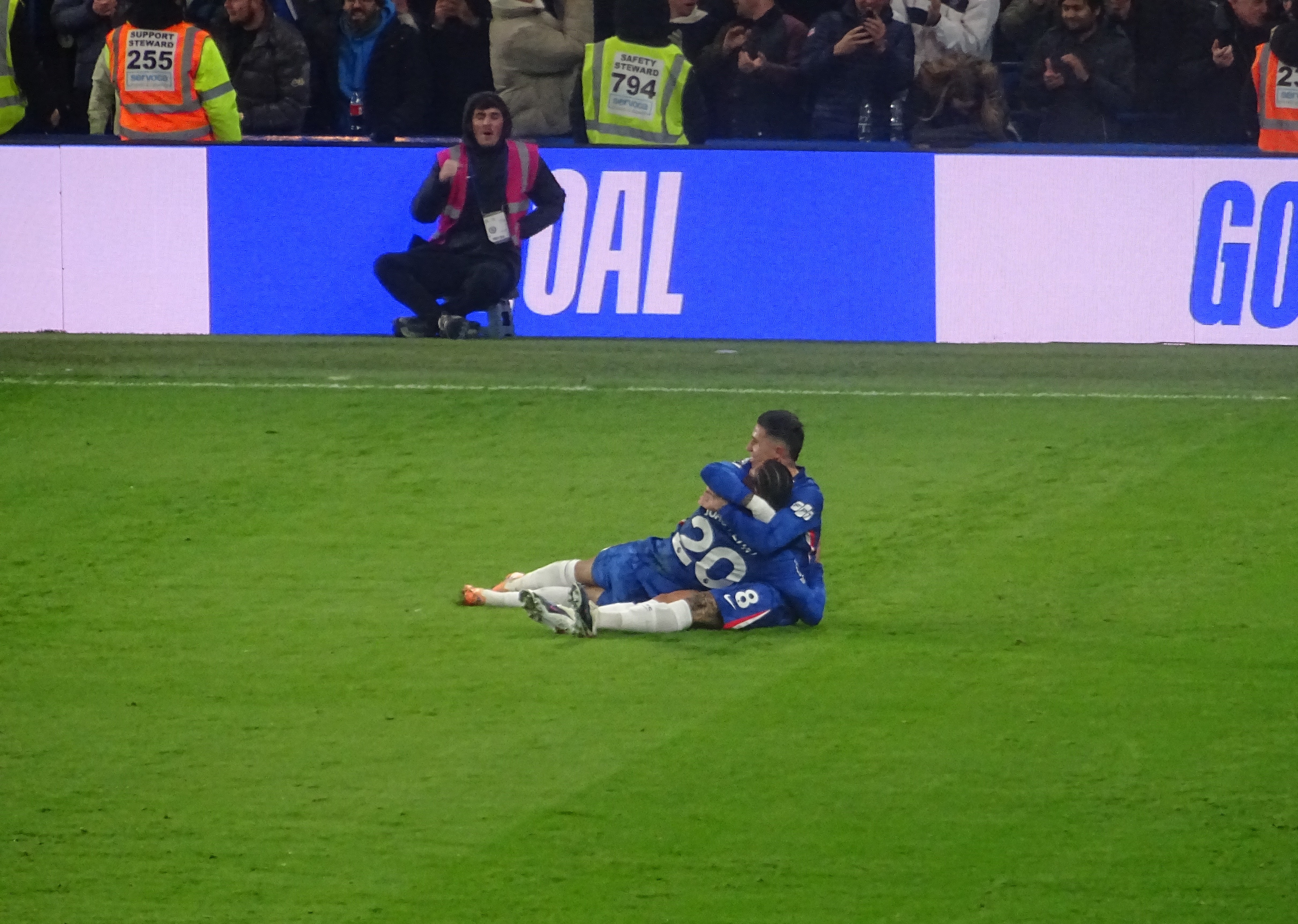 Joao Pedro and Enzo sped off towards Parkyville and collapsed on each other. Meanwhile, all the remaining eight outfield players rushed over to celebrate with Reece James. The goalscorer was announced in the stadium as Reece James. Or was it? My instinct to take a photo of the two rather than the eight was proved prescient; the Brazilian did indeed get the final touch.