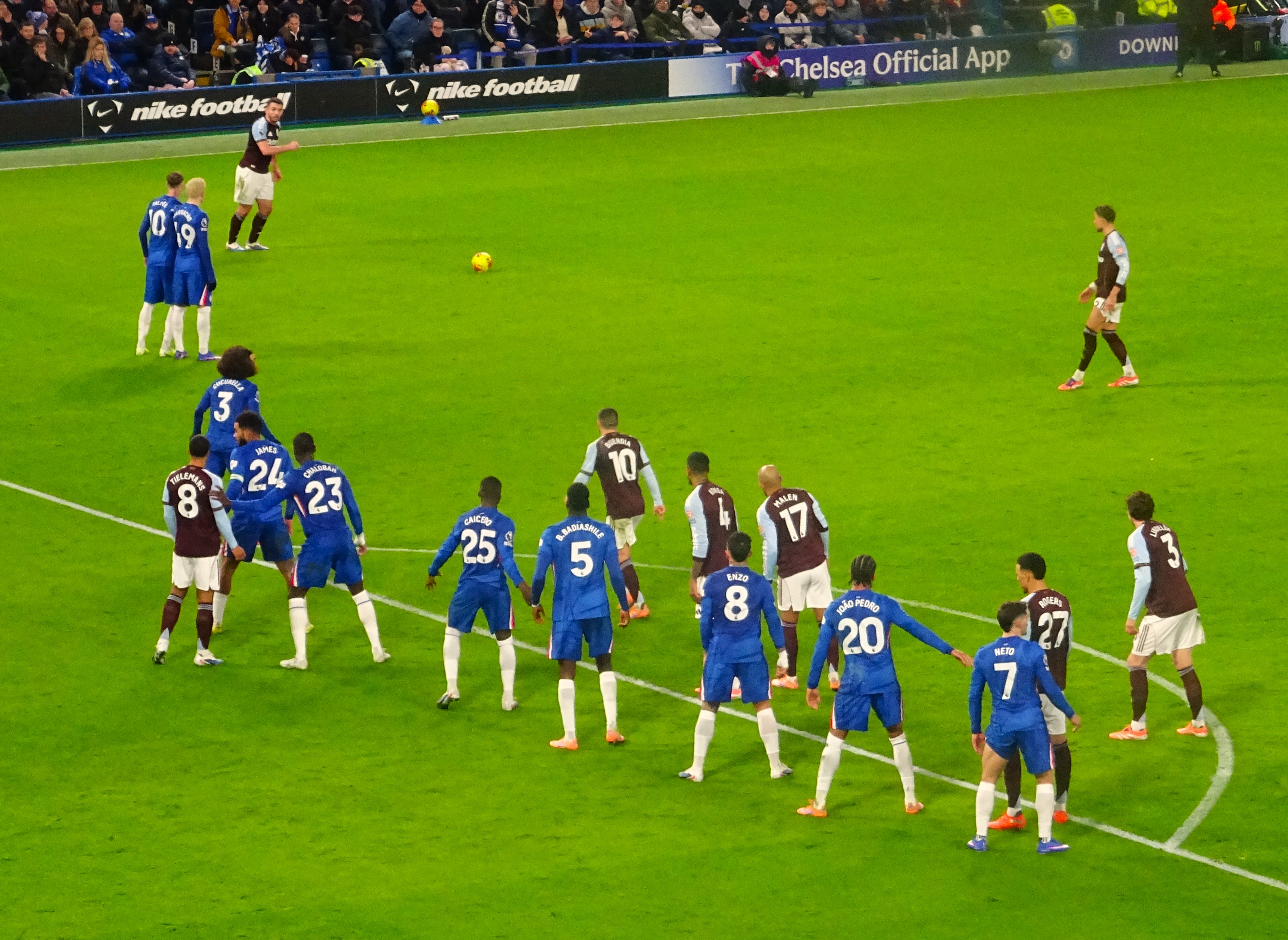 On thirty-seven minutes, a corner in front of the Villa lot. Reece James curled a slow cross towards the six-yard box.