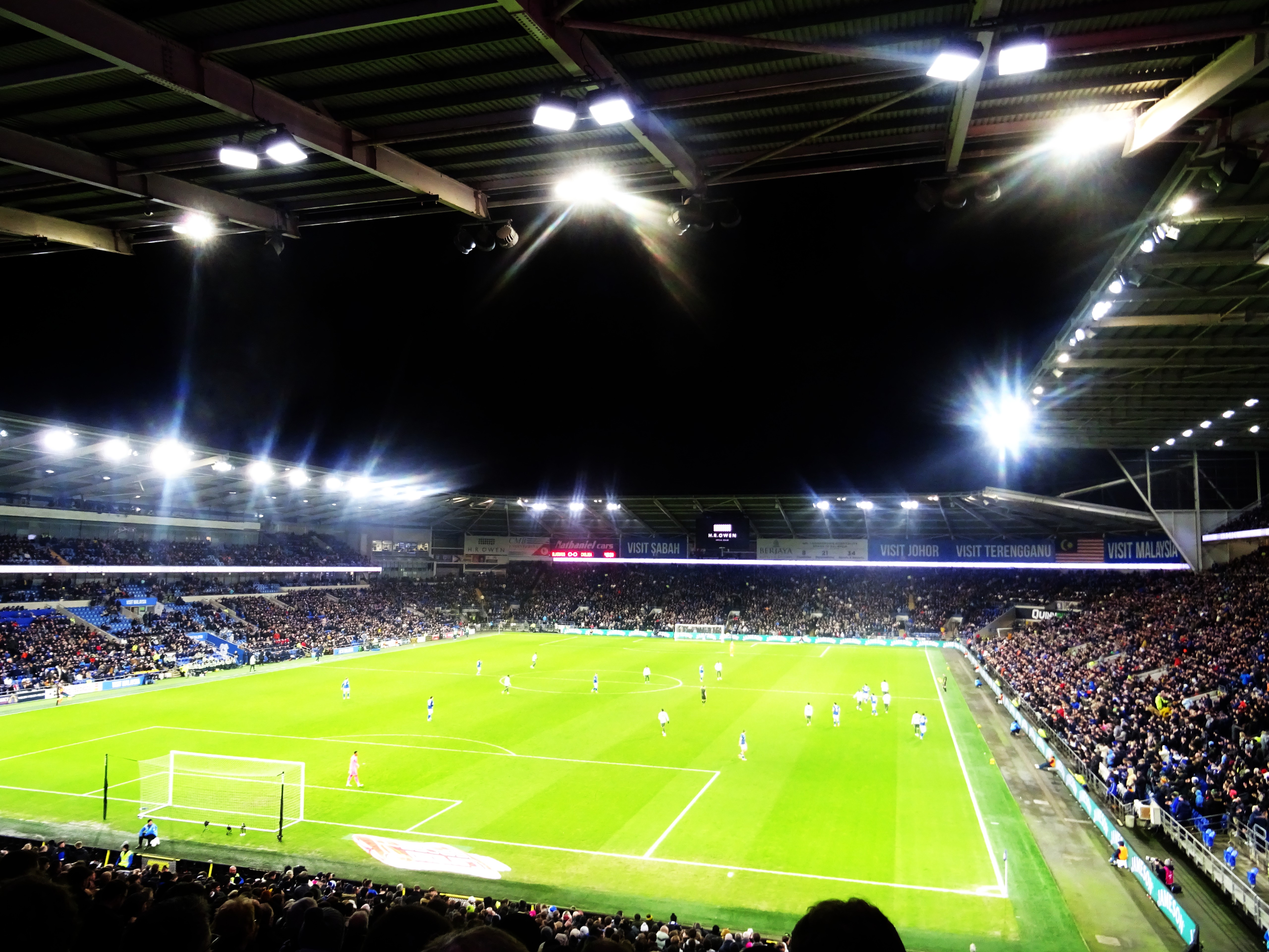 As the home fans made a quick exit, the blue seats of the neat stadium were soon exposed, but the top tier of the surprisingly huge stand to our right looked like a huge flesh wound, a cruel reminder of that insane decision in 2012 by the chairman Vincent Tan to change the Bluebirds’ shirt colour to red.