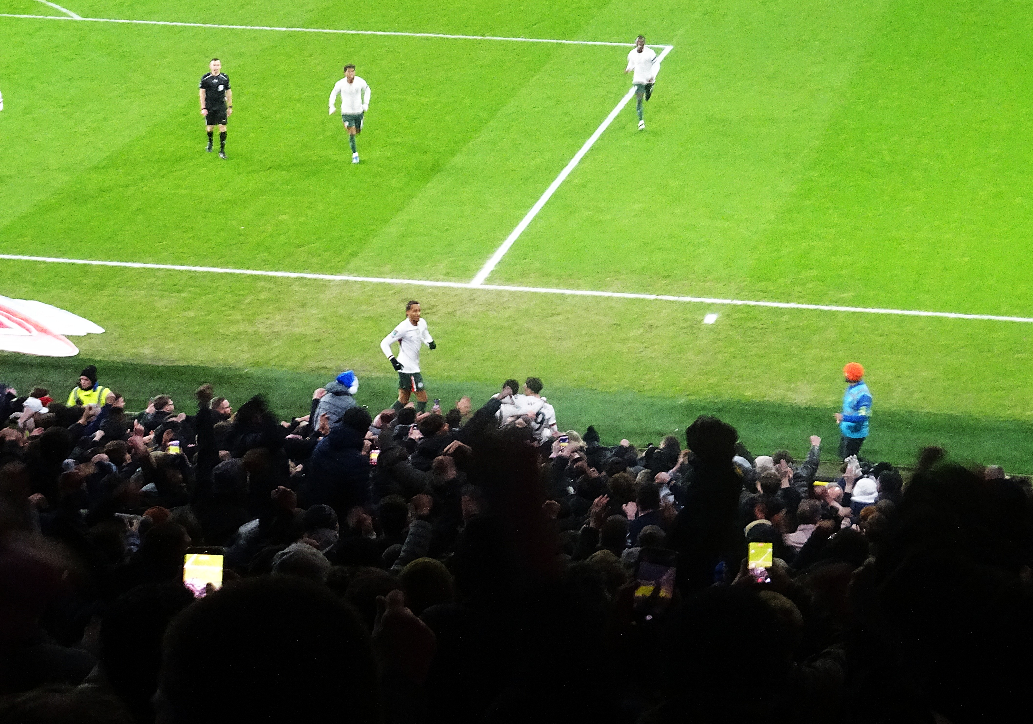 At half-time I spotted Nat with Rob and Martin at the rear of my section so joined them, with me standing in the very back row. I never watch a game at the top level from two different perspectives, so the superstitious part of me was a little concerned.