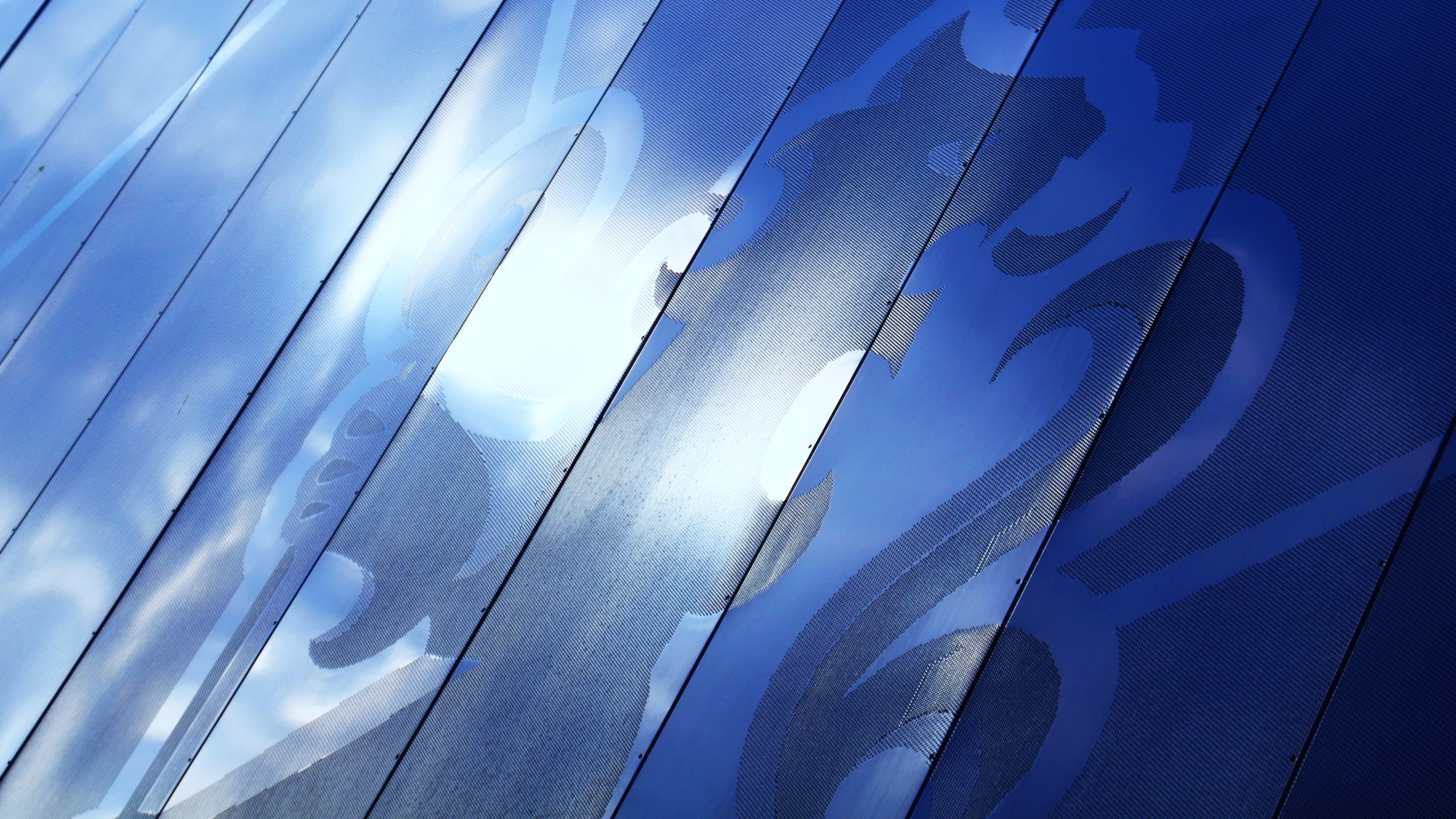 To the right, glass and steel, the new stadium, towering stands, nearby high-rise apartments, but also a nod to the past too, a statue of Herbert Chapman in quiet admiration of the new home.