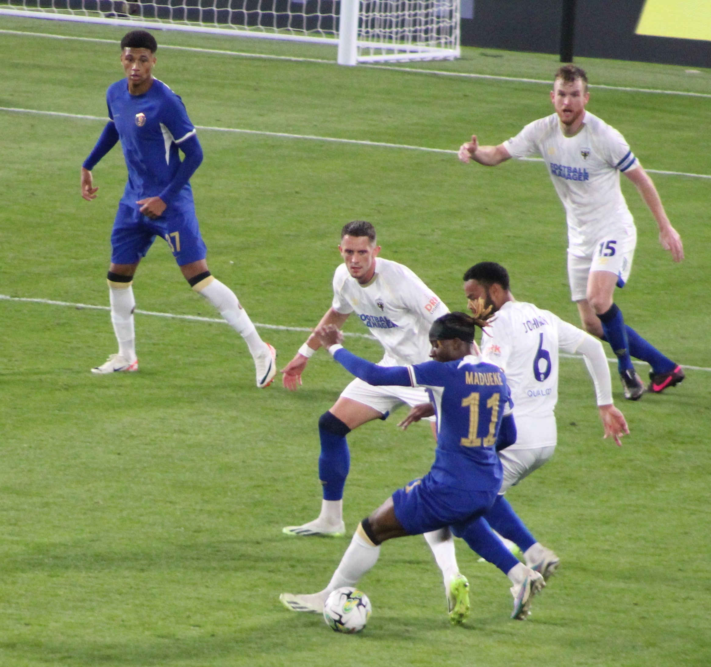 They attacked us in the Clock End in the first-half. And they attacked us early. Firstly, Havertz went sprawling in the box after the most negligible of challenges from Badiashile. He was offside anyway.