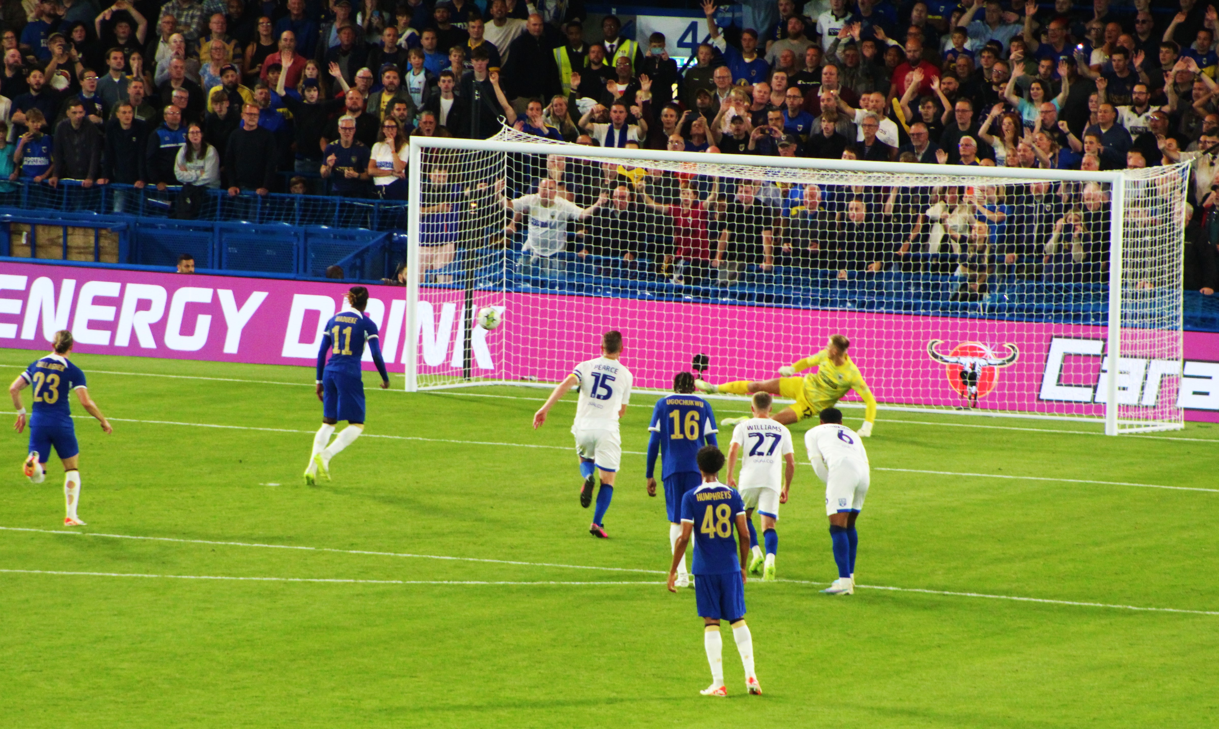 However, in what seemed the next worthwhile attack, Declan Rice ran deep into our box. Alfie Gilchrist was exposed, and had two Arsenal players to occupy his mind. Rice passed it to his left to Leandro Trossard, who seemed within touching distance of us in the front few rows. I expected a cross. Maybe Djordje Petrovic did too. Trossard whipped the ball towards the goal and I, and no doubt Petrovic, grimaced when the net rippled.
