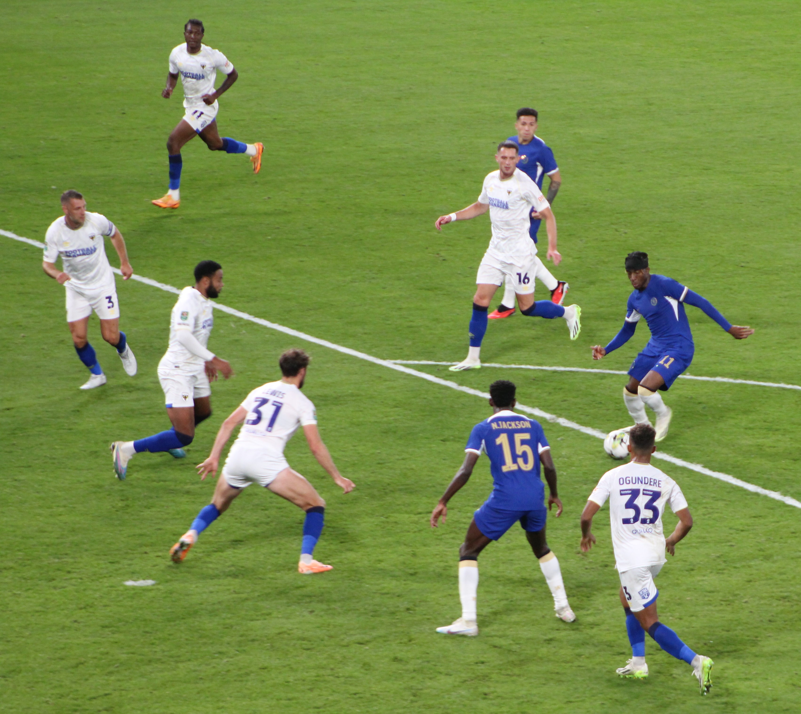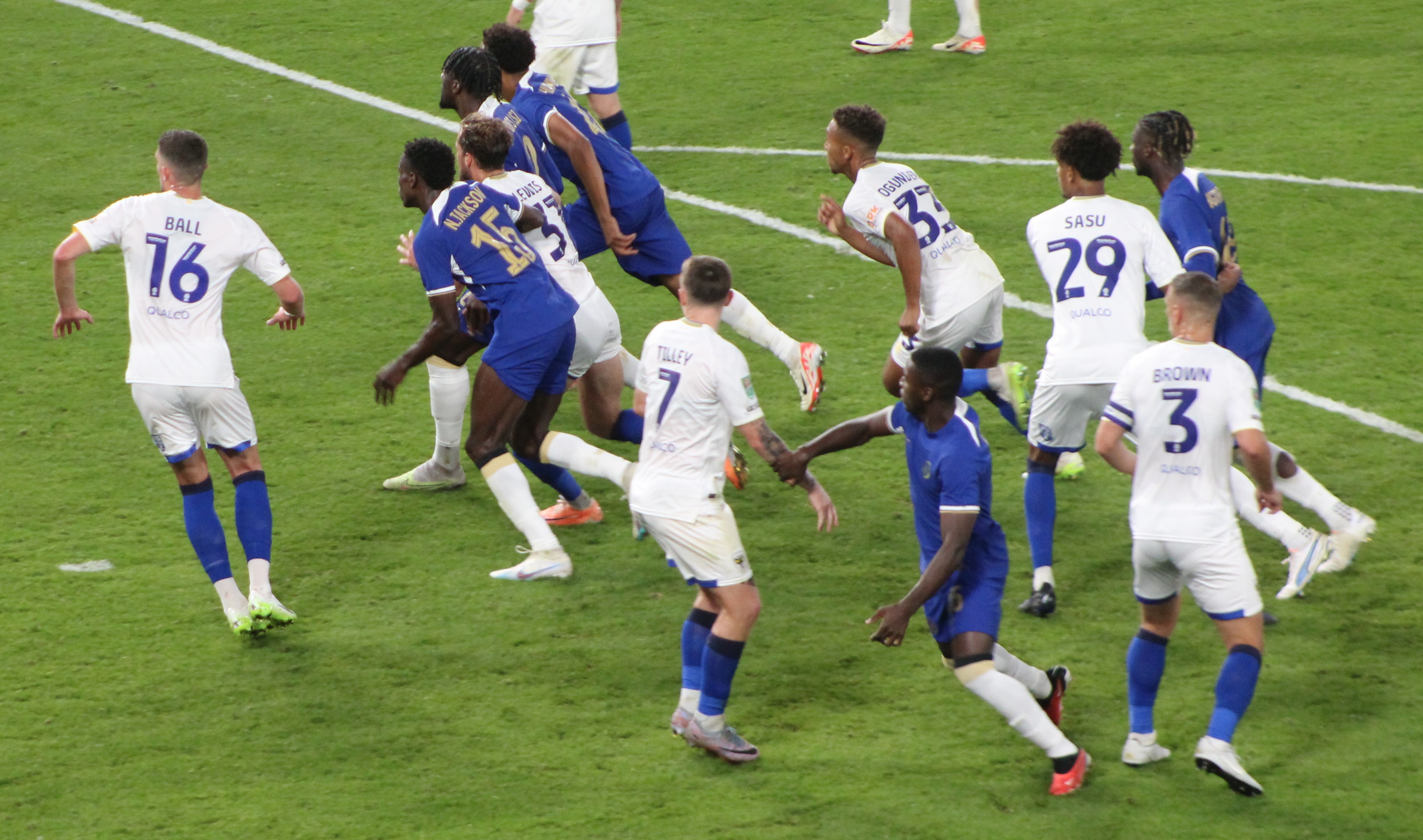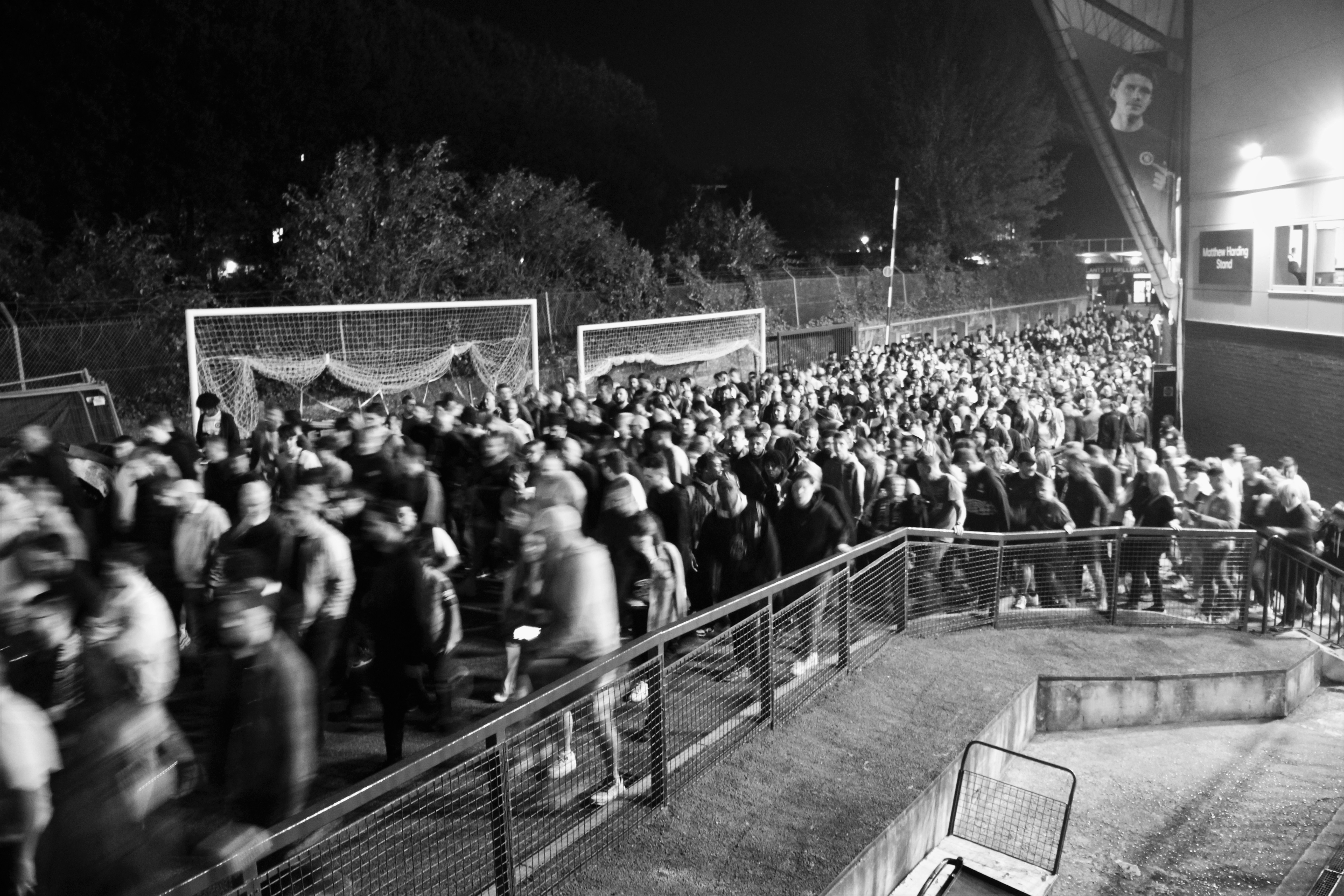 I was inside at 7.30pm, a bitter wind suddenly providing surprising gusts of cold. My seat was right next to the wide exit adjacent to the corner flag. It provided me with an interrupted view of the Clock End goal, which I quickly decided may not be for the best.