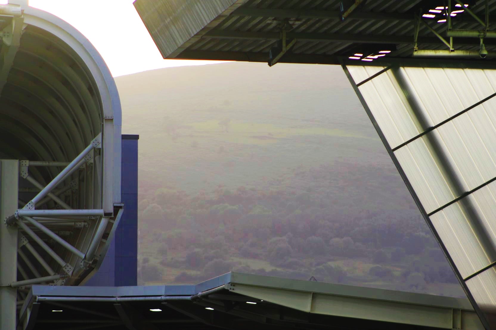 I managed to coerce some chap to take a photo of the four of us one more time; friends through geography, football and fate…Chris, Paul, Steve, Glenn…before we split up. Parky and I were in the 45-euro section in the third level, the others in the 25-euro section in the first level. I hung back with Parky, and he allowed me to indulge myself in one of my favourite pastimes; photographing the pre-match scene, stadium architecture, logos, colours, some of the small stuff that others might miss. Like in Munich in 2012, the sun was slowly setting in the west.