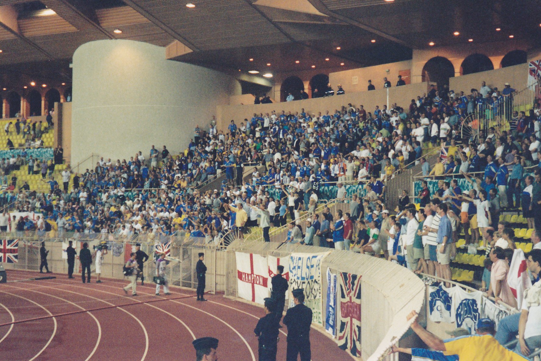 Before all this, maybe we have another starting point, for me at least. In late September 1994, our first UEFA game of any description in twenty-three – count’em – years saw Chelsea visit the Bohemian town of Jablonec on the Czech Republic border with Poland. Having beaten the Prague team Viktoria Zizkov 4-2 in a scintillating and exhilarating night in the Stamford Bridge rain, we now faced the return leg in a town seventy miles from Prague. Jablonec was chosen to try to stop crowd disorder. Dimitri Kharin saved a penalty, and we drew 0-0, and it was my first-ever European jaunt with Chelsea Football Club.