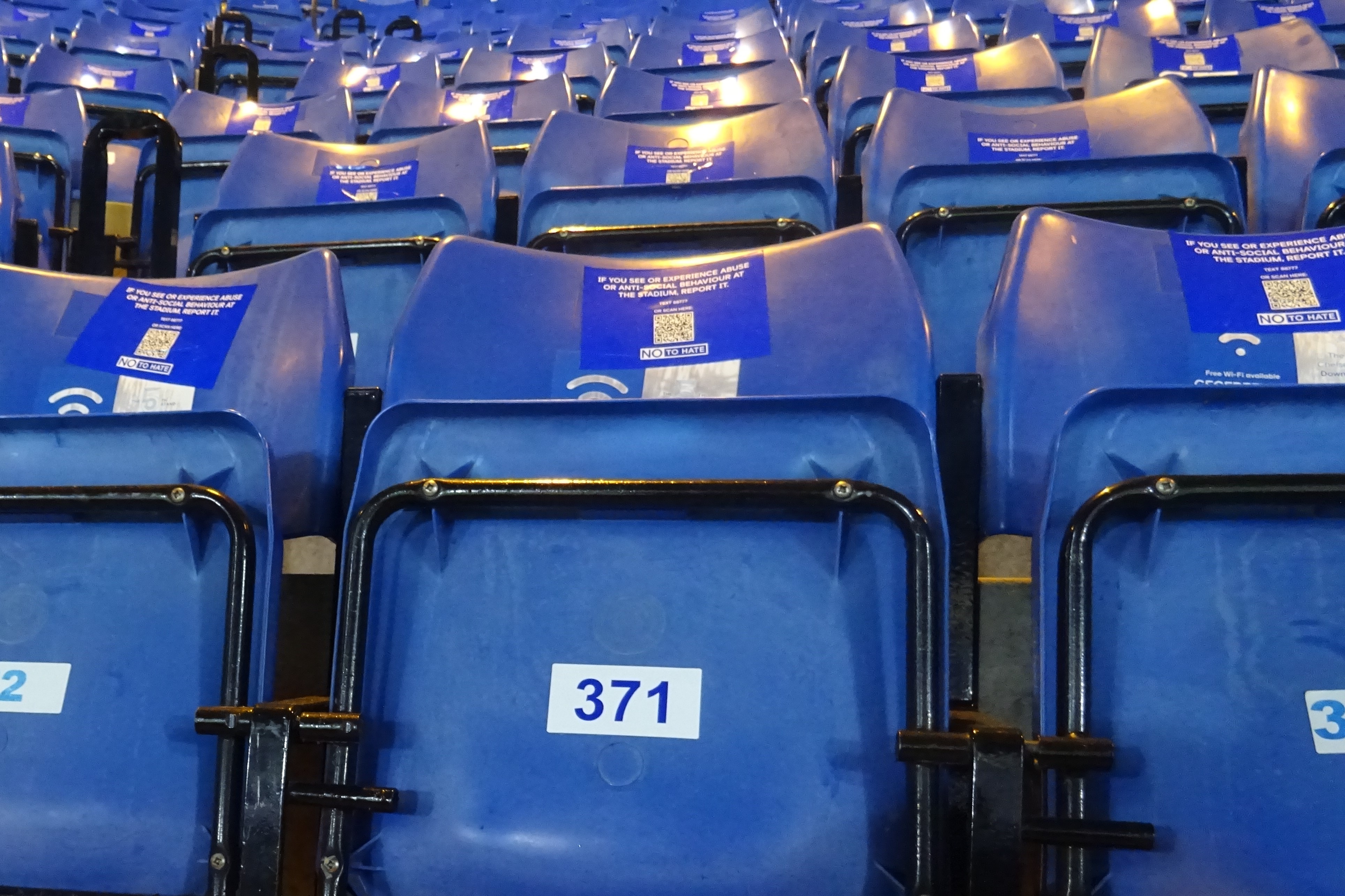 The exterior of the stadium, like so many these days, is sheathed in plastic panels, thus hiding the guts of the structure to the outside world. I have seen better stadia, I have seen worse. Inside, a very roomy concourse, full of supporters, but not many in blue.