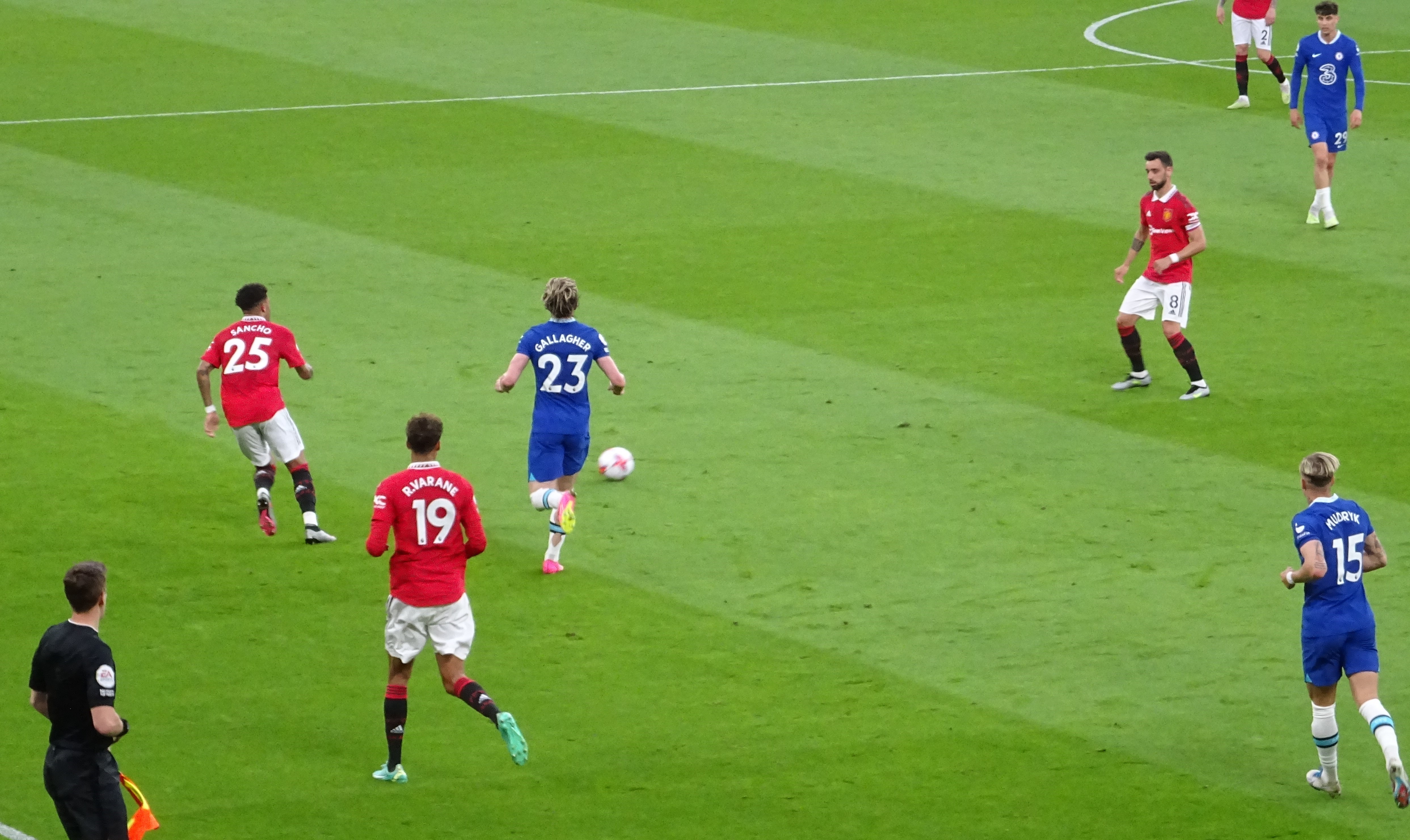 On seven minutes, a Chelsea corner. It was difficult for me to see through the heads of the spectators but I spied a ball from Enzo that – SHOCK! HORROR! – cleared the first man. There was a leap from a Chelsea player and the ball was headed cleanly in.