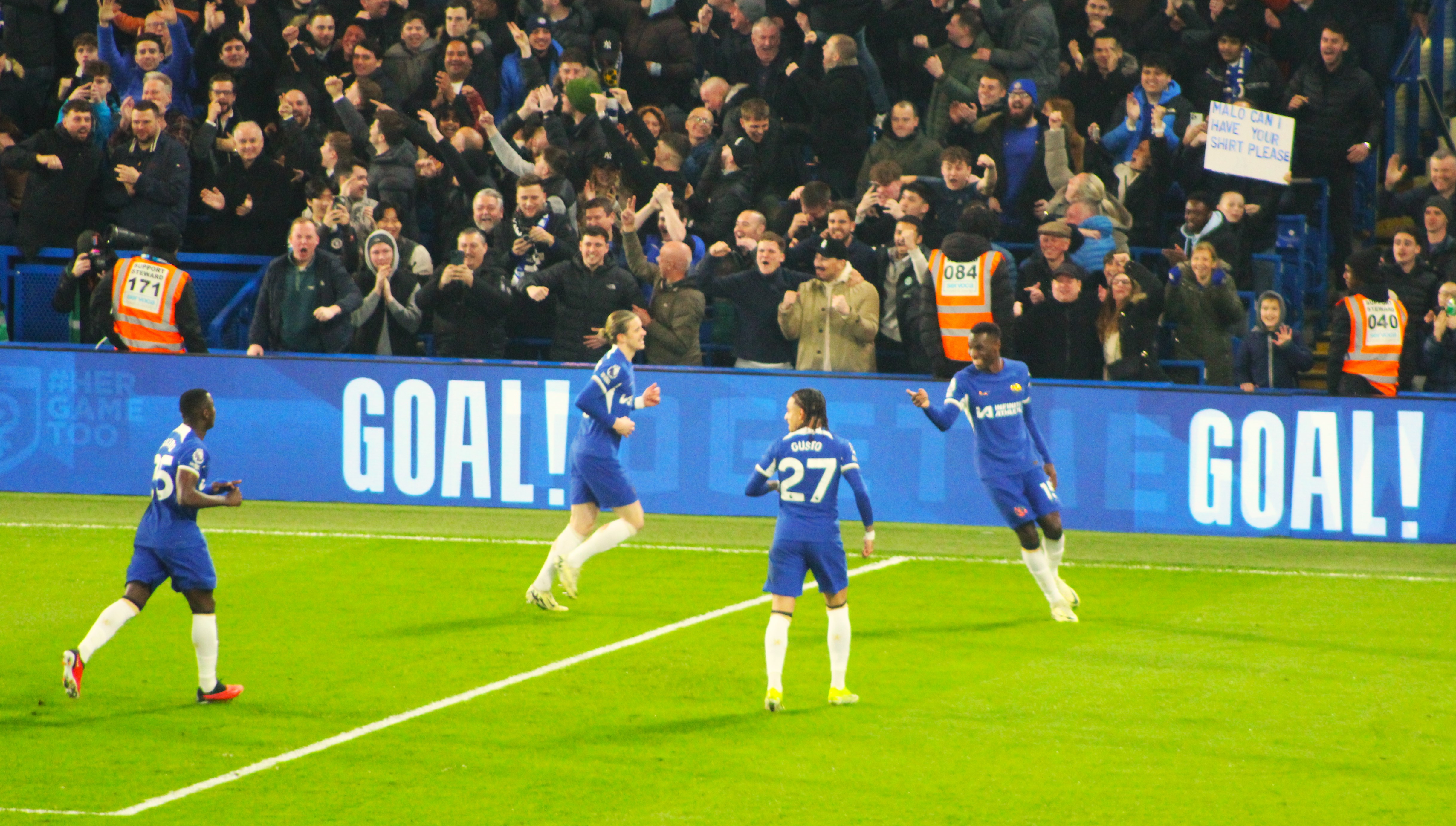 The visitors’ efforts were rare. However, on forty-three minutes, the Chelsea defence went into circus mode. The otherwise impressive Gusto attempted keepie-uppy and lost control. Trevoh Chalobah then lost the ball too and it was not cleared. The ball was flicked to Alexander Isak, who danced inside and smacked a fine shot past Petrovic at the far post. They celebrated down below us.