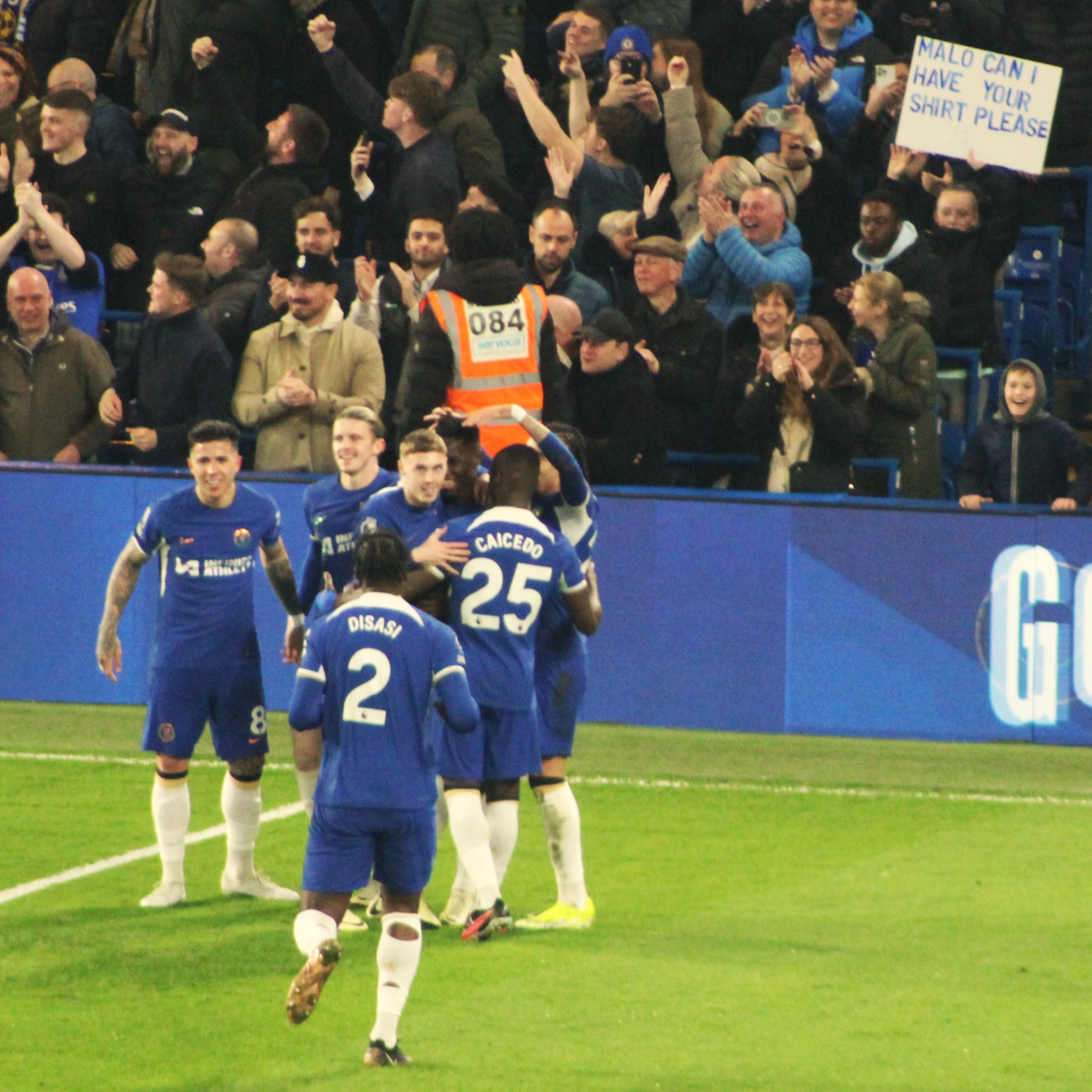 In 1974, I had to wait ten minutes for my first-ever Chelsea goal. In 2024, Danny did not have to wait as long. After just six minutes, Cole Palmer flicked his brush towards the right wing, painting a lovely ball out to Malo Gusto, who advanced. His low cross was kicked away but it could only reach Palmer. I felt that he didn’t really fancy a shot at goal with his right foot, but he smacked the ball goal wards. Nicolas Jackson was in the line of fire, but a nimble adjustment meant that his slight flick of a leg allowed the ball to slip past Martin Dubravka in The Shed goal.
