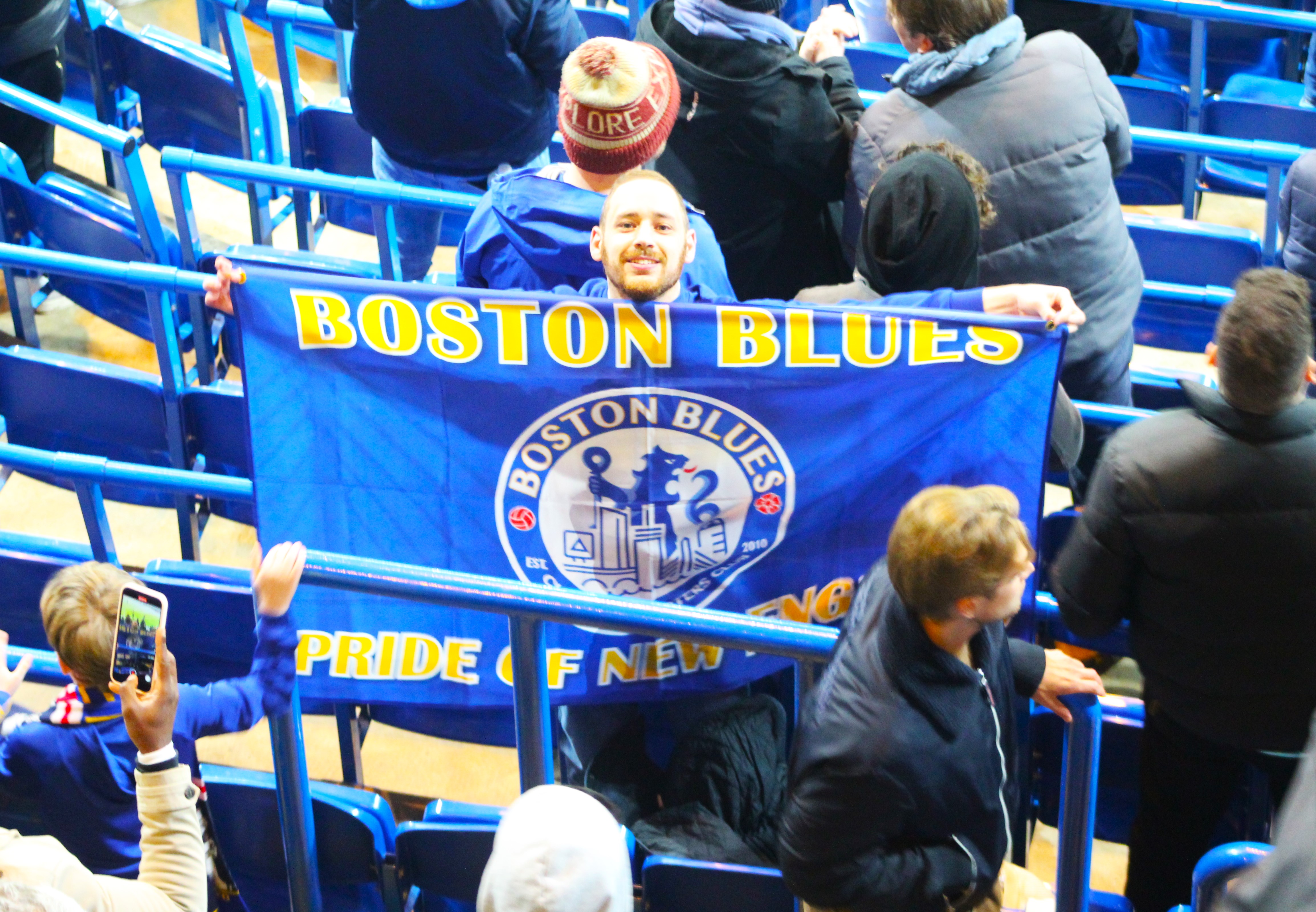 On match day, I collected my fellow passengers at 2pm in the pub car park opposite work and by 4.30pm all three had been deposited in the Borough of Hammersmith & Fulham. I met up with PD and Parky in “The Elephant & Barrel”, formerly “The Rylston”, alongside Salisbury Steve and two lads from Boston in Massachusetts. I have known Ben, the Chapter Head of the Boston Blues, since around 2011, but this was my first meeting with Danny, who was at Stamford Bridge for a game for the very first time. It seemed right that on this occasion there was a Chelsea debutant in the party.