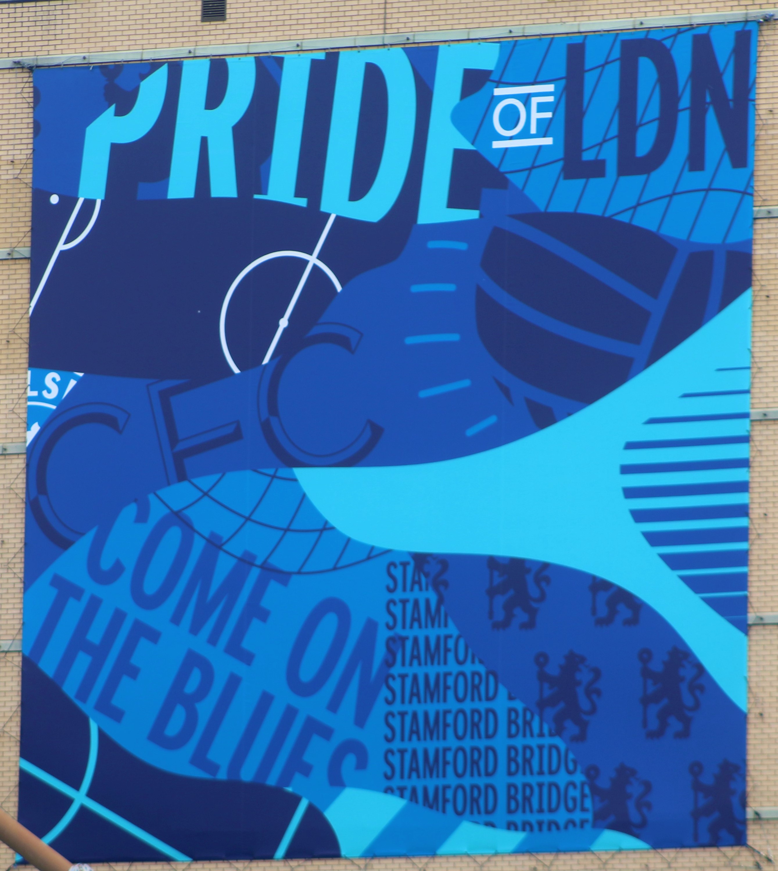 Gwladys Street, where I walked with Josh and Courtney in October and where Courtney took a photo of two lads, in red and blue, playing football outside two houses with red and blue doors, a perfect image.