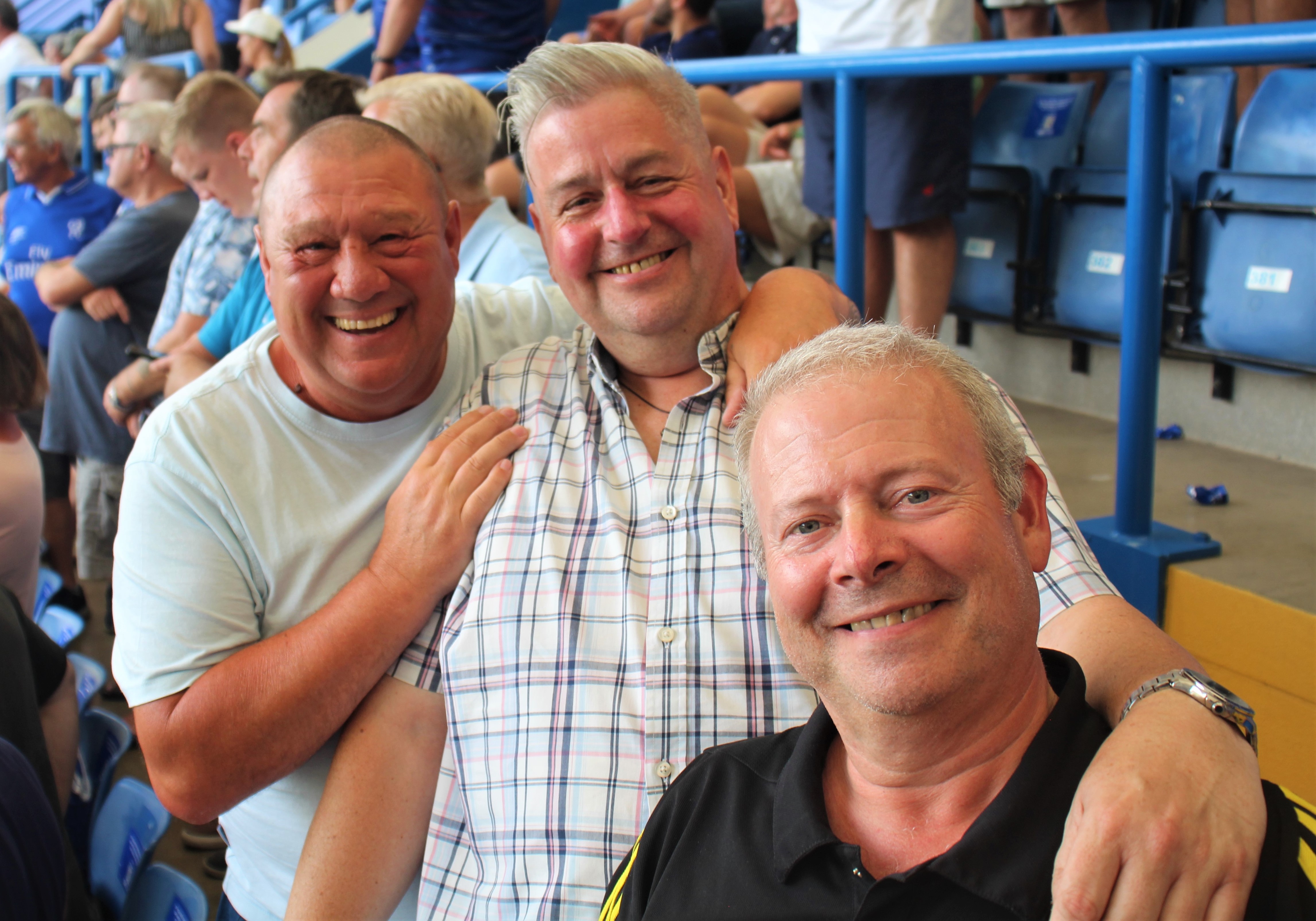 Tommie and Chris – the brothers Grim, Tommie Chelsea and Chris Everton – arrived in the rain and I passed over spares. Then, I got drenched on the short walk to the ground, where I was serenaded by a “Town Called Malice” – an odd choice so far north – by a band playing in the fan park behind the impressive Dixie Dean statue.