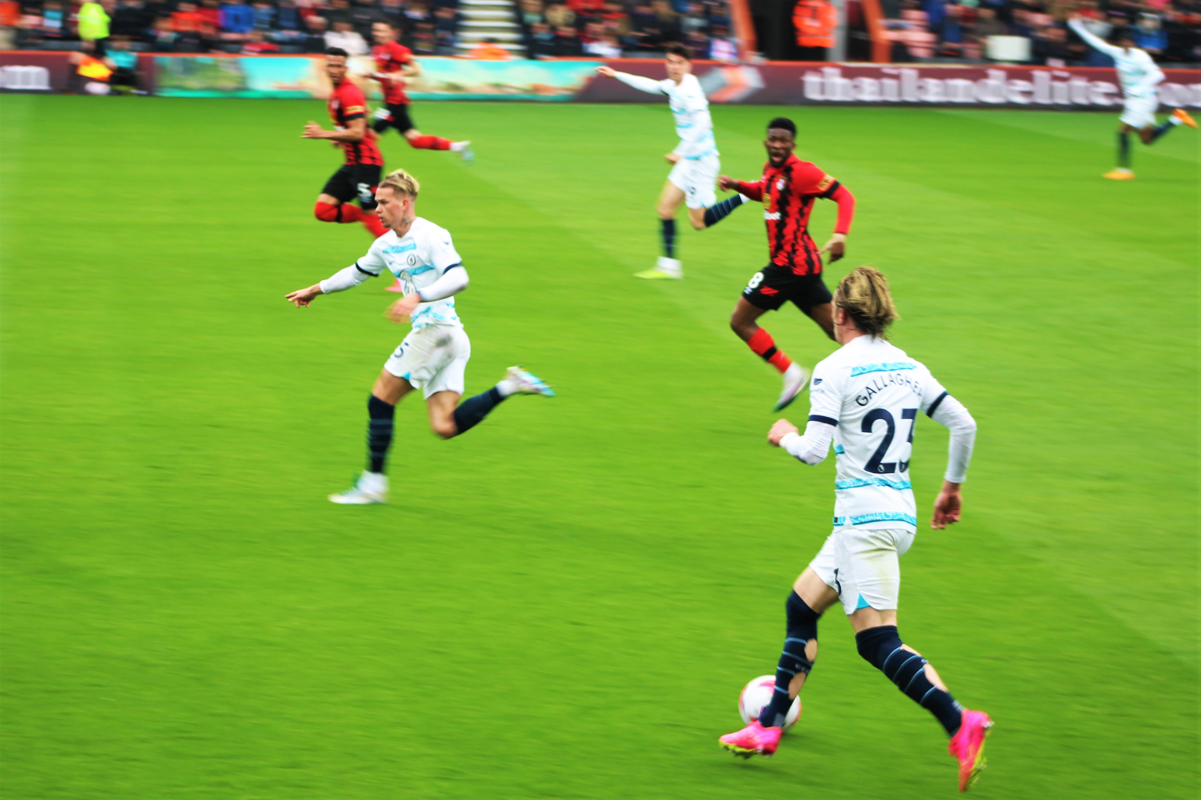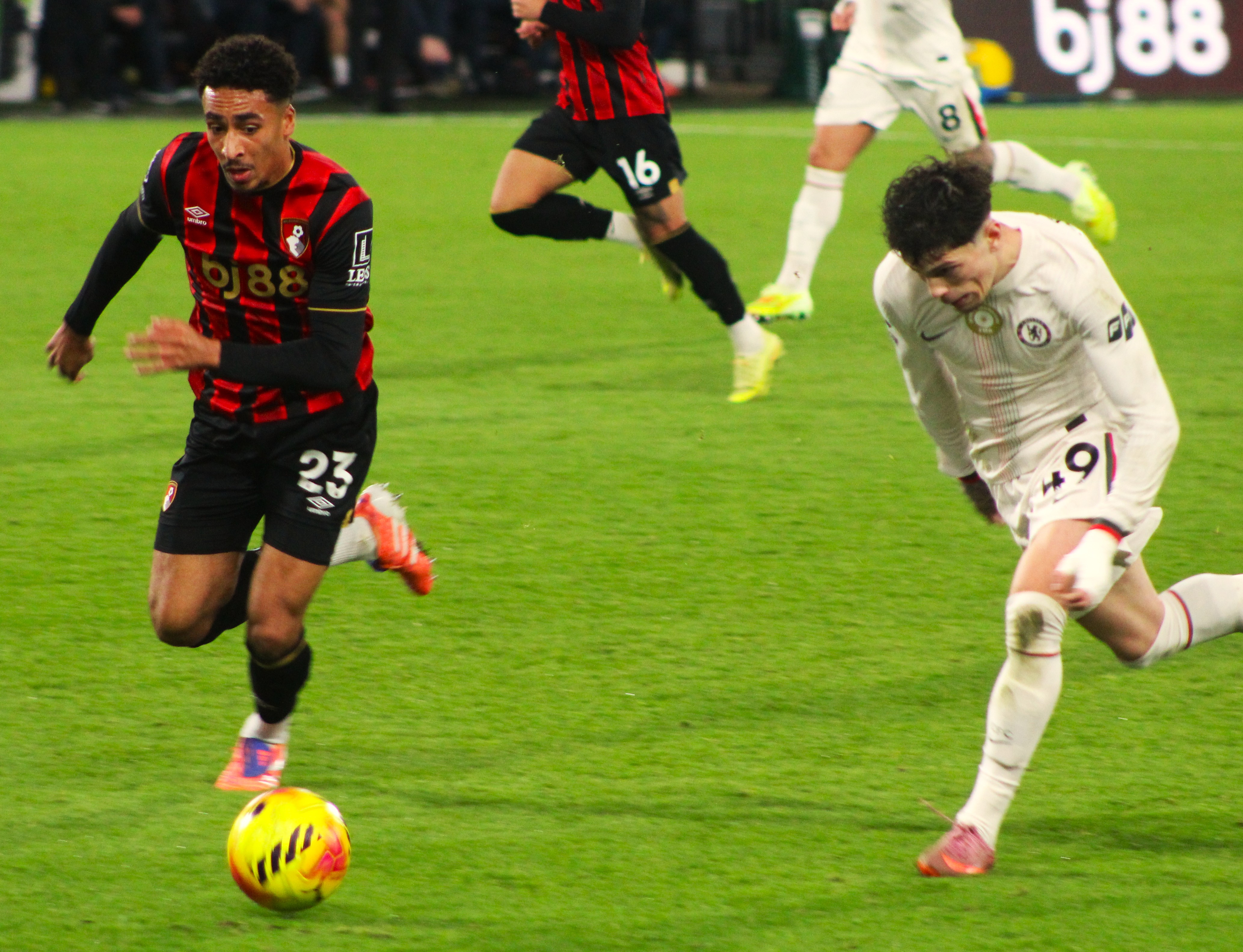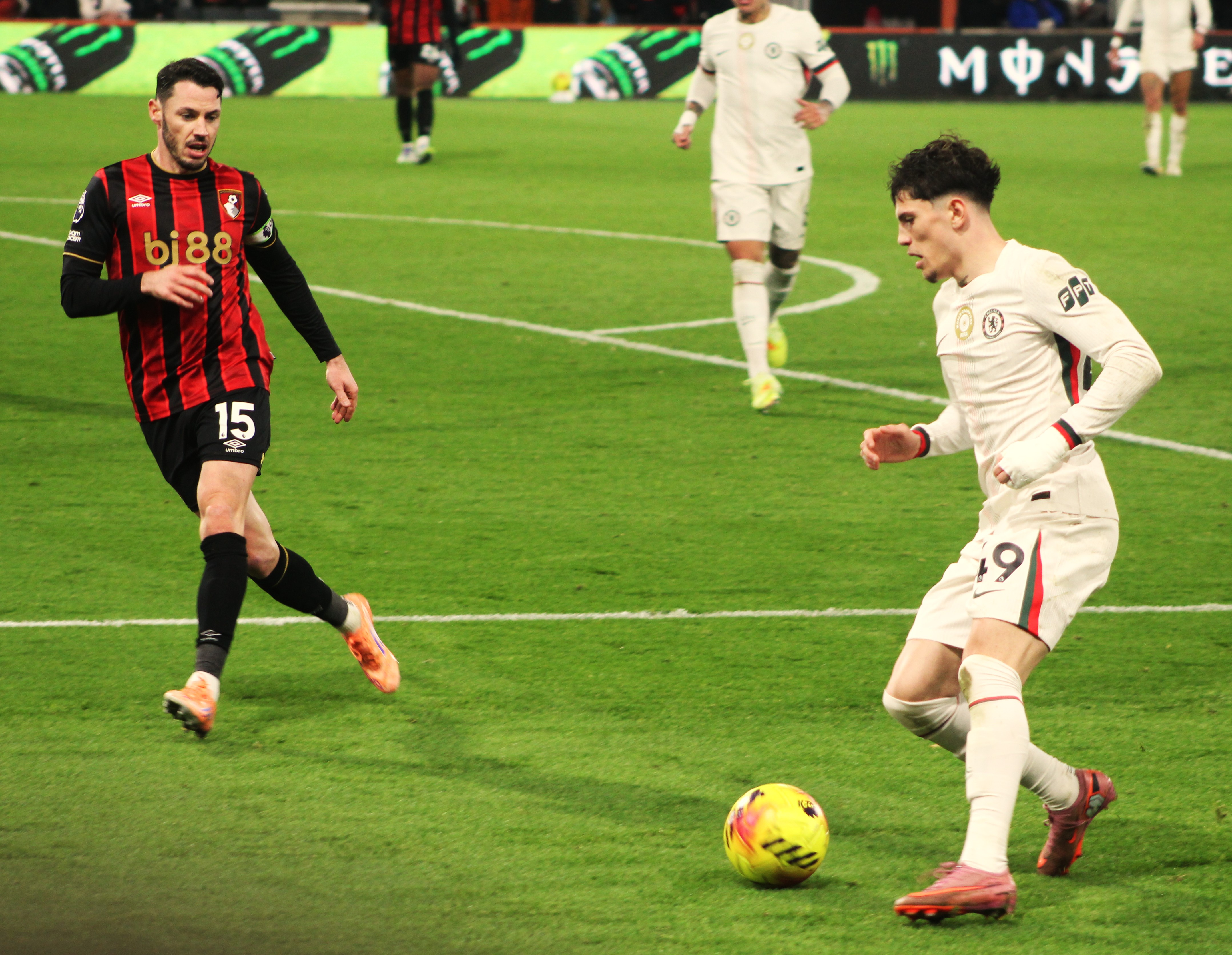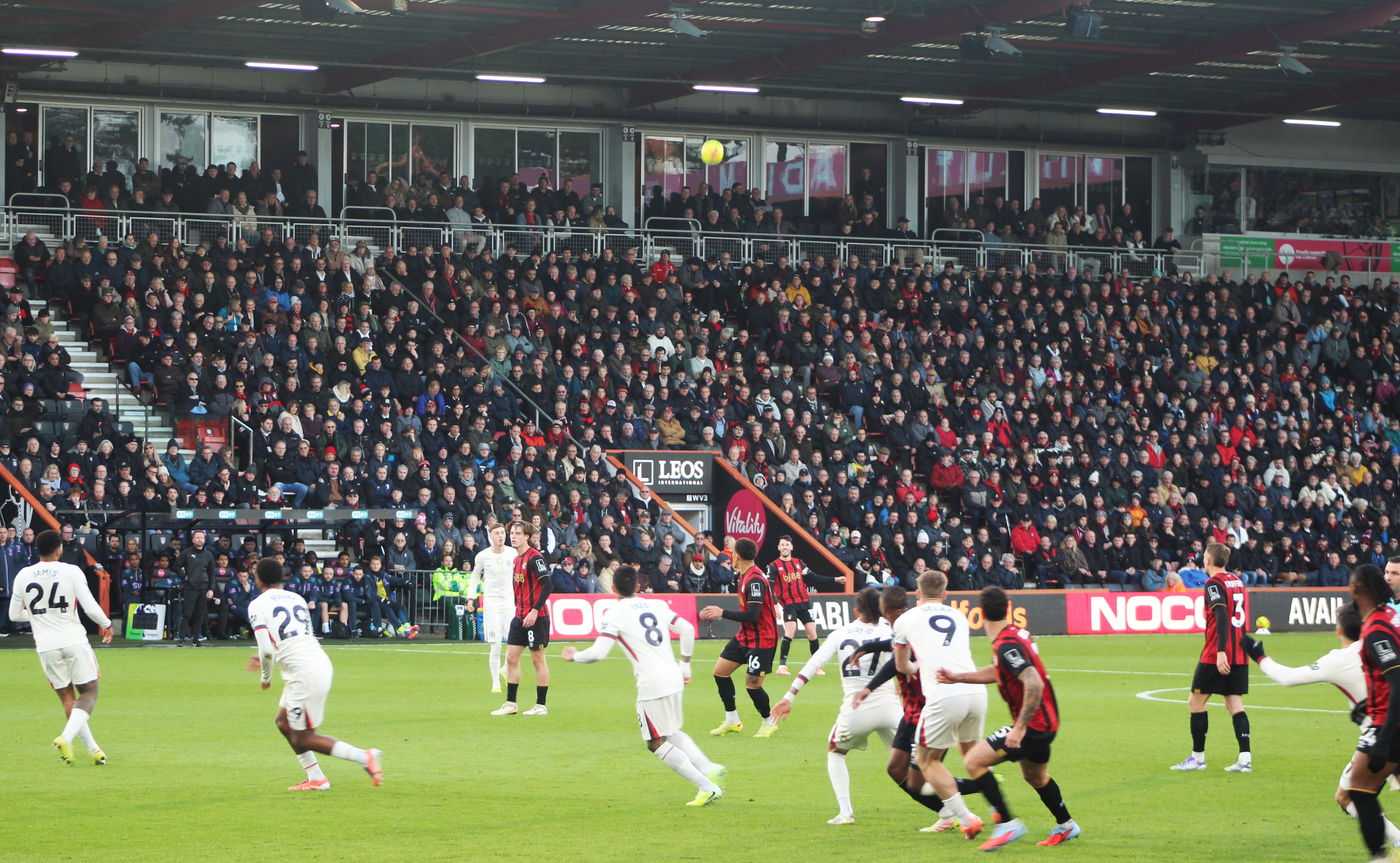 Fraser on the Bournemouth left immediately made an impression and looked the liveliest of the away team. But we were soon on the attack, and a sublime ball from deep from Jorginho found the advanced run of Mount. From an angle, it was always going to be a tough ask, and his shot drew a save from Ramsdale in the Bournemouth goal.