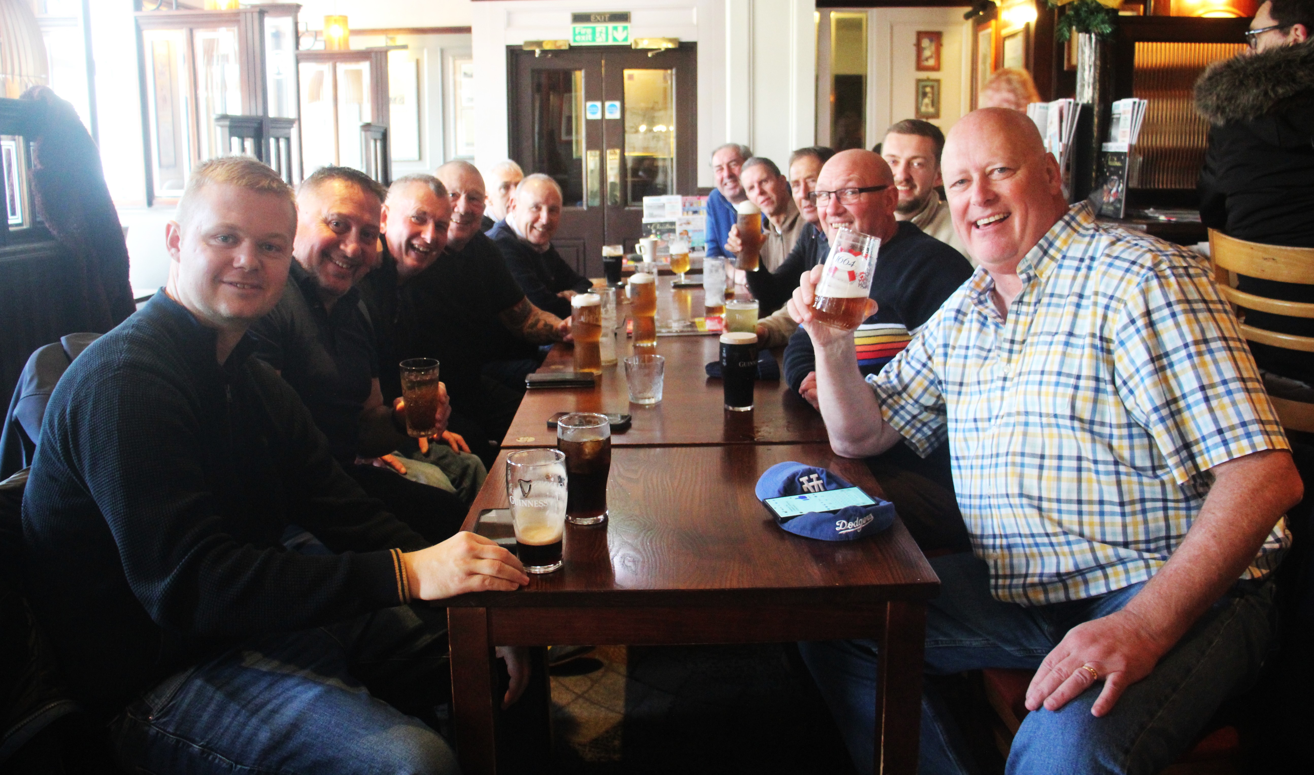 At about 10.30am we trotted upstairs to our usual tables and waited for enforcements to arrive. First to arrive was Johnny Dozen from Southern California, full of his miserable experience at Elland Road on Wednesday. Salisbury Steve and his son Leigh arrived. Dane from Bracknell joined us, as did Nick and his son Robbie and Nick’s brother Vince, who now lives in Dorchester and always pops up at Bournemouth.