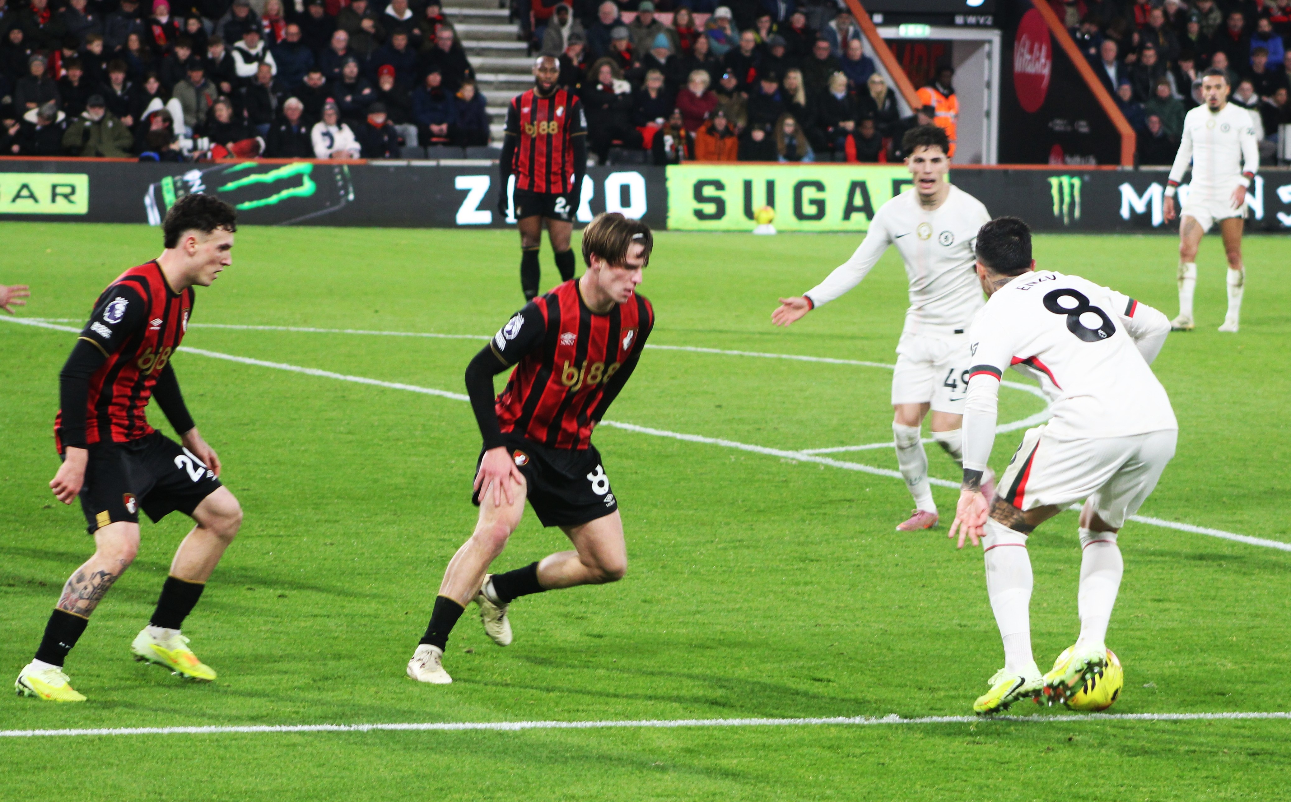 On thirty-five minutes, Sanchez reacted well to divert the impressive Semenyo’s low shot at goal, and thankfully Evanilson was unable to pounce on the rebound.
