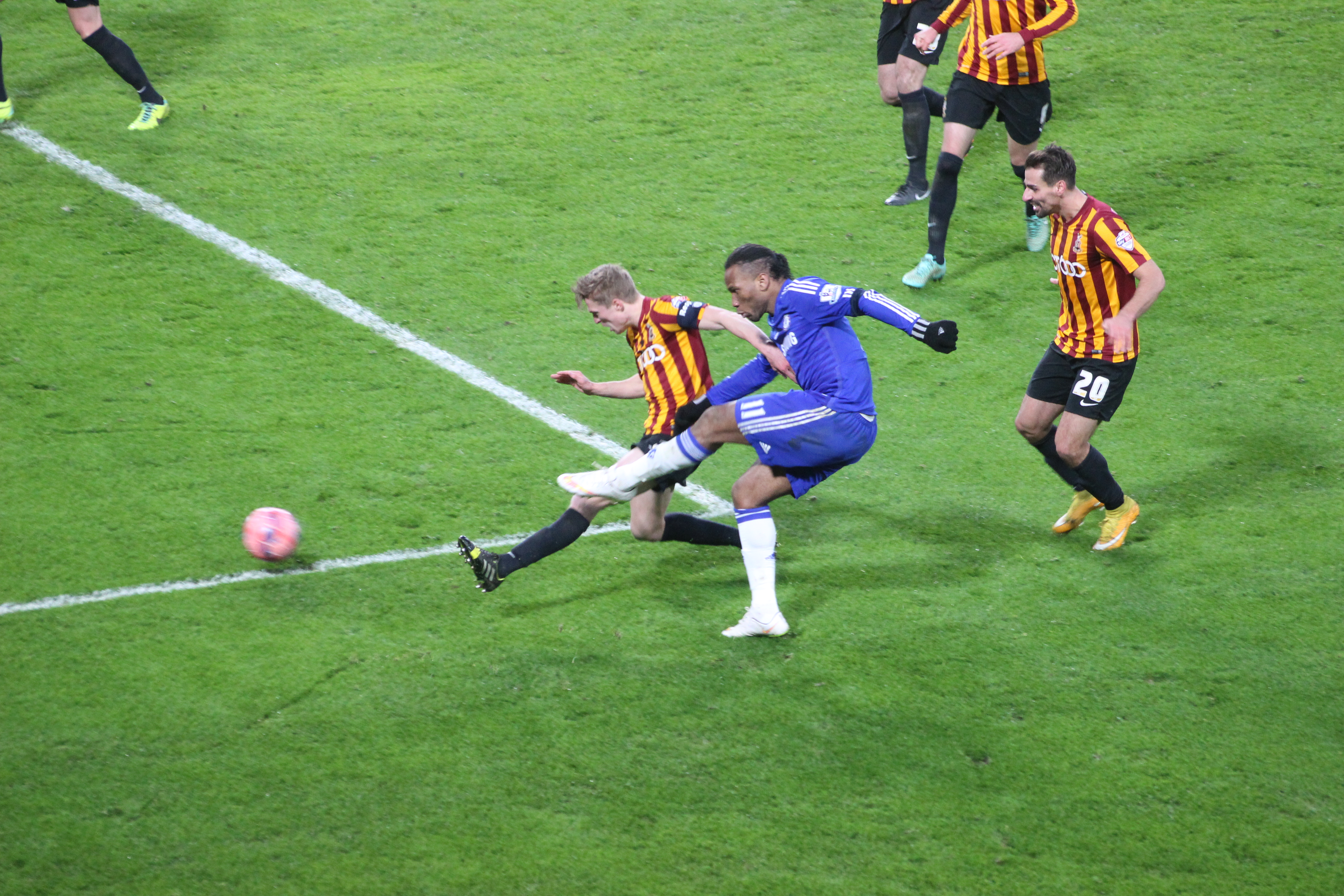 Next, it was the turn of Didier Drogba to turn his marker and force a save from the Bradford ‘keeper. Didier’s inclusion was an odd one for me; poor Remy has hardly had a look in this season, so I would have like to see him spearhead our attack. Drogba generally laboured throughout the first-half. Elsewhere, we looked tired, with Mo Salah being singled out as the most disappointing. Here was a player who was simply trying too hard. He often chose to dribble when easier options were available. In truth, we were struggling. However, a firm Ramires tackle on the half-way line set up a fine flowing move with Salah, and our number seven scored with a shot which bounced in off the post.