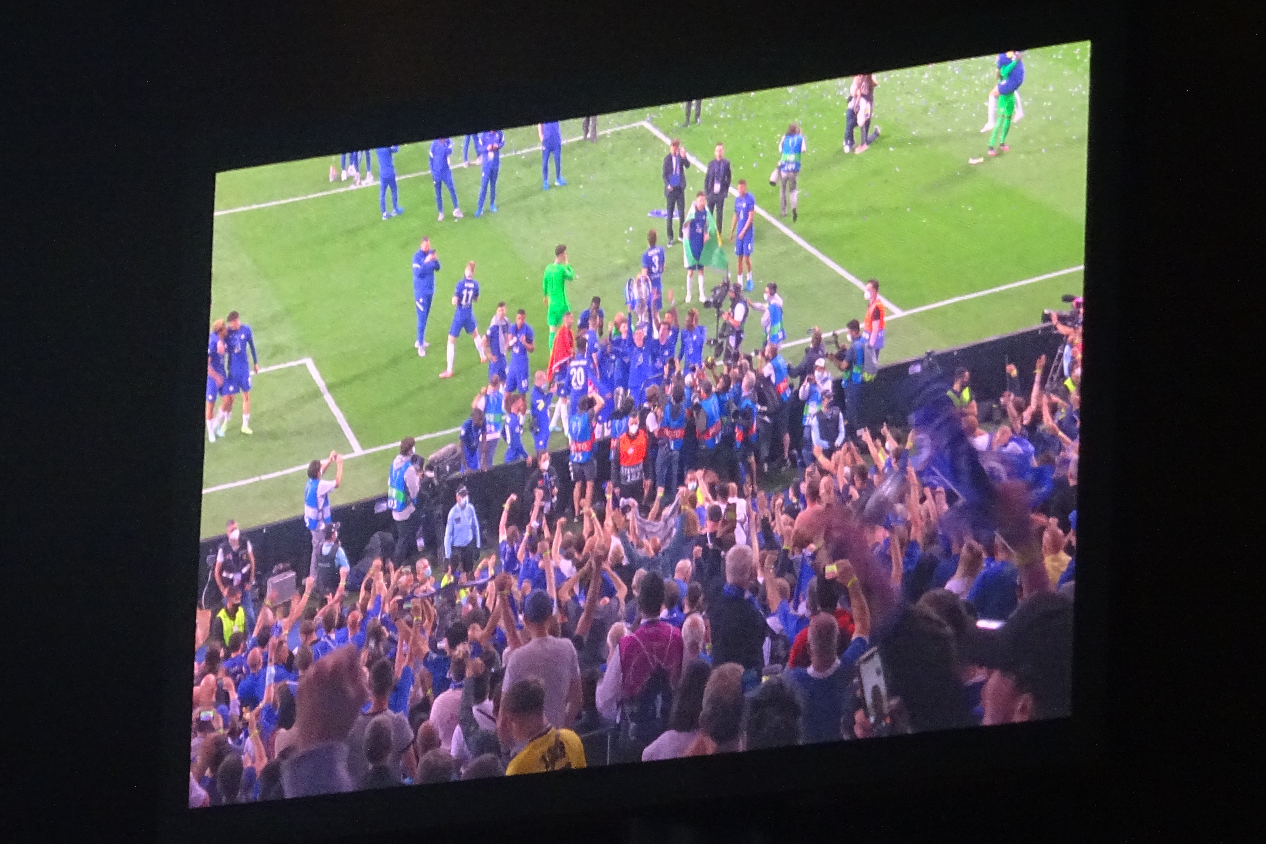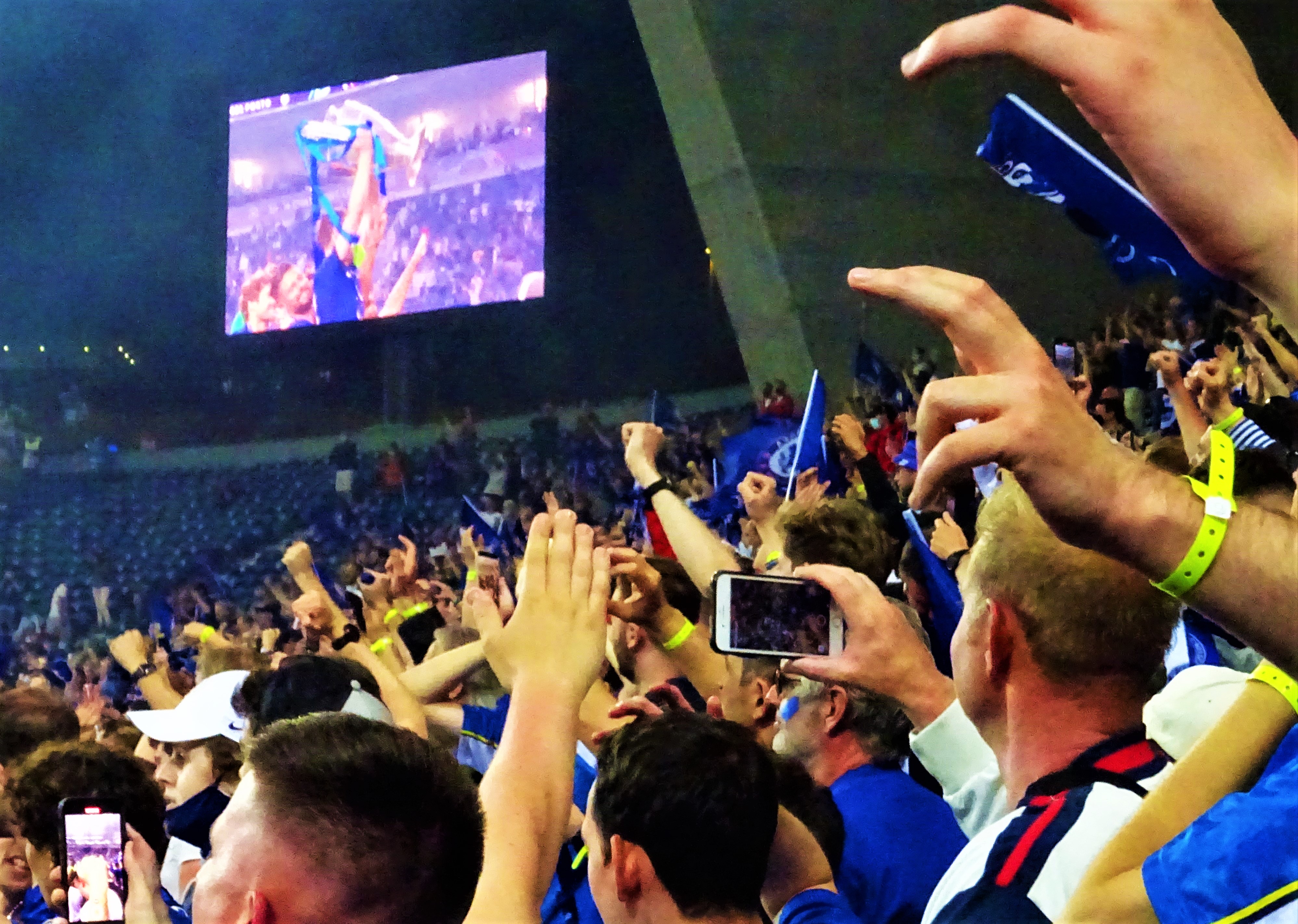 In the closing minutes, a lofted ball – into space, what joy – found a rampaging Ben Chilwell. He met it first time, pushing it into the six-yard box. In the excitement of the moment, I only saw a convergence of bodies and then…GETINYOUFUCKER…the net bulge. I tried my damnedest to capture him running away in joy, but I needed to celebrate. I brushed past Parky and found myself in the stairwell. King Kenny virtually slammed me into the fence at the front – ha – but I kept my composure and snapped away. The results are, mainly blurred. A second or two later, I looked back and Kenny was screaming, his face a picture of joy, and the scene that I saw me was a virtual copy, with less people, of the aftermath of Marcos Alonso’s winner in 2017, a mere thirty yards further south.