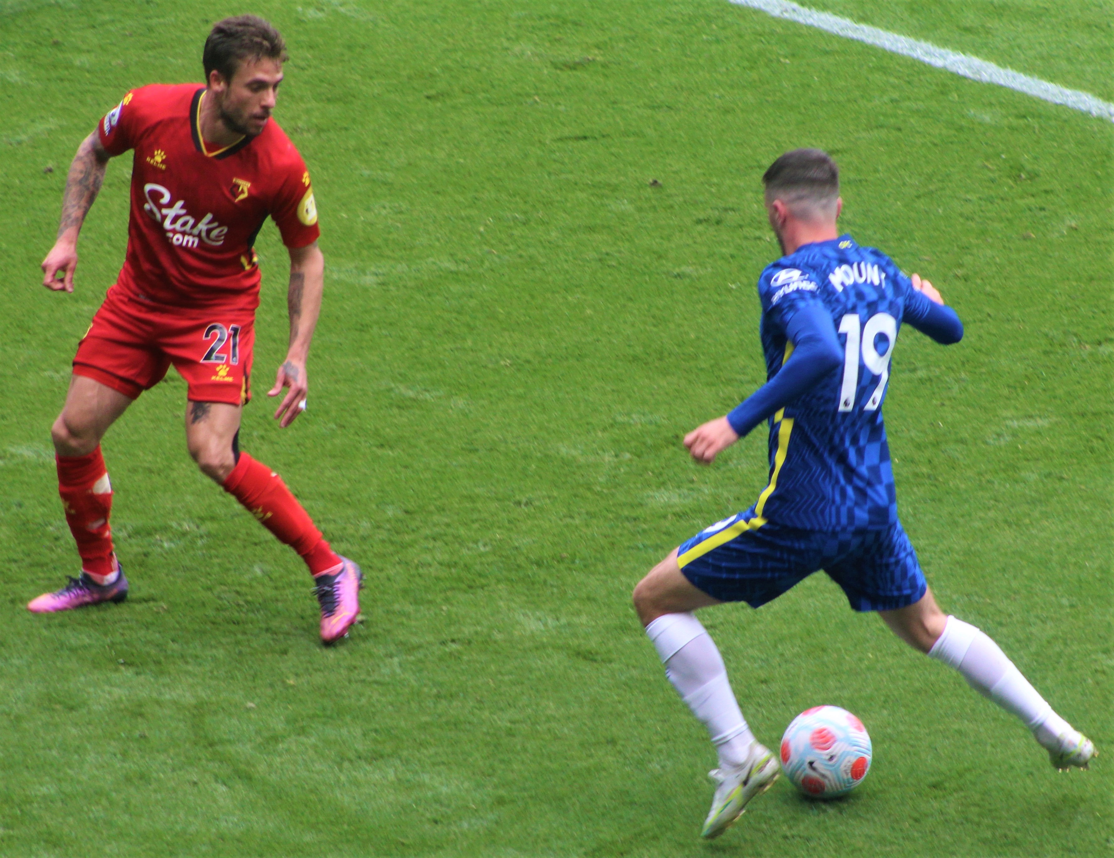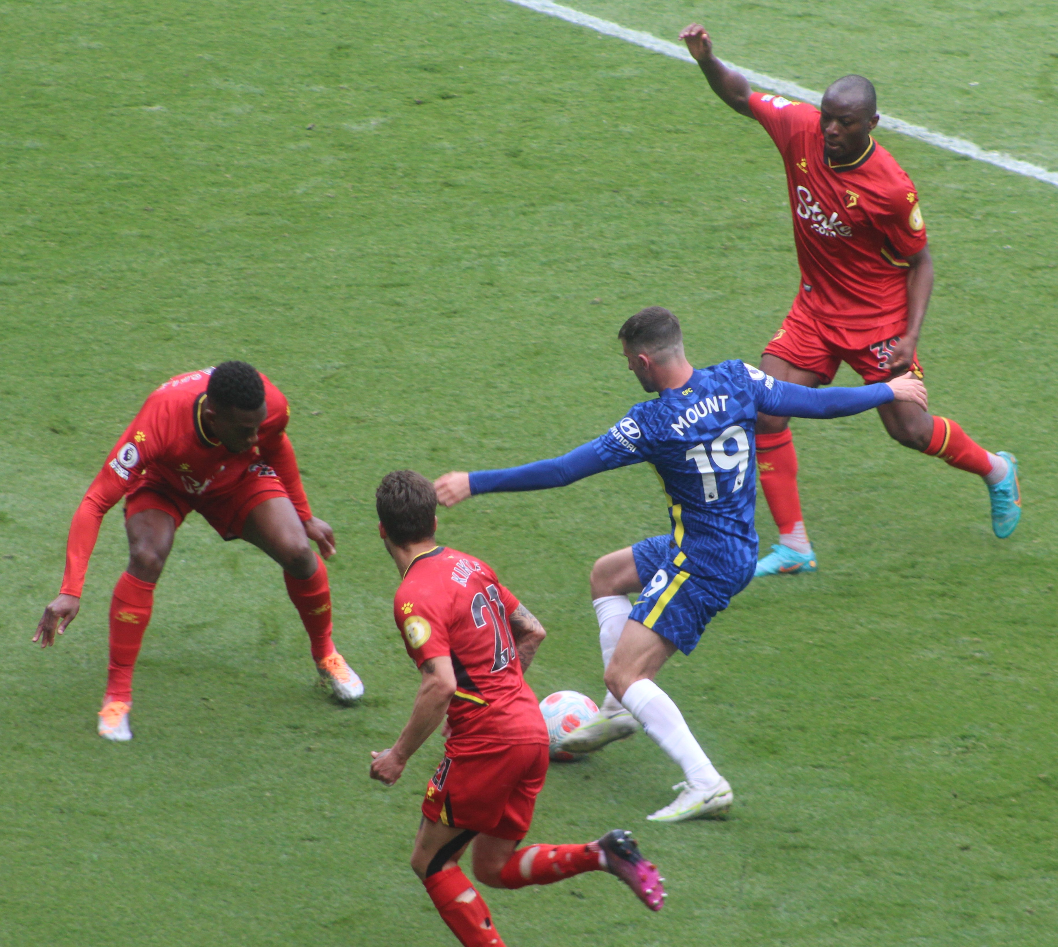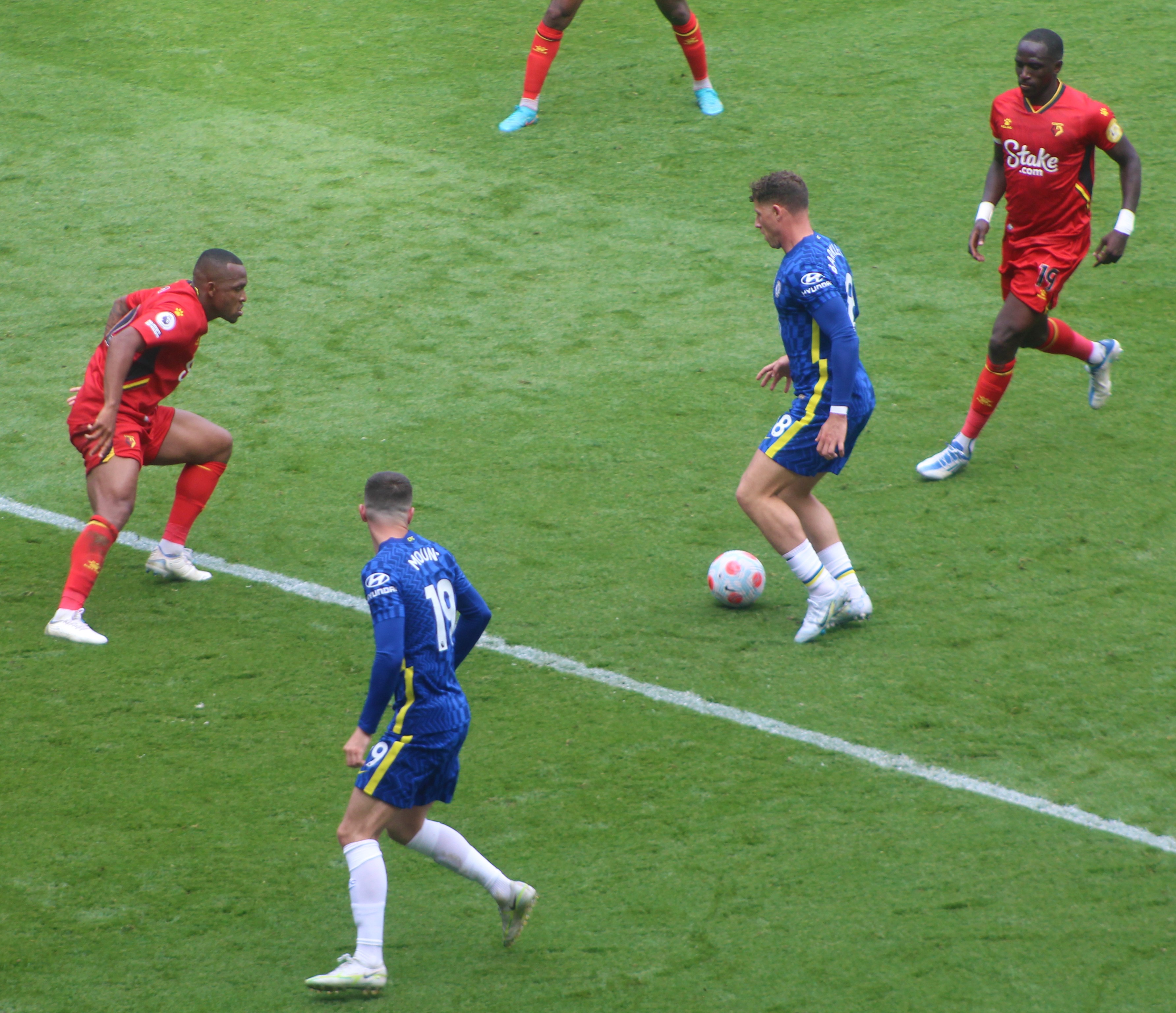 The game began and we edged the opening spell quite easily with Mason Mount busy and involved. A couple of very early attacks down the right amounted to nothing. The rain was just about staying off.