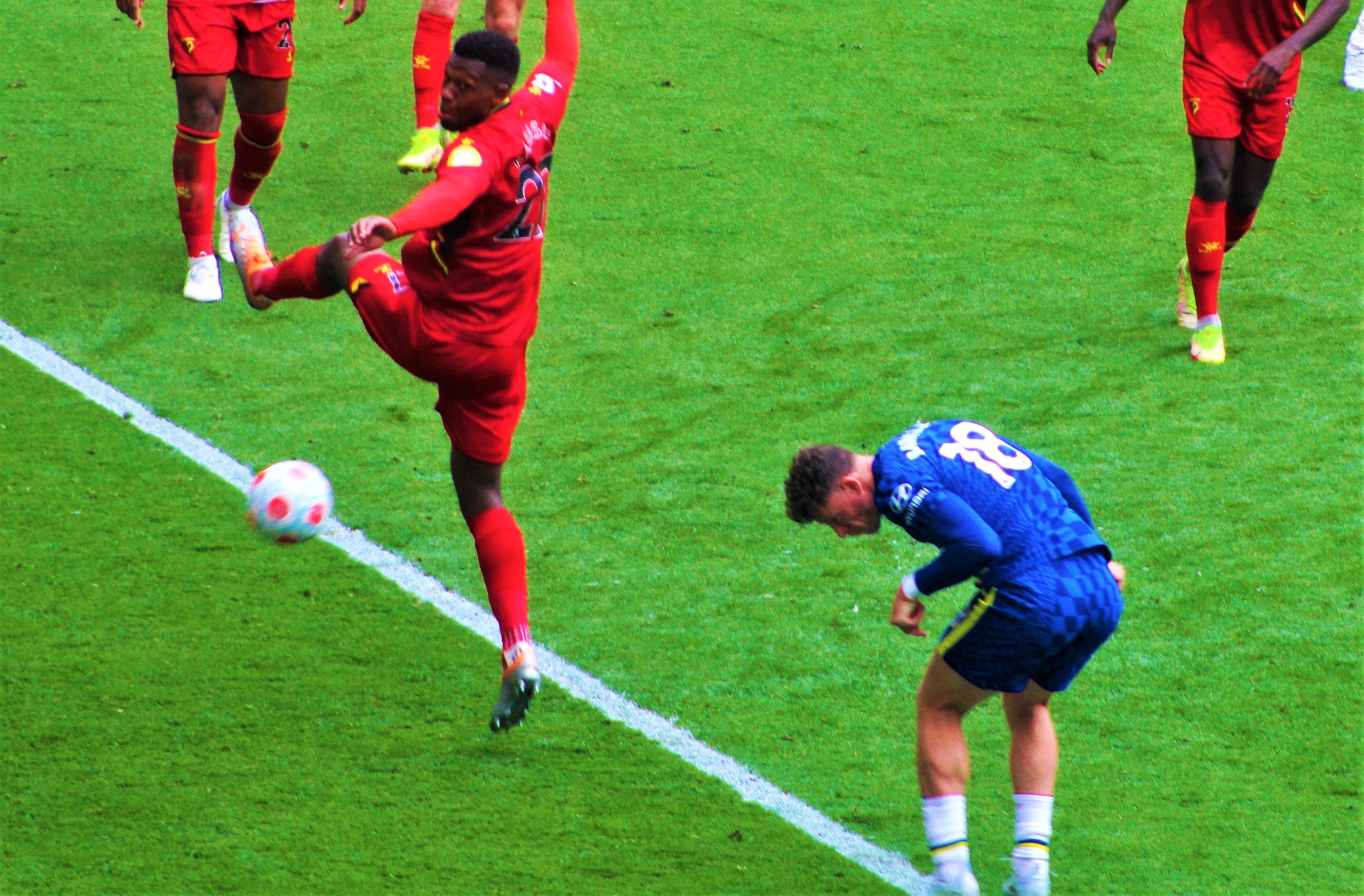 For twenty minutes, my photos stopped. I couldn’t risk my camera getting waterlogged. Leicester had a few rare forays towards us at the eastern end. I liked the look of Thiago Silva. Bizarrely, of course, these were my first sightings of Werner, Ziyech and Silva in a Chelsea shirt.