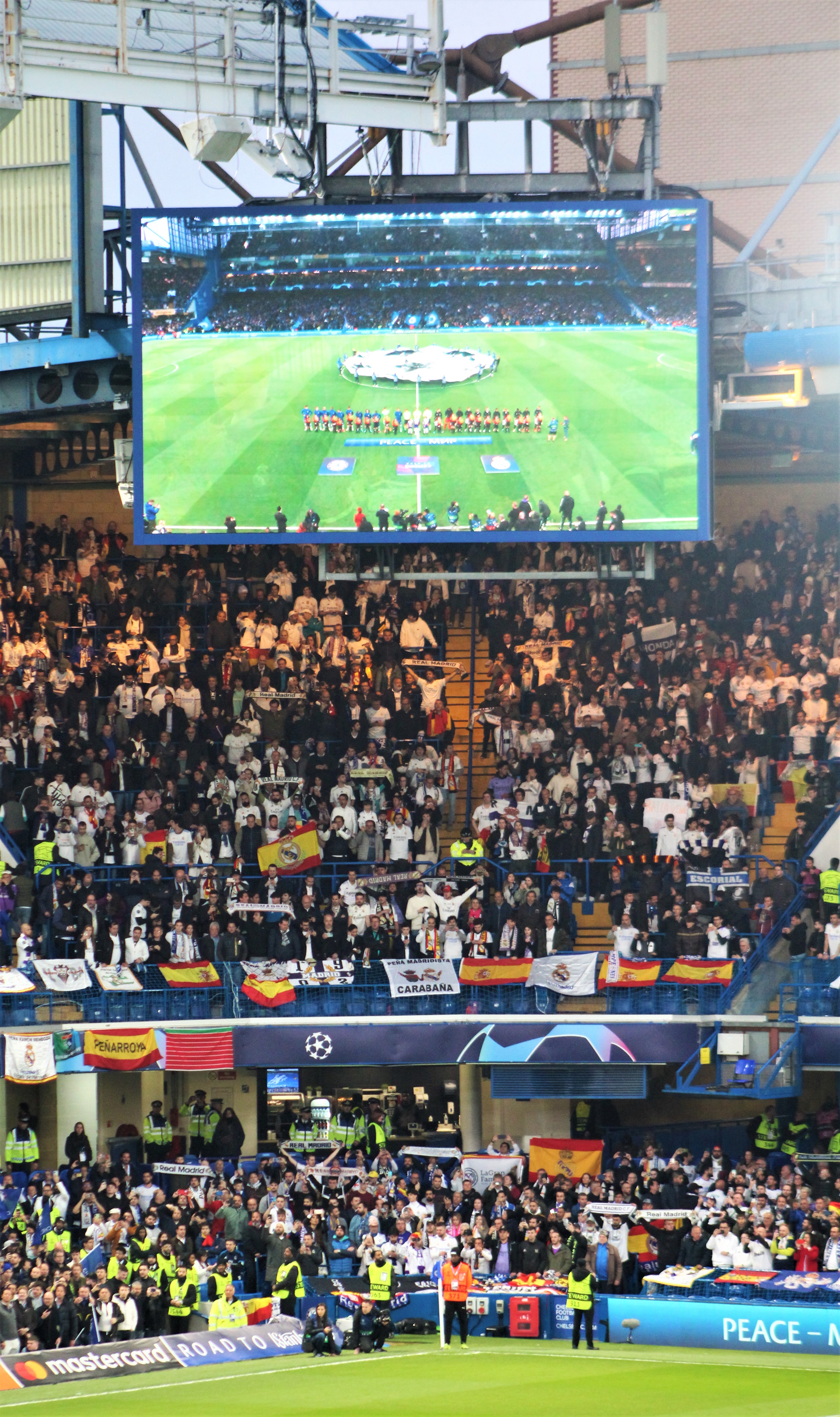 For some reason, Chelsea had decided to position two blowers at either end of the West Stand, pitch-side, and for a few minutes before the pre-game ceremony really got going, these blew dry-ice into the air. I must admit that it added to the atmosphere and the sense of drama despite me preferring fan-led initiatives.