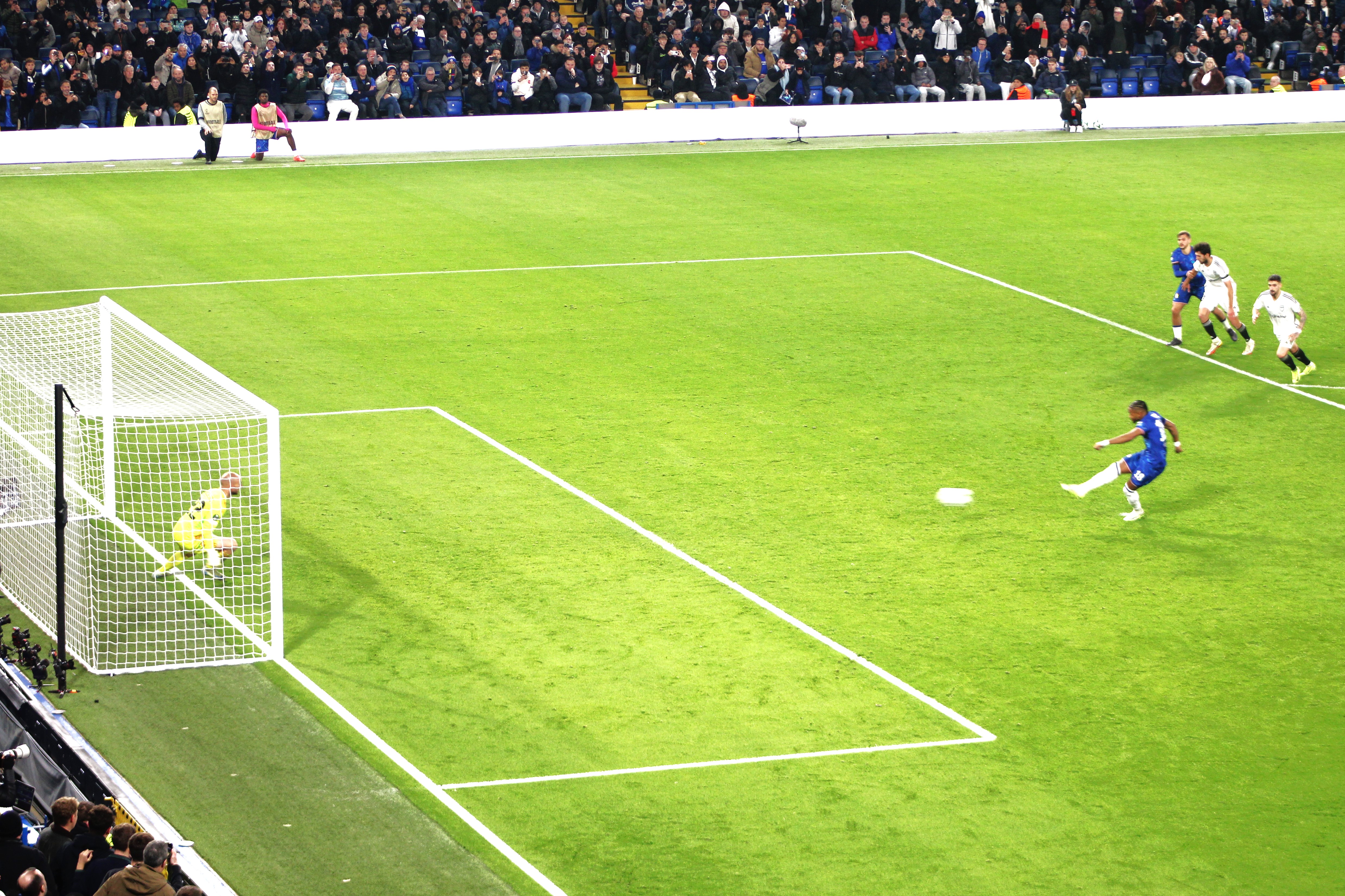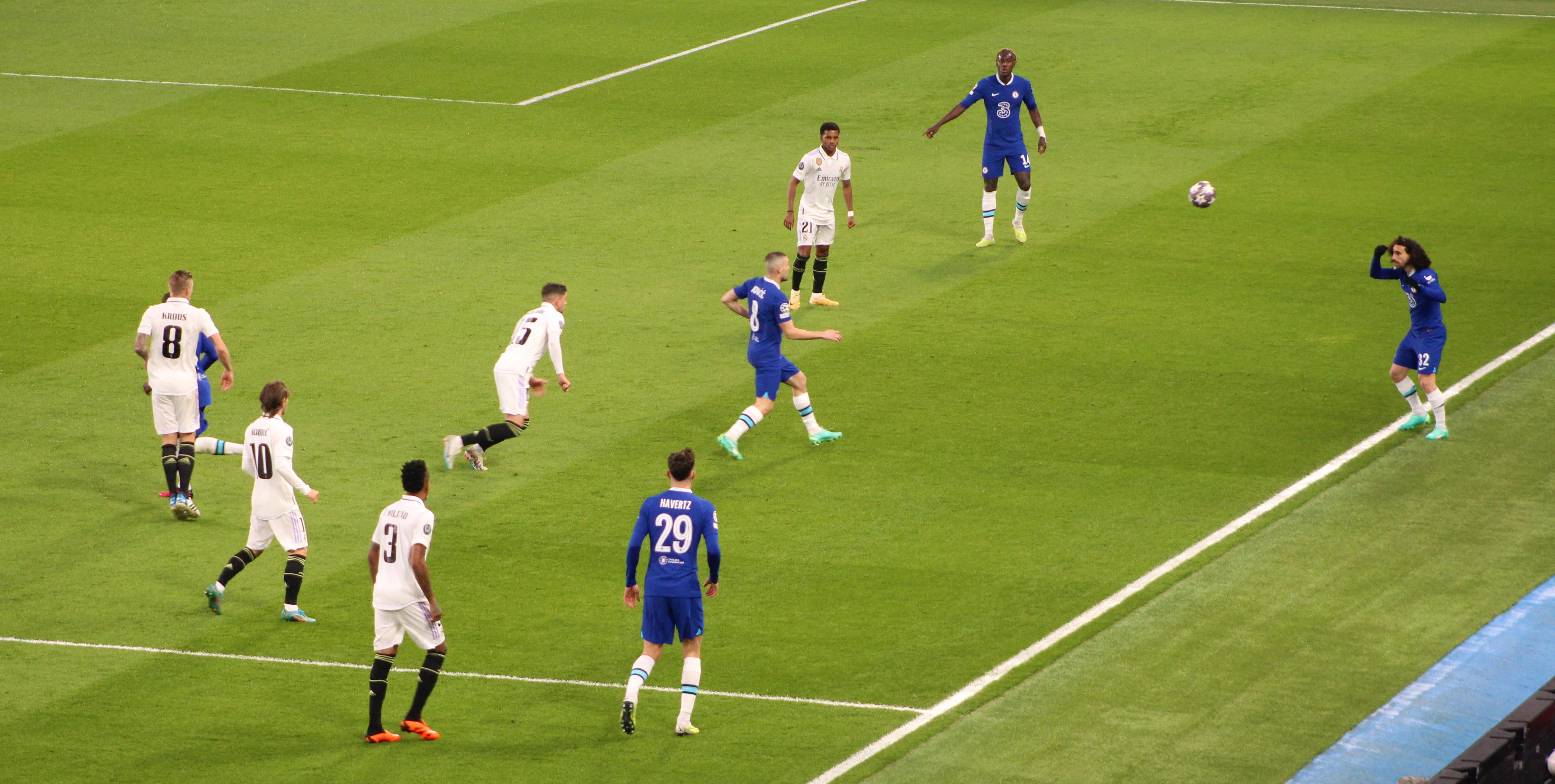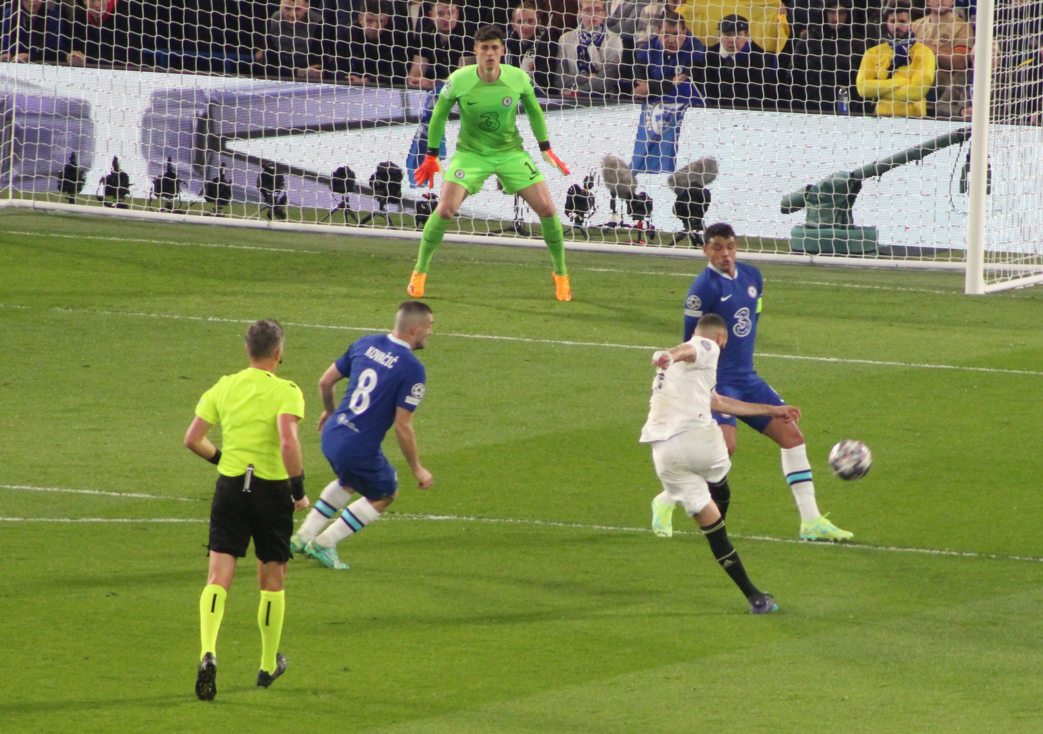 After five minutes, there was an attack, developed well from right to left, that ended up with a cross from Chilwell that eventually resulted in a shot, saved, from Kovacic. But there had been a shout for handball, strangely not by myself, as the cross was whipped in.
