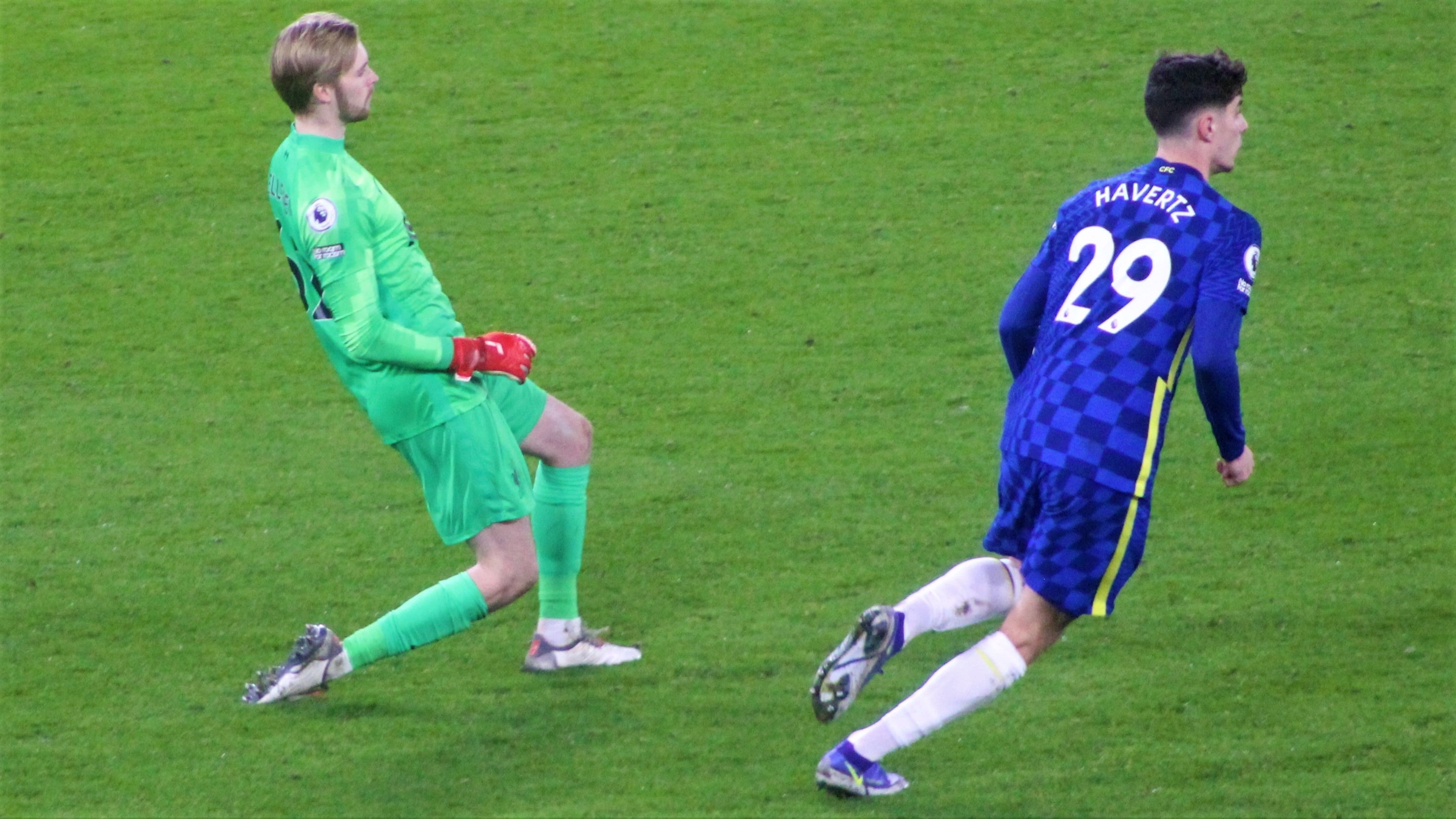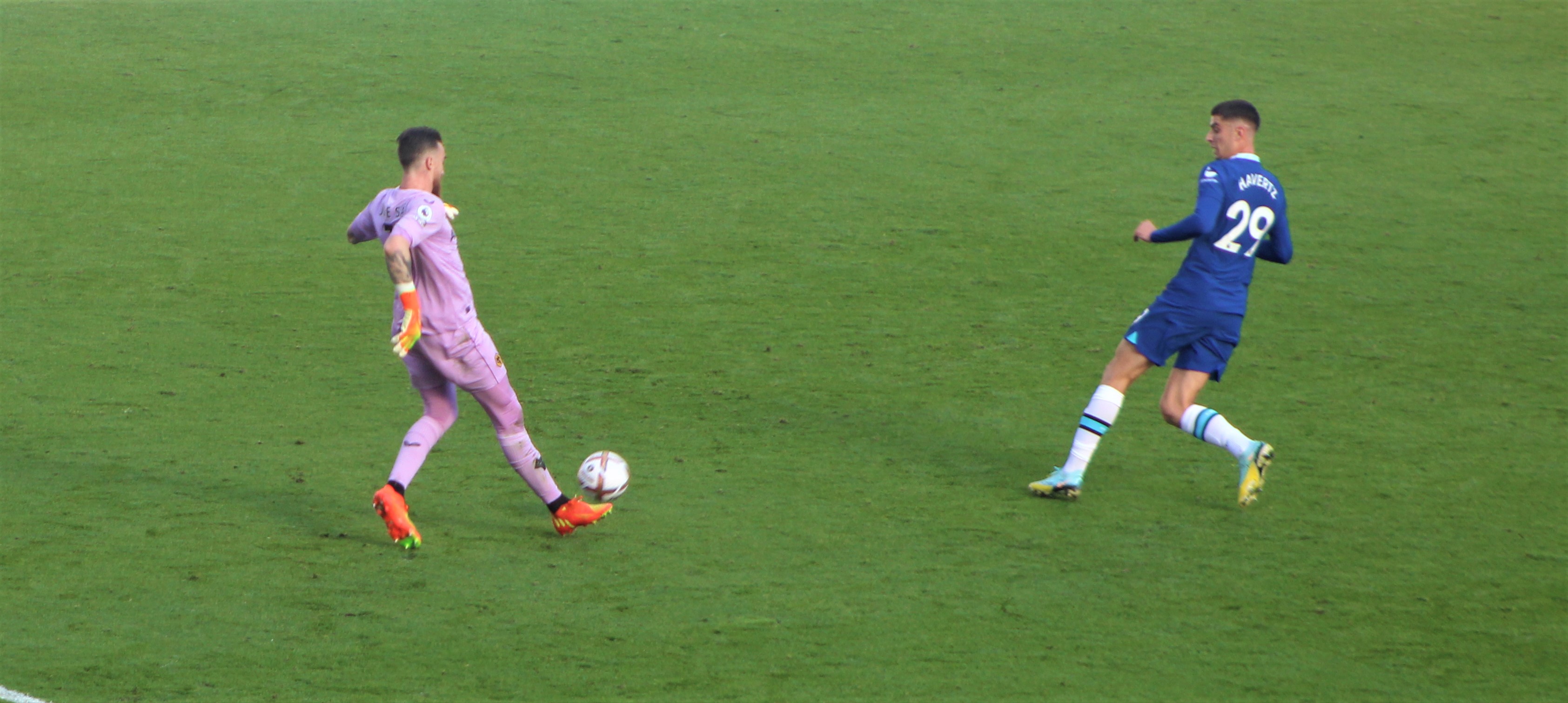 The half-time break was approaching but Mount was able to send over a deep cross from our right towards the thin frame of Havertz who was positioning himself at the far post. He lept well to meet the ball and dolly-dropped it into a yawning net after Sa had been caught flat-footed.