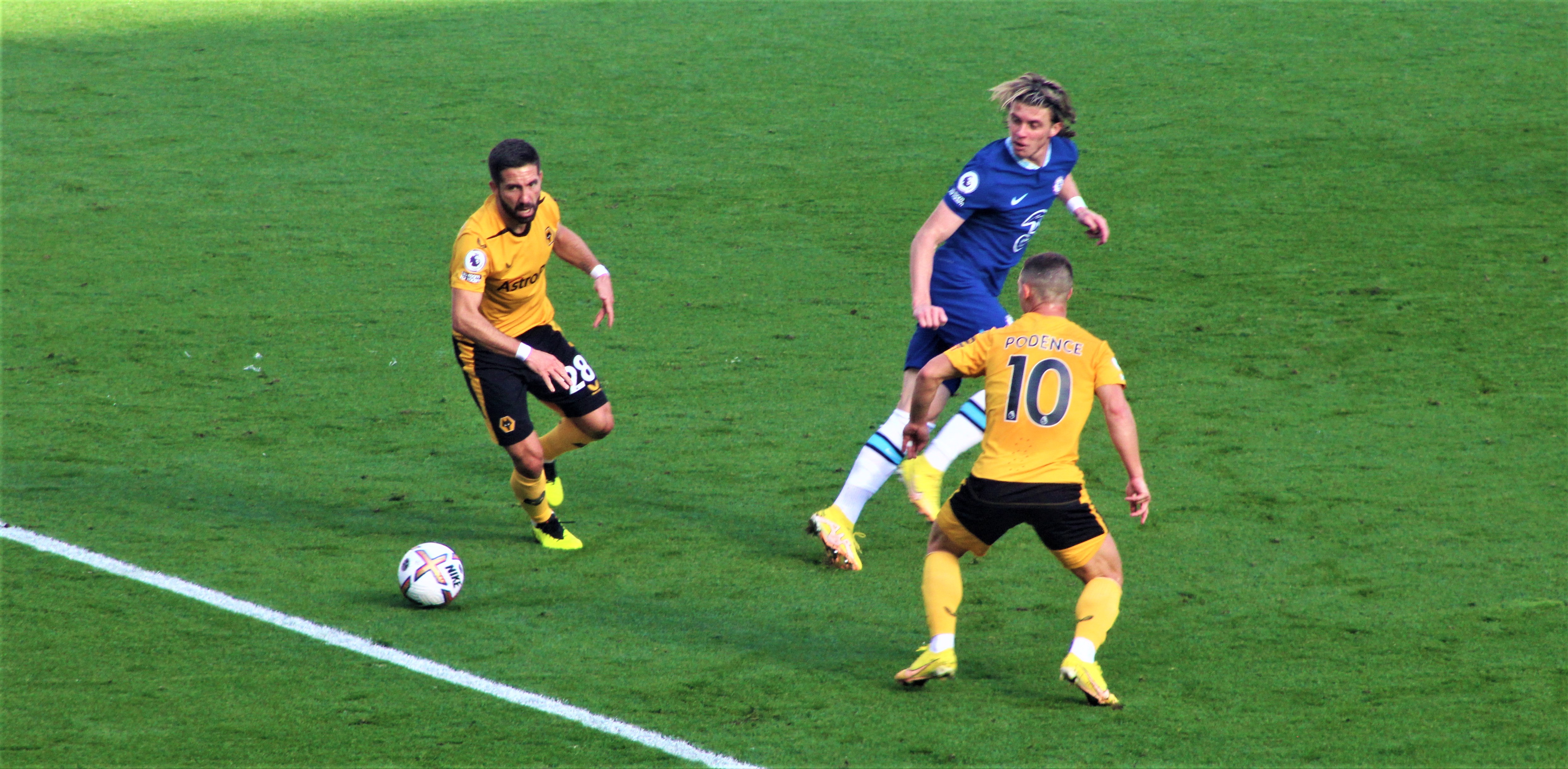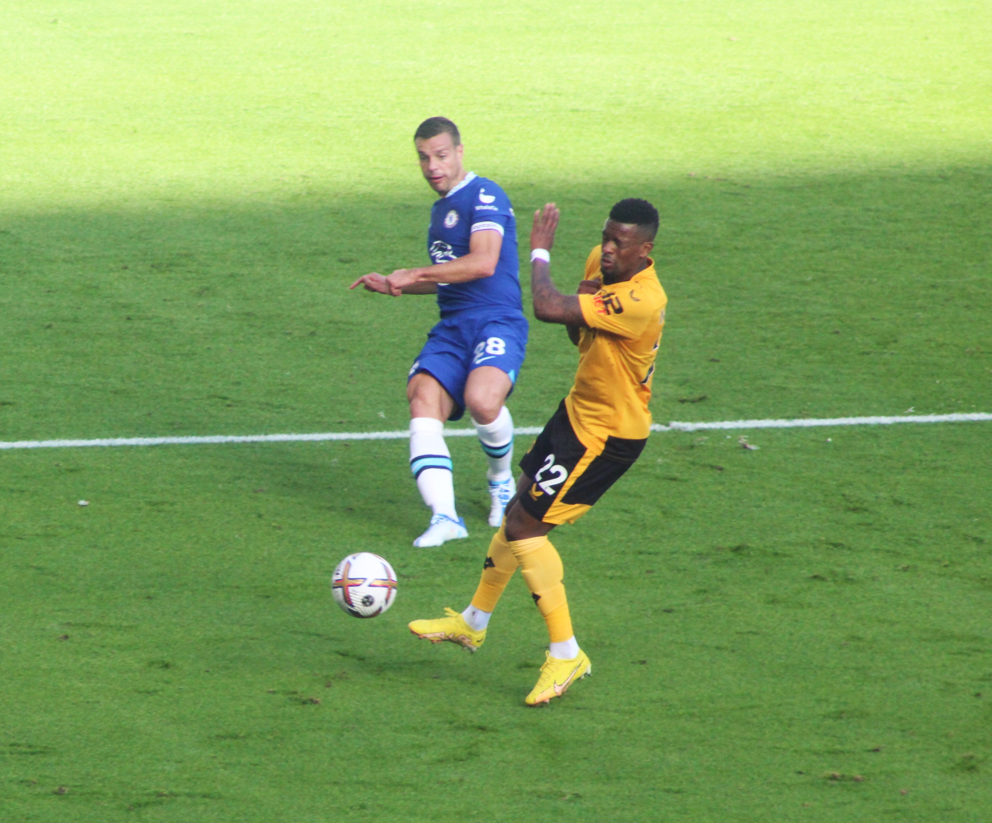 After just two minutes, a gentle prod by Gallagher slipped just wide of the far post. It was a bright start from us, especially with the floodlights on, but Wolves had a half-chance with a Daniel Podence header but this thankfully did not worry Kepa. We carved out a steady supply of chances for Kai Havertz, Jorginho and Christian Pulisic without causing their ‘keeper Jose Sa any undue concern down below us.