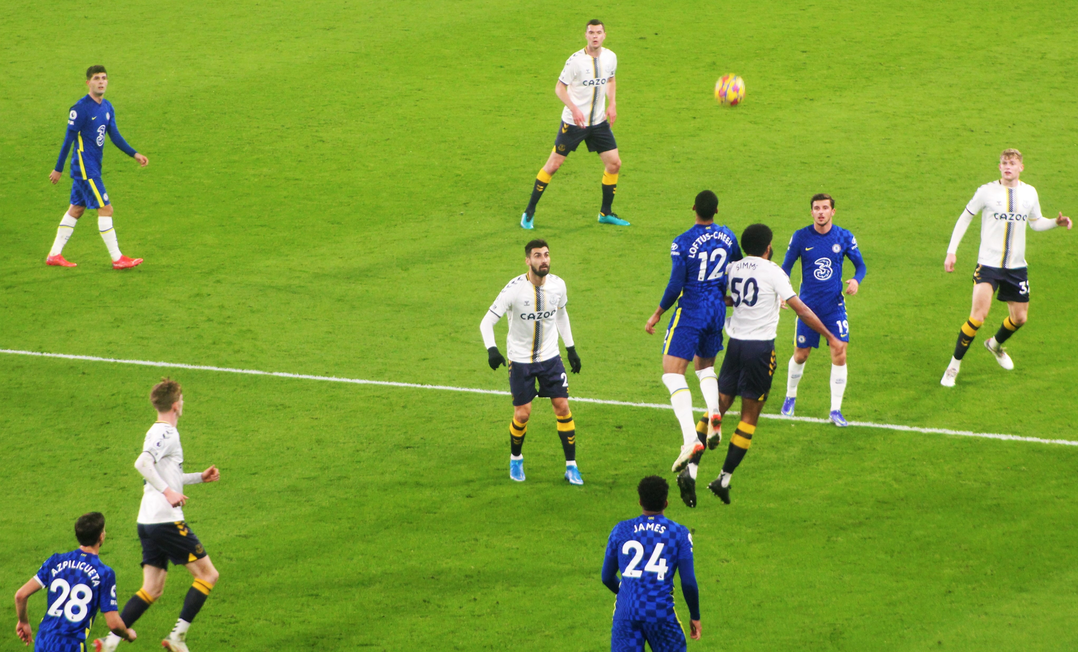 There was a magnificent block from Kepa on the hour mark; that man Marega’s shot was adeptly stopped by our young ‘keeper. Mohammed Kanno’s firm drive was then saved at full stretch by Kepa. The boy was keeping us in it.