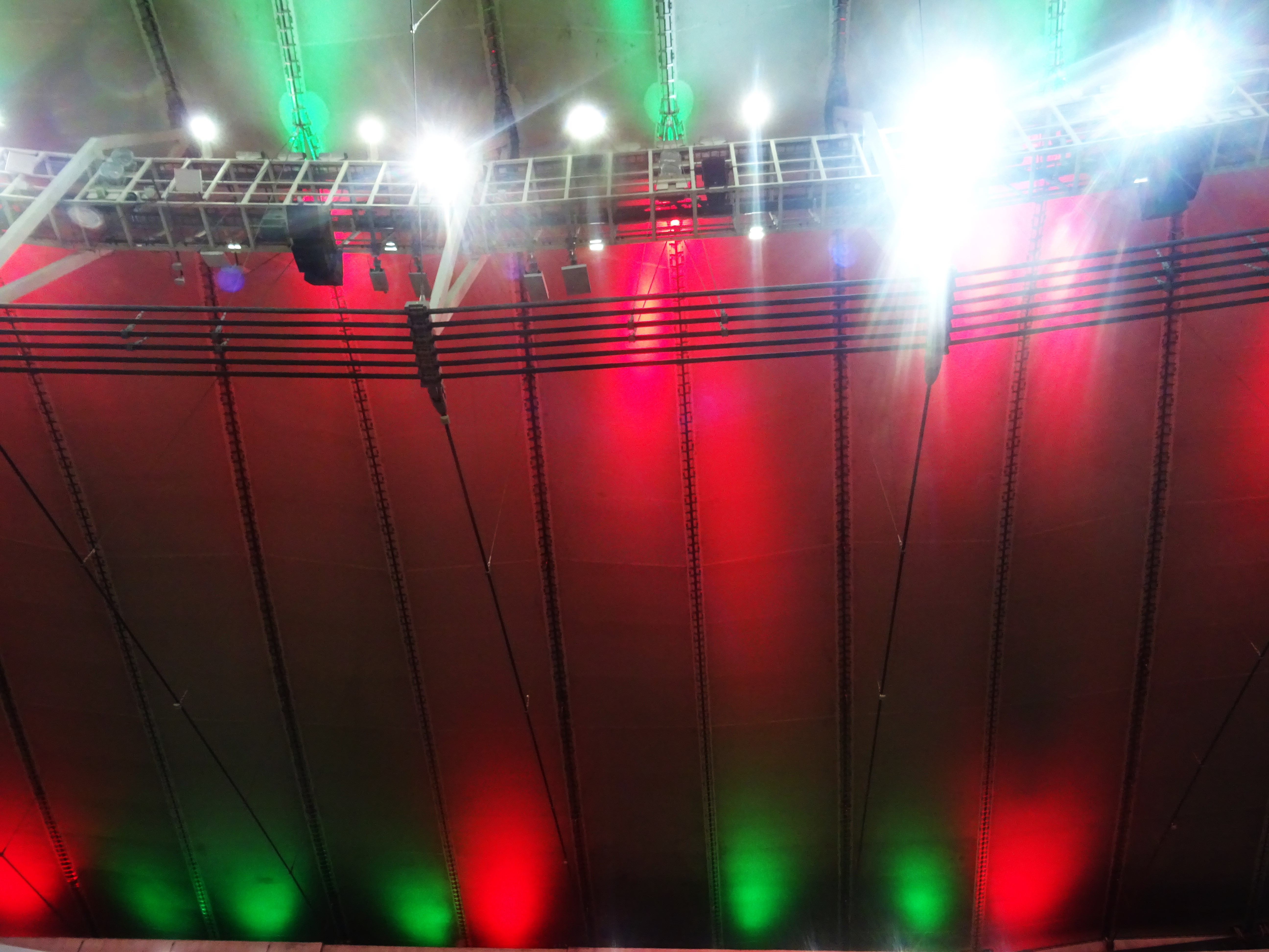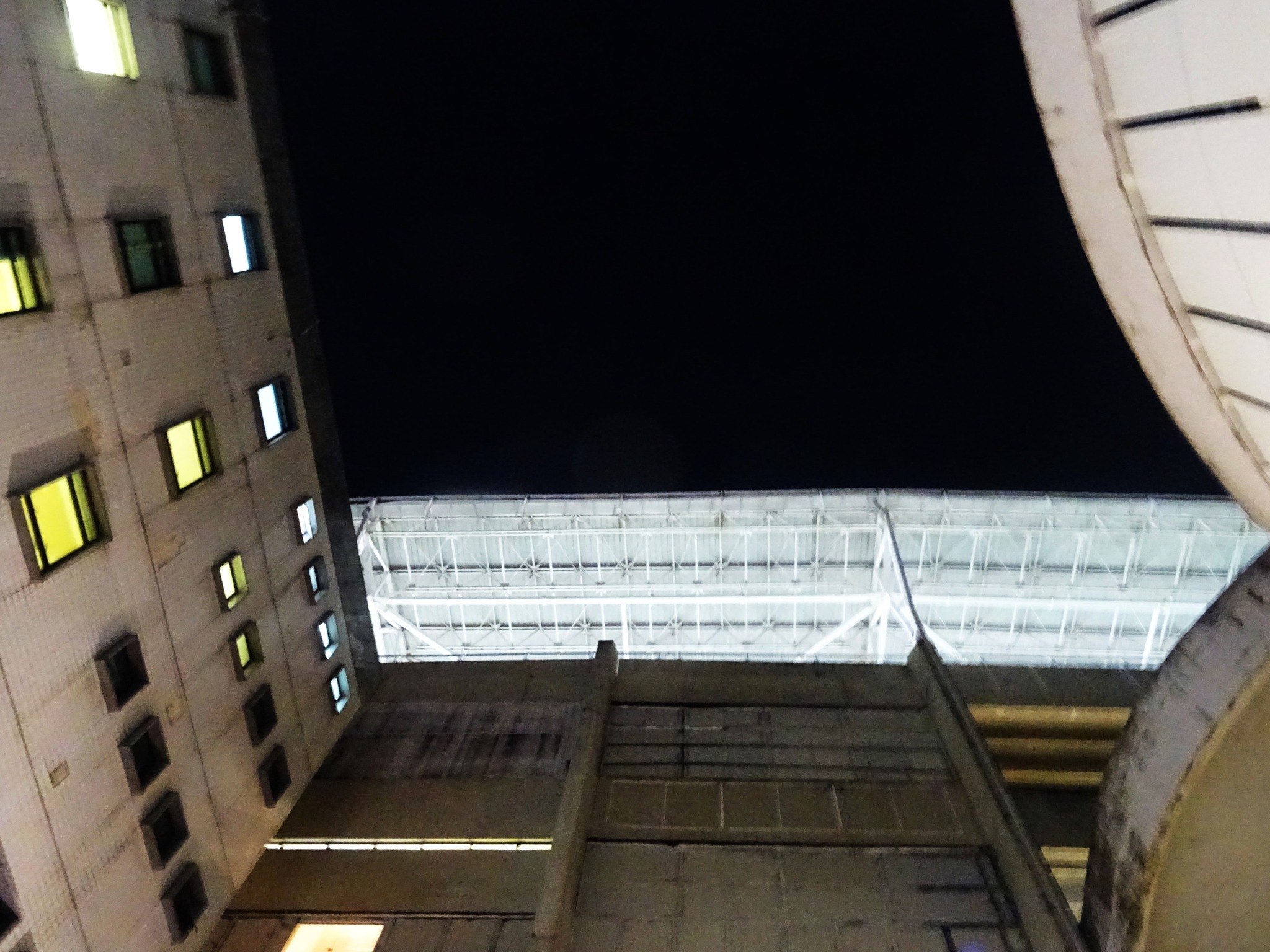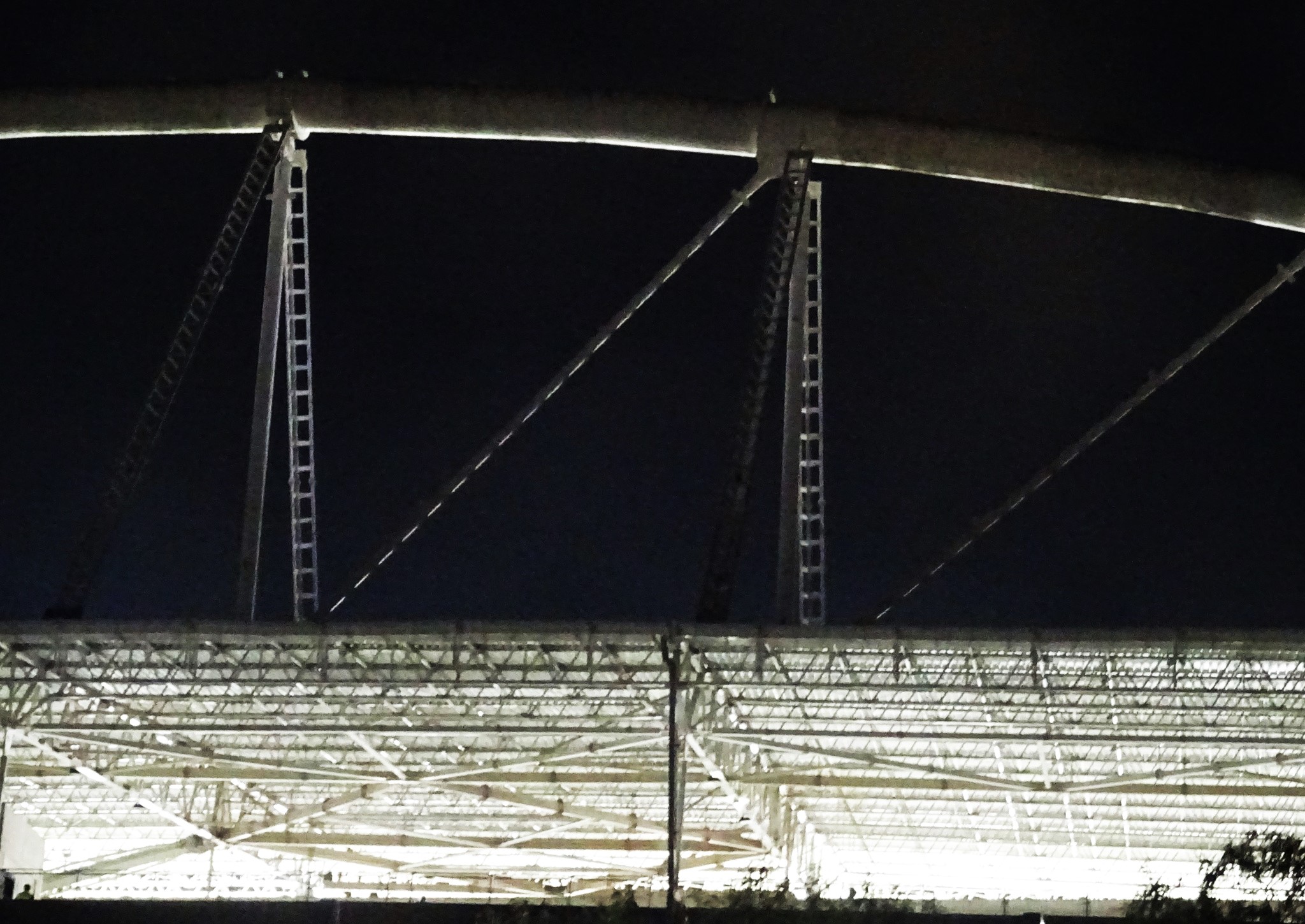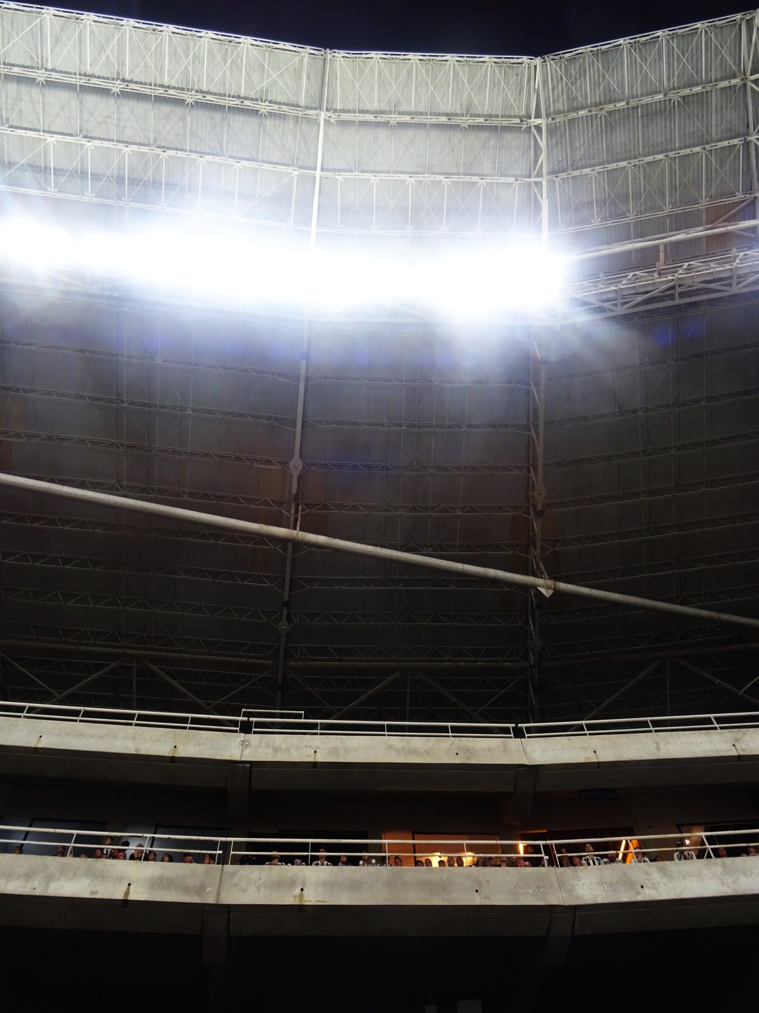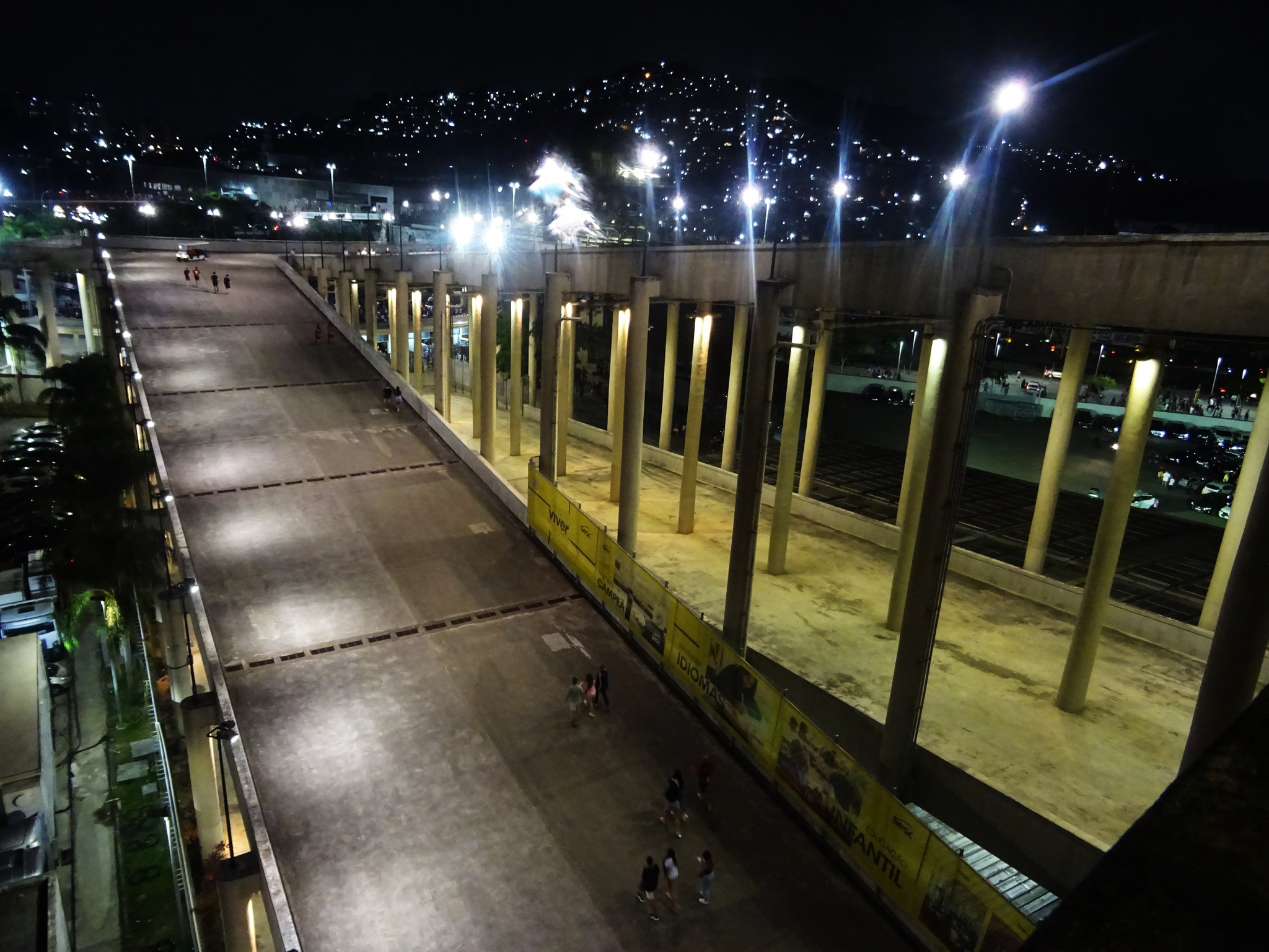 At half-time, I trotted out to the balcony that overlooked the city. I took a photo of a section of the Maracana roof support, pocked and cracked through time, and contrasted it with the lights shining on a nearby hill. Rio is surrounded by huge rising pillars of black rock. And here I was inside the city’s mammoth concrete cathedral.