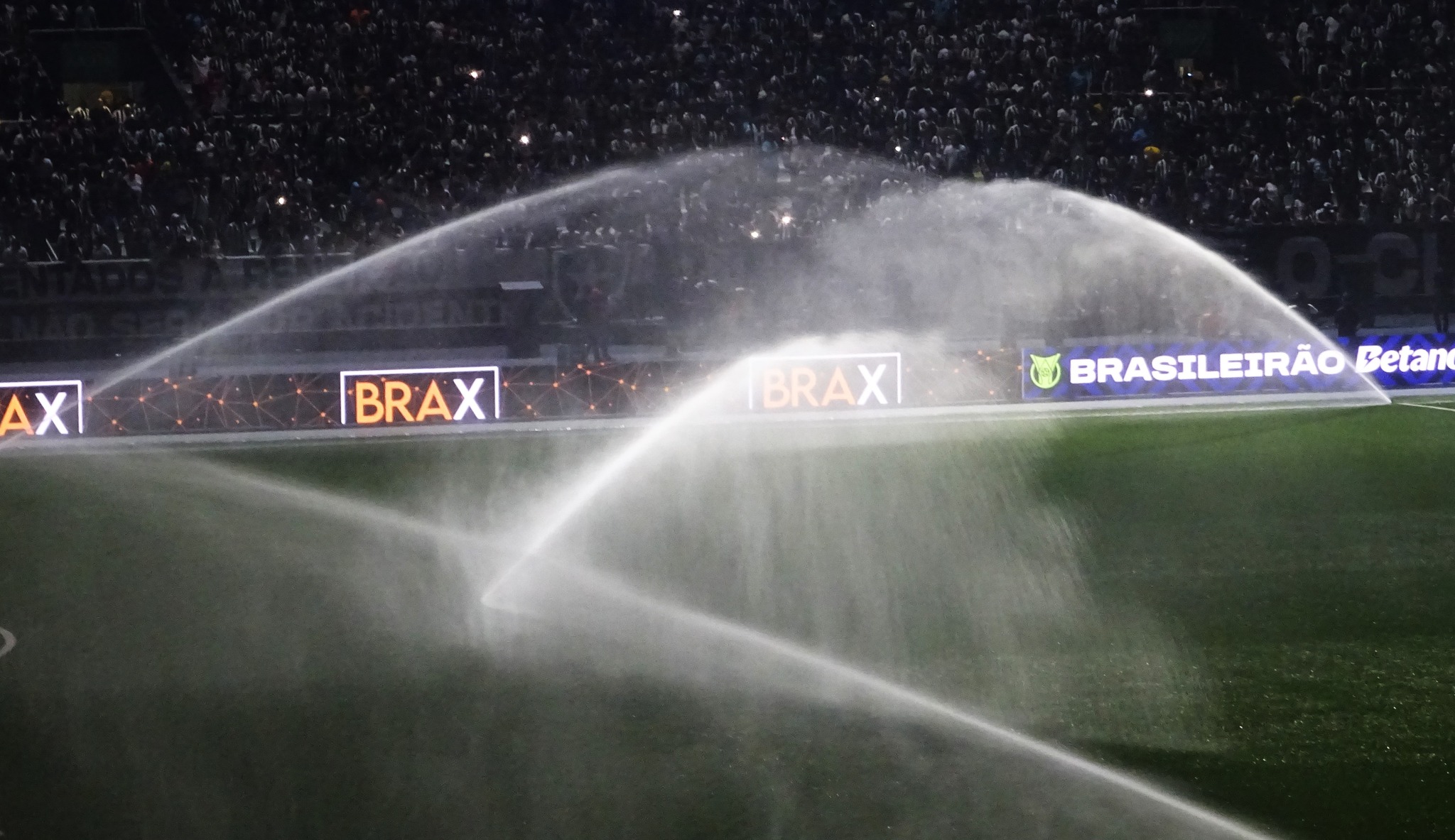 On thirty-two minutes, there was a hydration break, sponsored by a drinks company, and you just now there will be VAR breaks with sponsors very soon. The pitch was being hydrated too, with the sprinklers on.