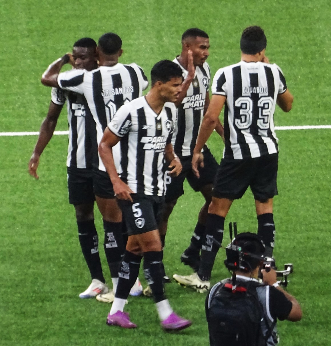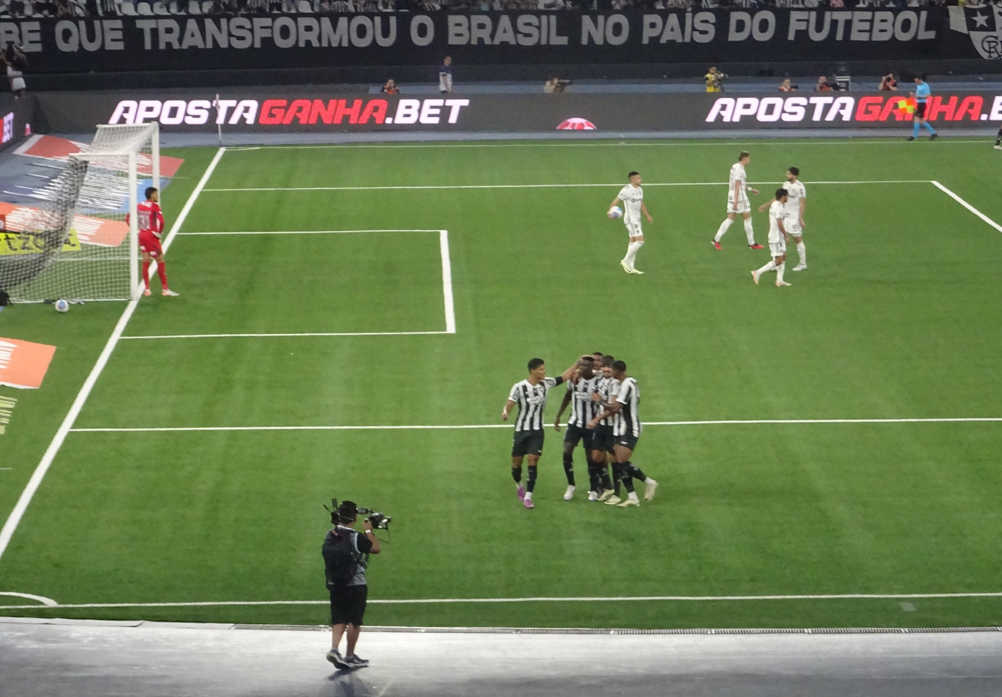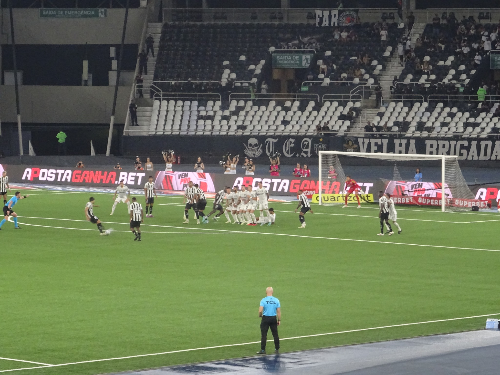 It was an eagerly contested match and on thirteen minutes, after a Flamengo free-kick was cleared, Pedro Neto put pressure on a Flamengo defender. The ball cannoned between the two players, and the ball spun forward, and so did Neto. We watched from afar as he raced away. Sadly, I didn’t have my SLR with me due to restrictions on what I could bring into the stadium, and my pub camera was not called upon to record his fine finish past Rossi.