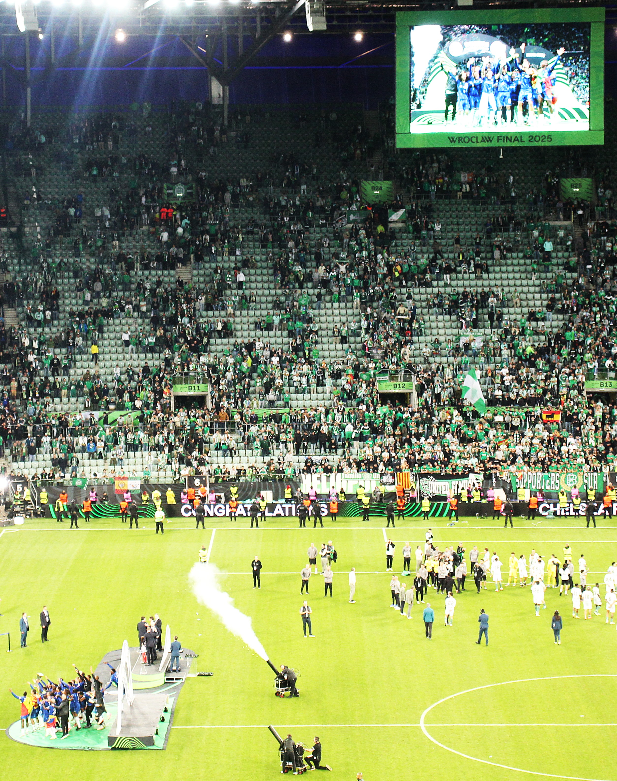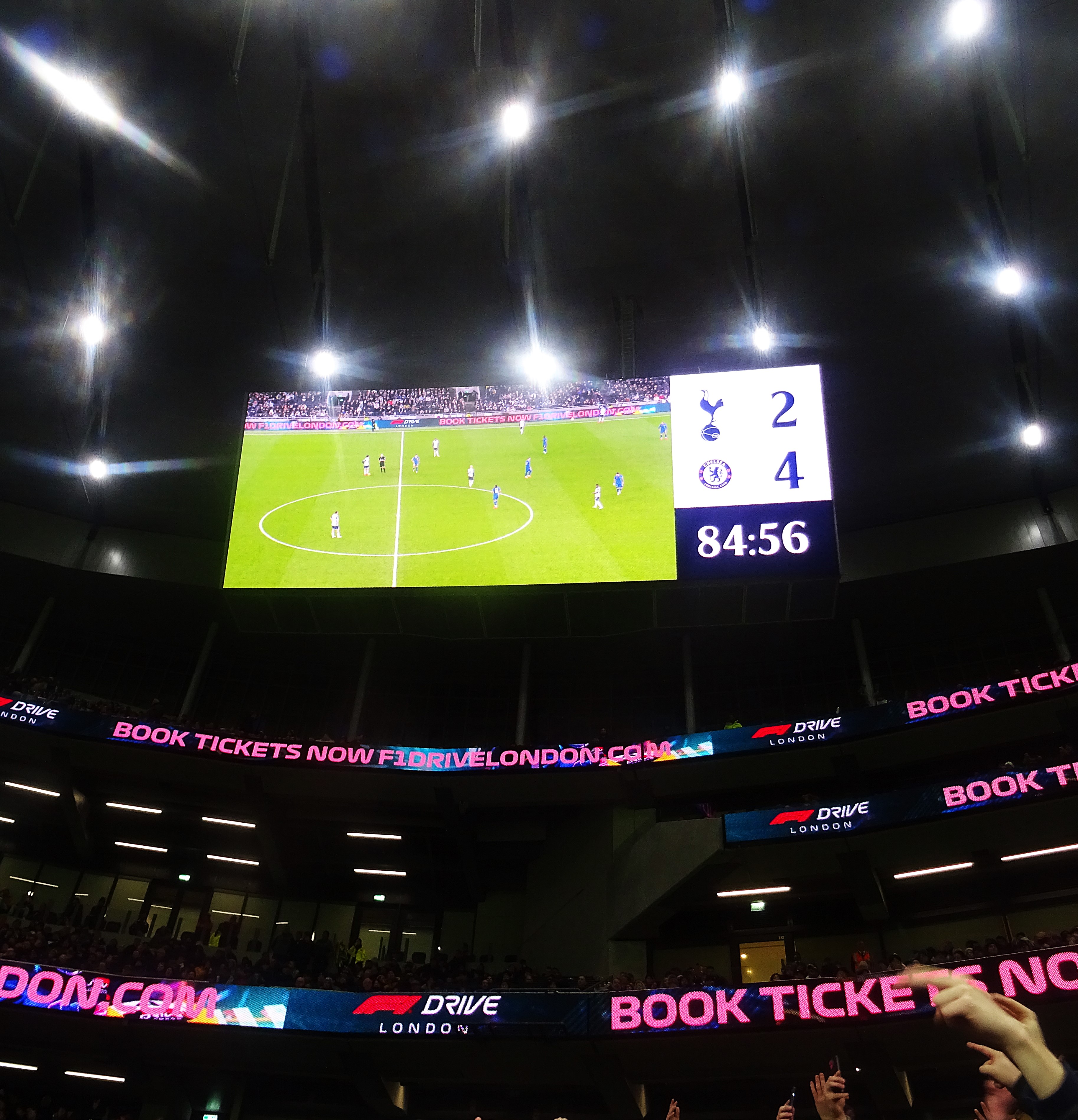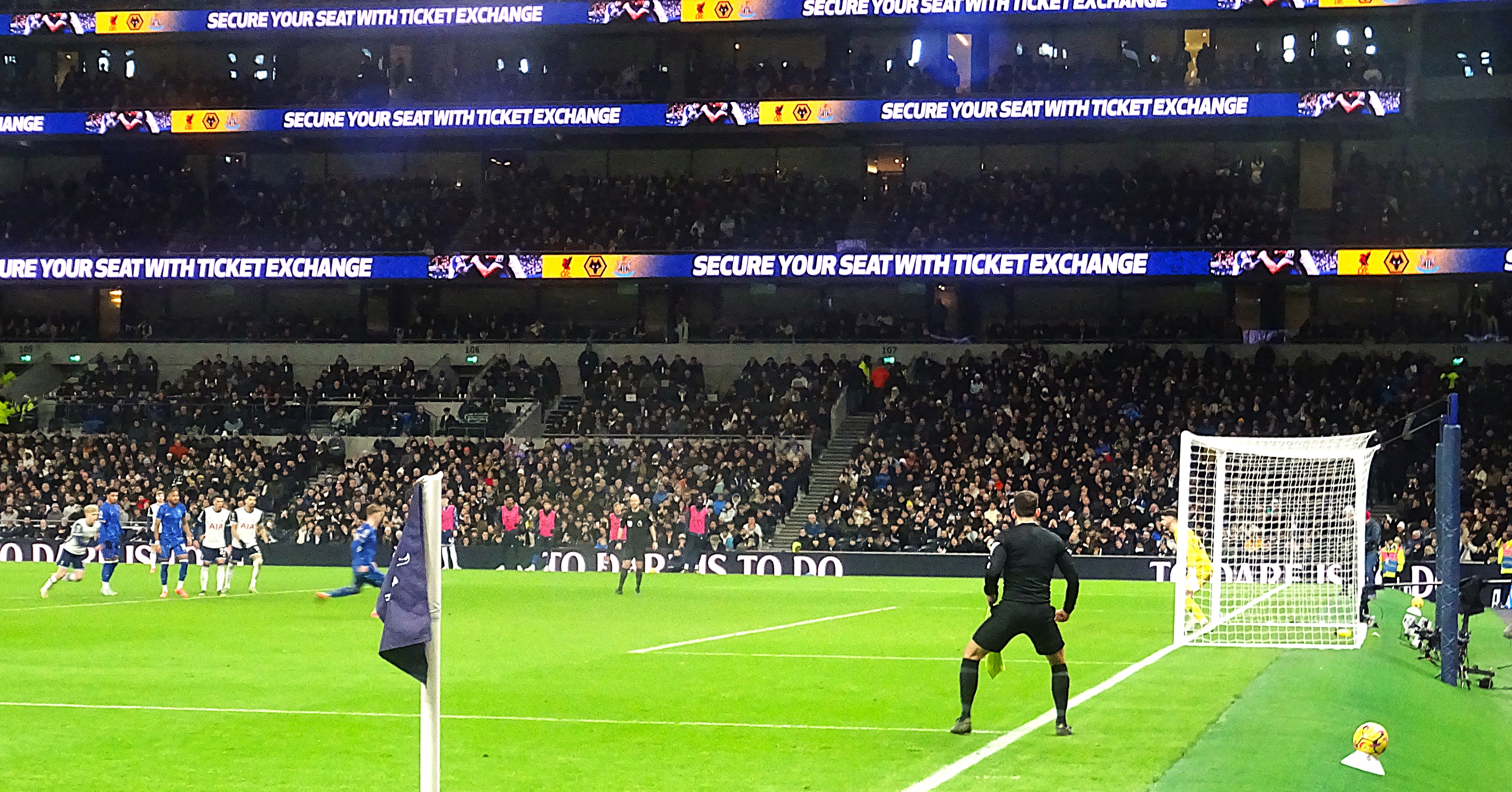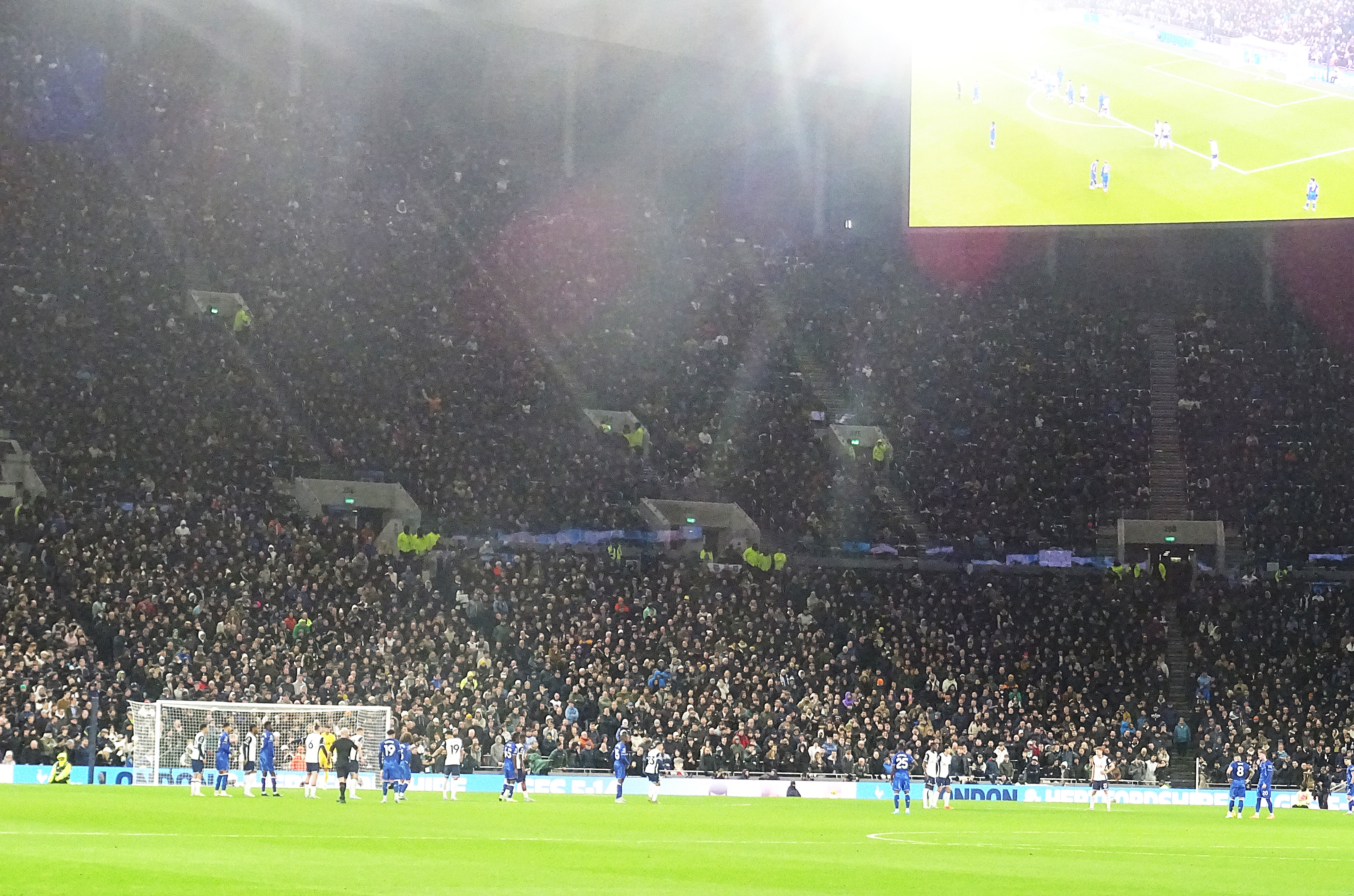 The home areas were now thinning out although you would not know since – a cunning ploy this – all of the seats at the Tottenham stadium are very dark grey.