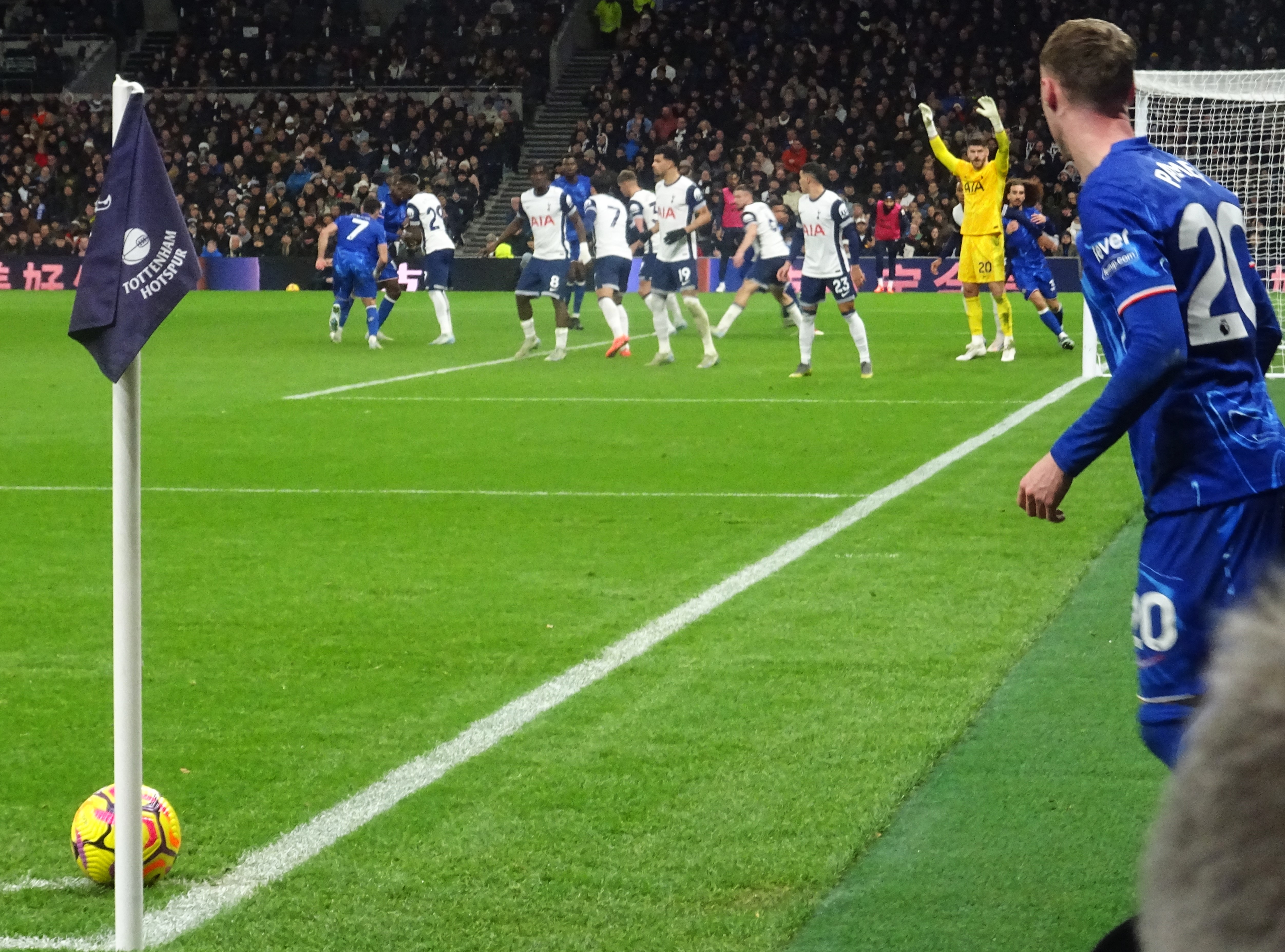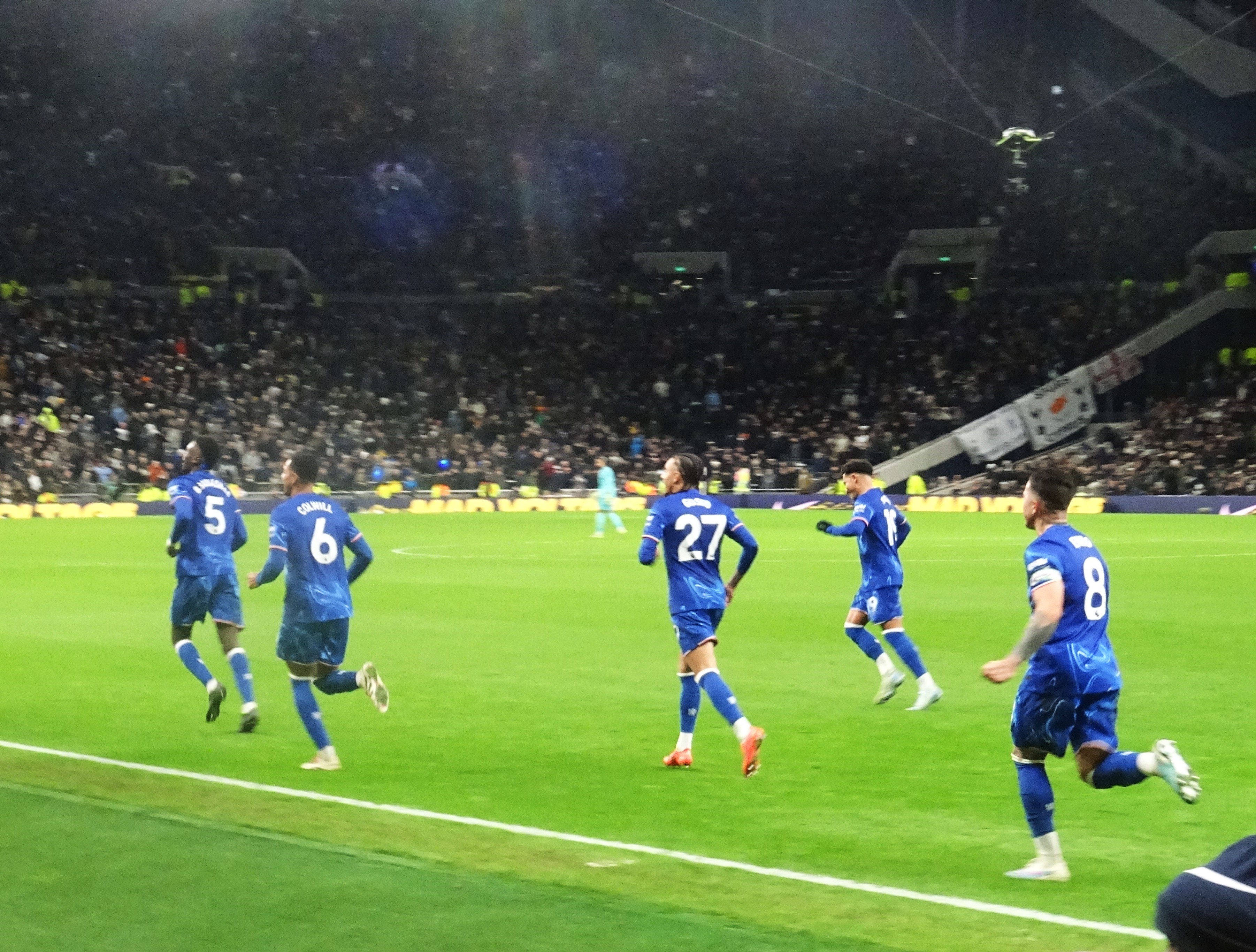 On seventy-three minutes, the bloke behind me pleaded for Neto to push forward and provide an overlap for Palmer, who was shielding the ball only a few yards away. Palmer didn’t need any assistance. He twisted and turned, caressing the ball beautifully as he danced between a few Tottenham defenders. His shot was blocked, and it bobbled out to Enzo who lashed the ball in.