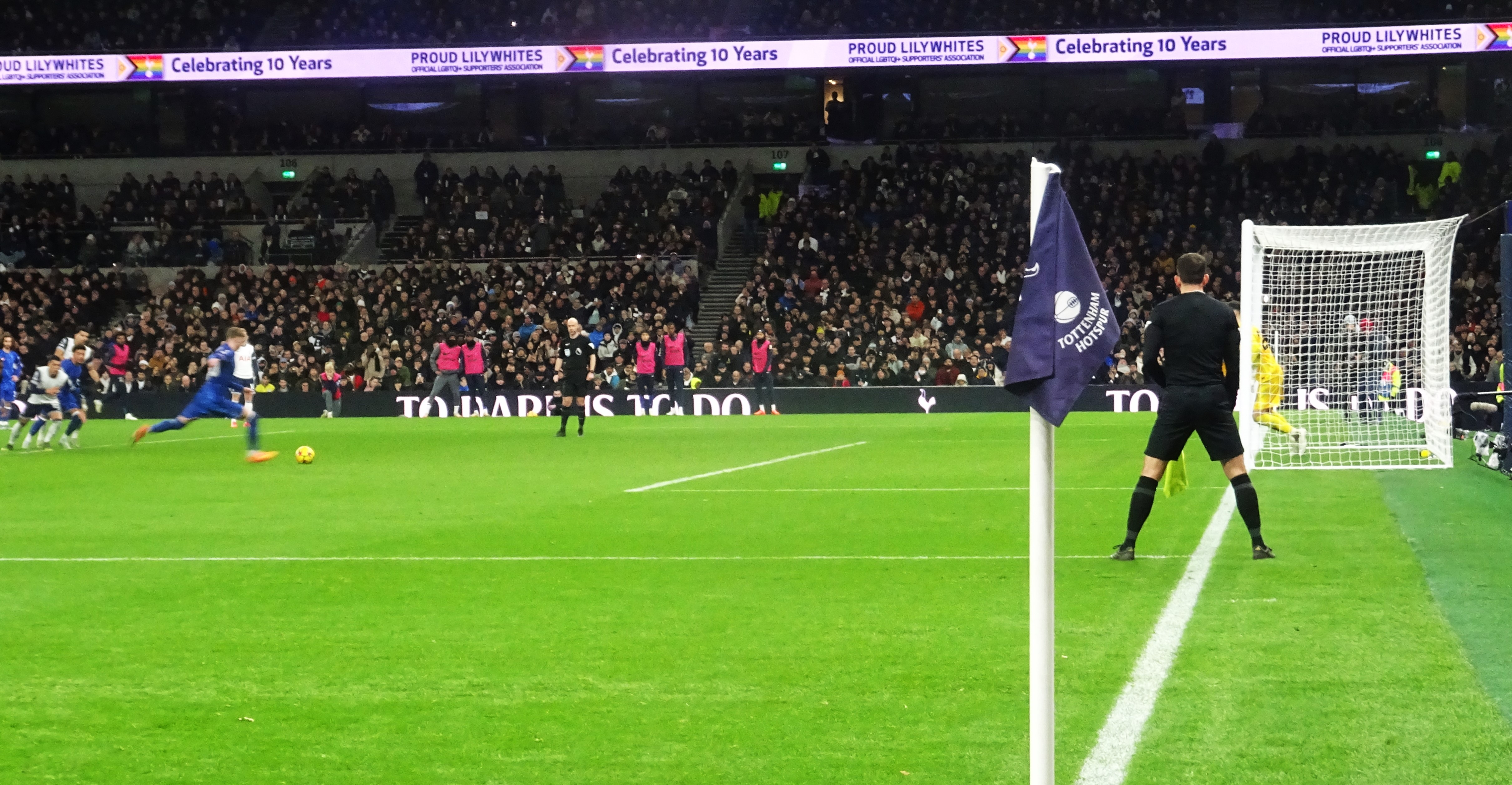 We still had most of the ball but found it difficult to watch as on twelve minutes, Cucarella again slipped, right in front of us this time. This allowed a move to quickly develop. The ball was played into Dejan Kulusevski, who was allowed too much space. His – almost scuffed – shot crept in at the near post.