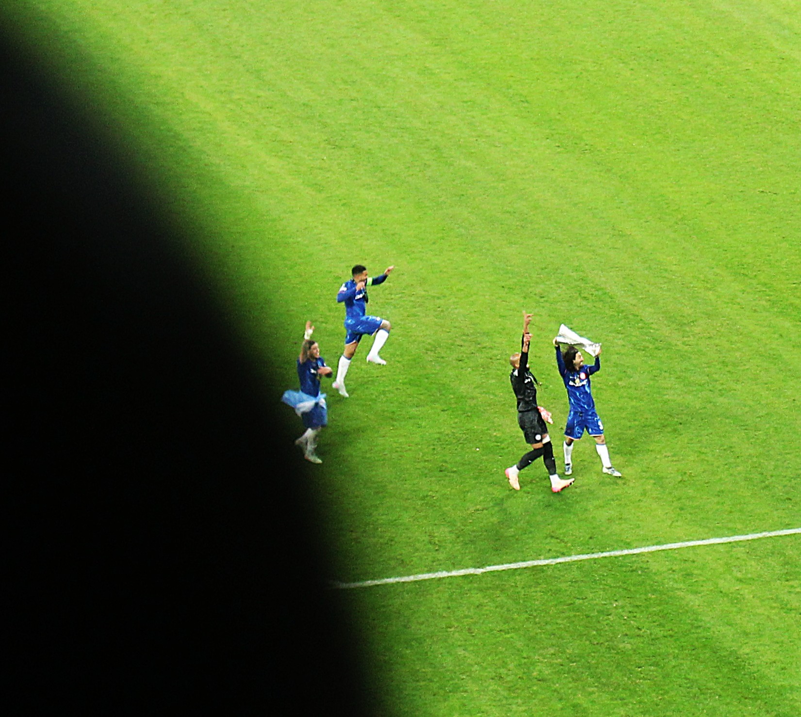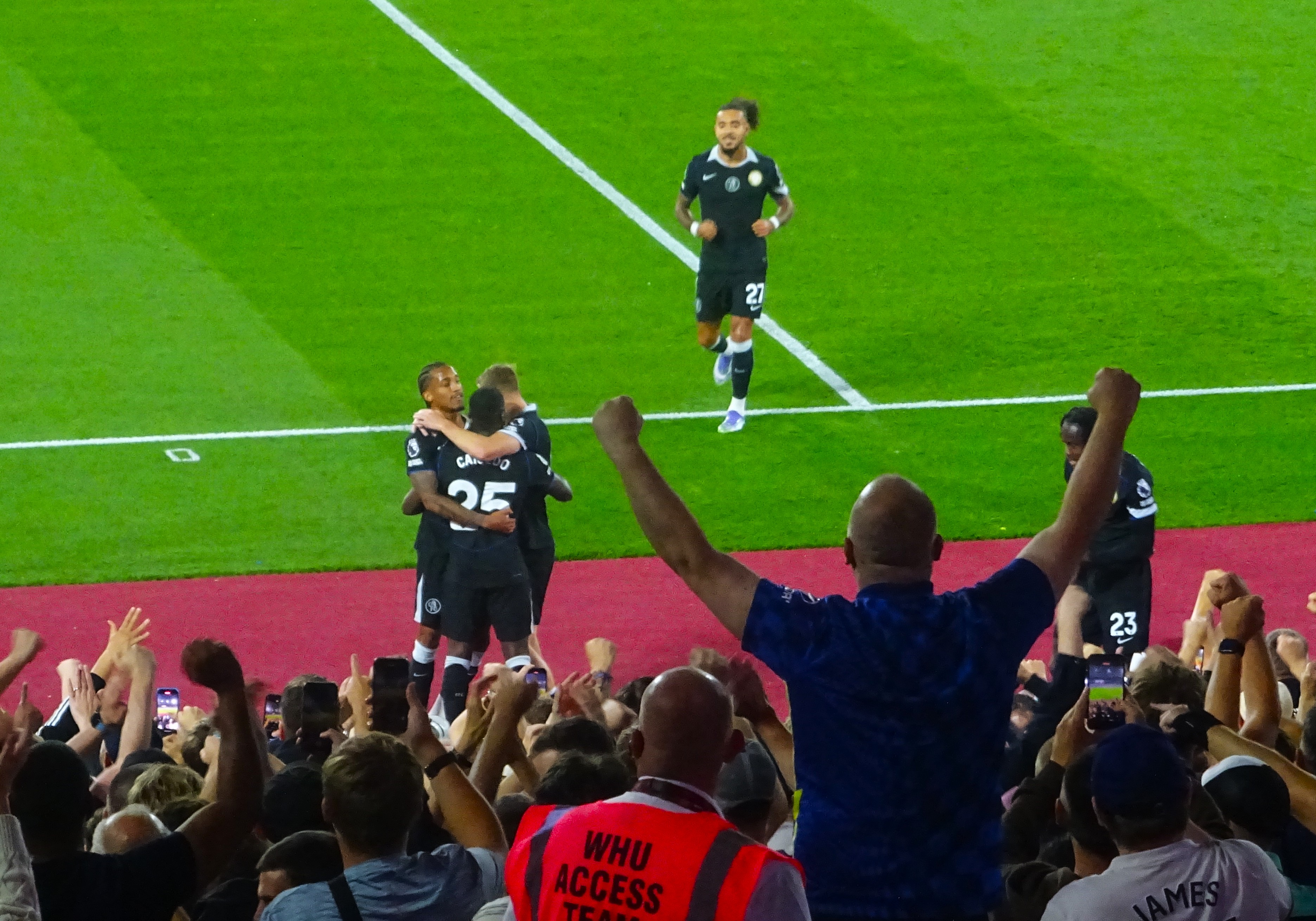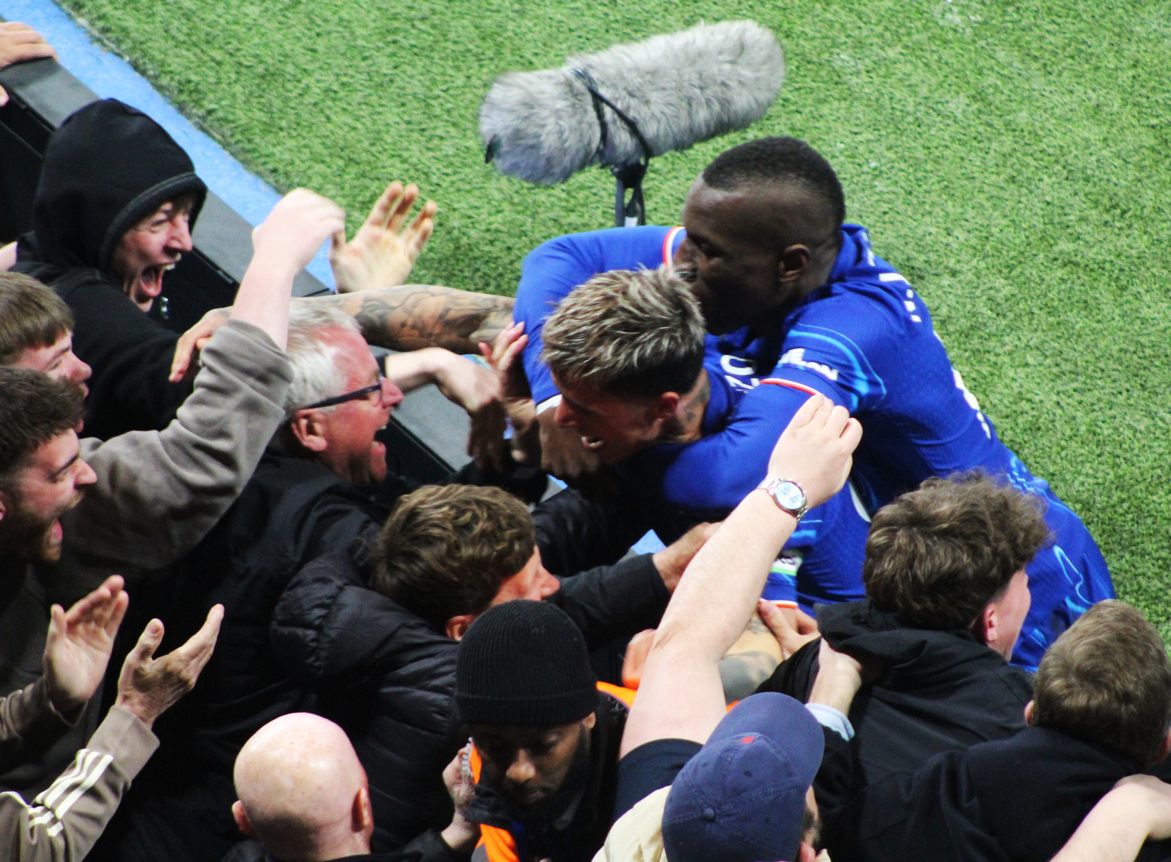 I prepared to set my little camera to record the scorer’s run towards us, but – standing right at the front – I was swamped by on-rushing supporters as it seemed the entire section wanted to get as close to Cole Palmer as possible.