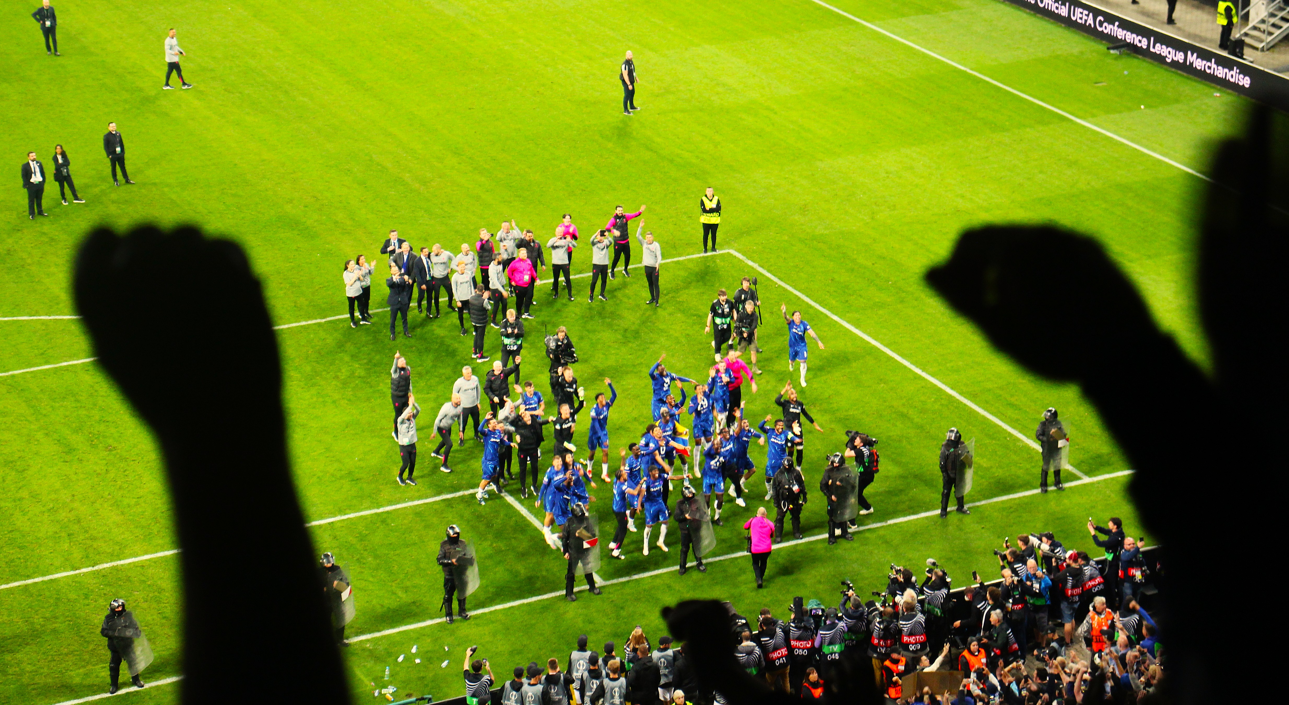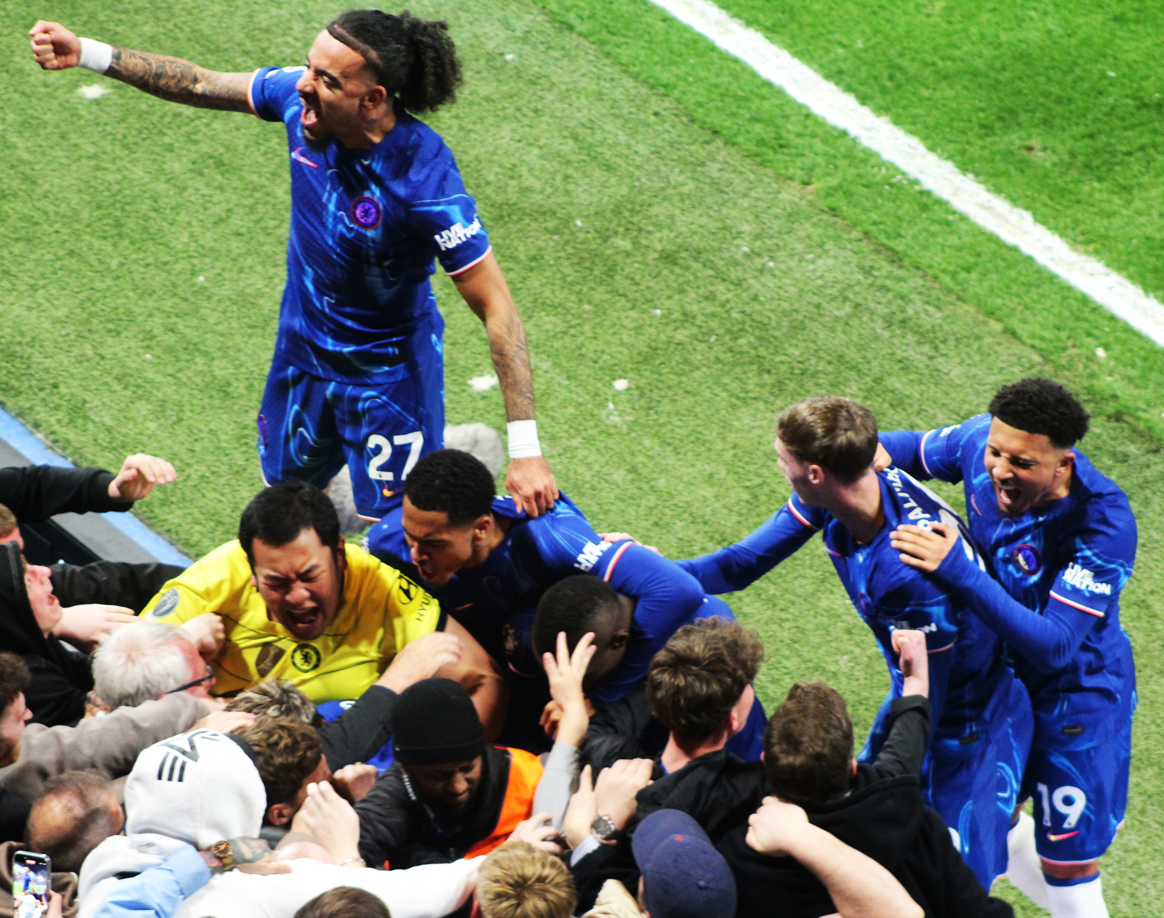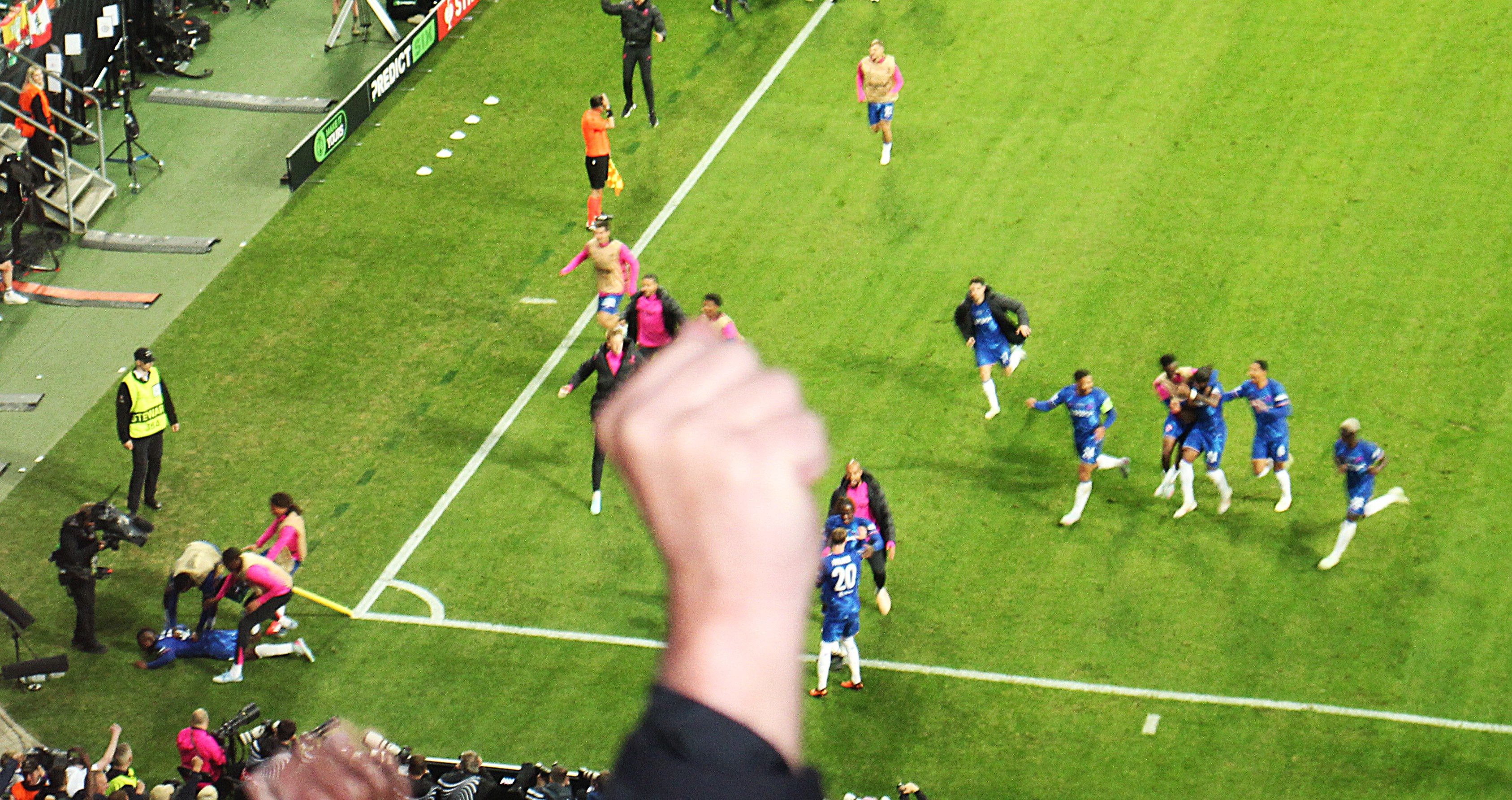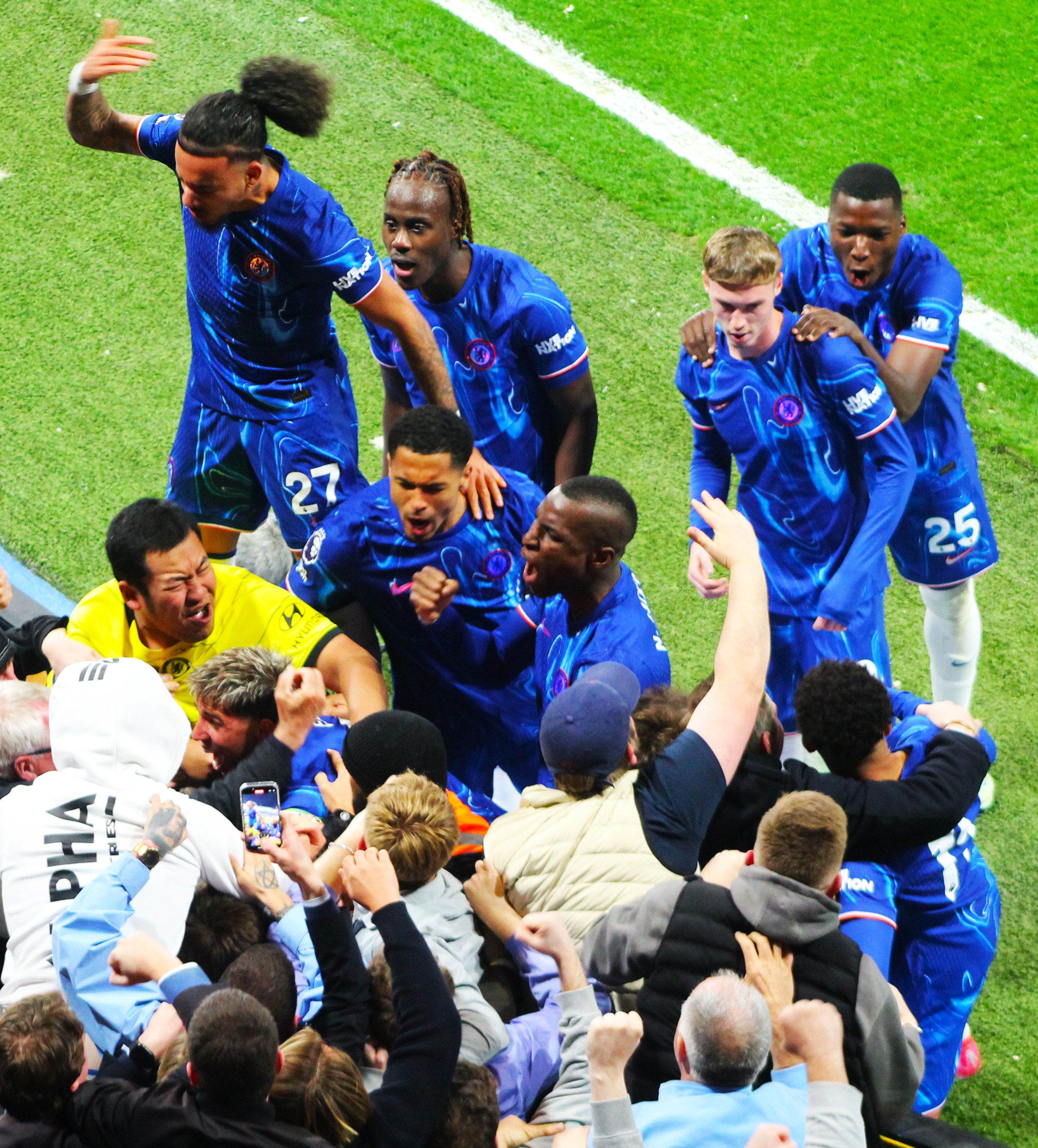 I prepared to set my little camera to record the scorer’s run towards us, but – standing right at the front – I was swamped by on-rushing supporters as it seemed the entire section wanted to get as close to Cole Palmer as possible.