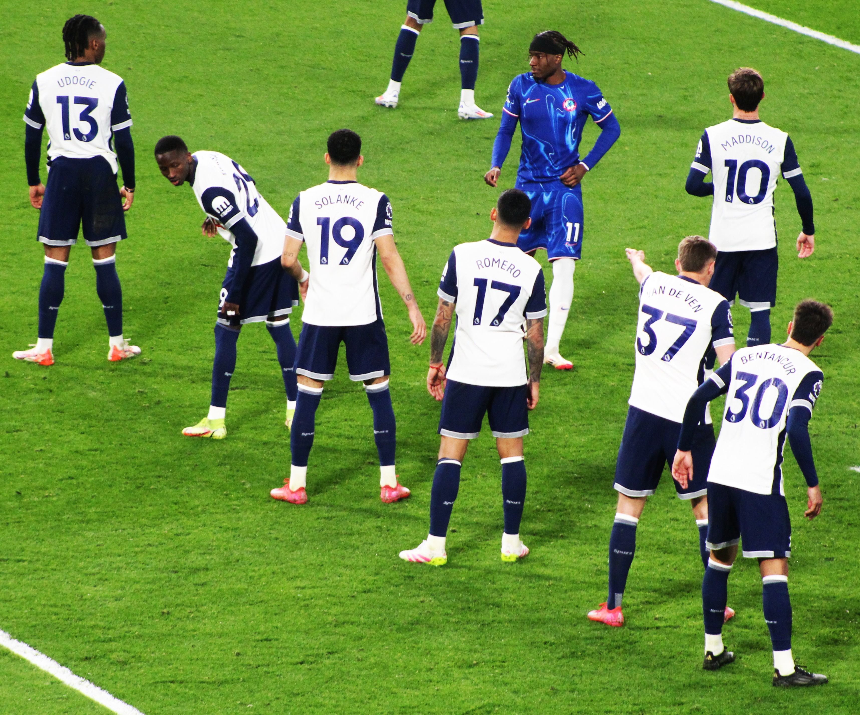 As at Southampton, Chelsea were in all blue. Tottenham were modelling shirts with an Arsenal-style affectation involving navy sleeves.