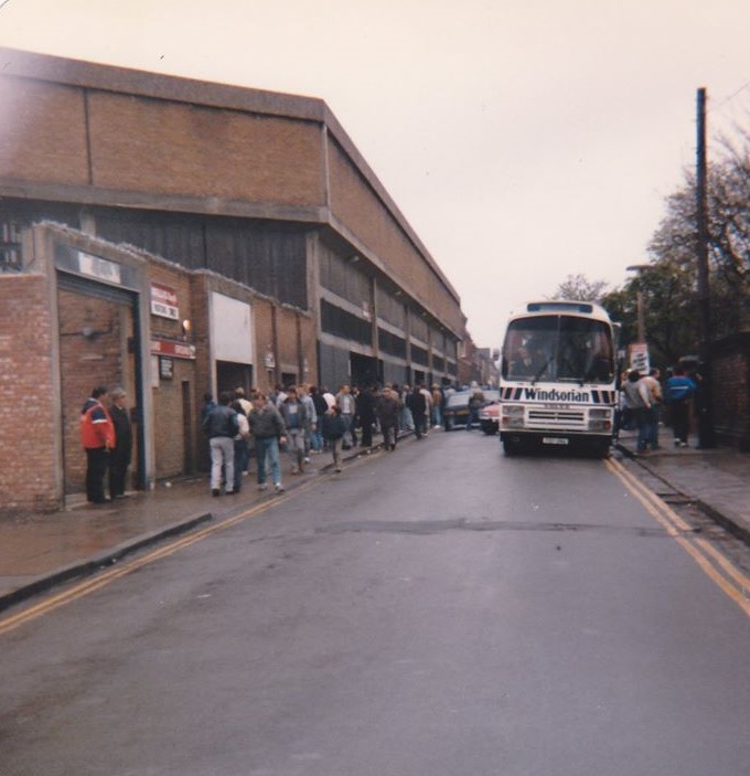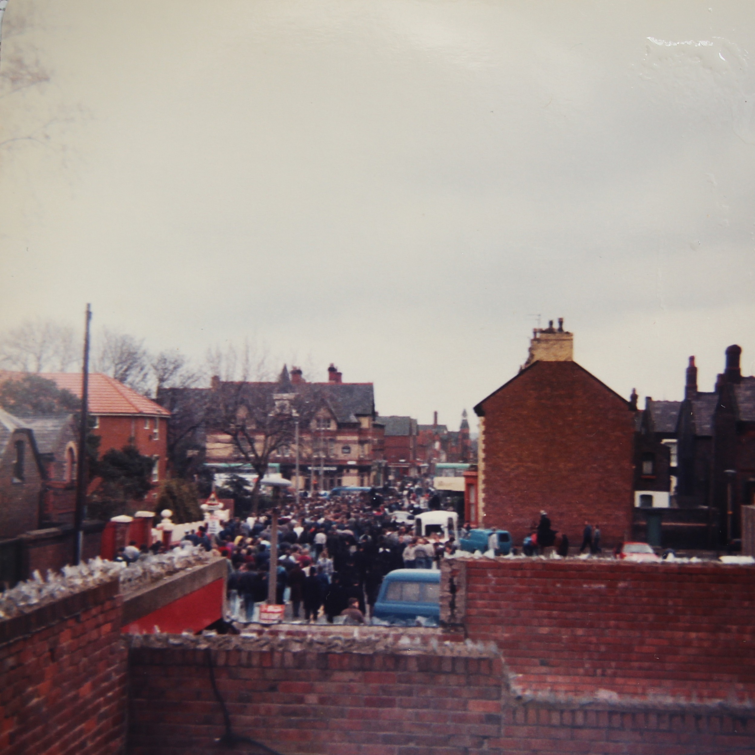 I stopped near a pub called the Park View and spotted a long line of people queuing up along Higgin Street to purchase pies, chips and sandwiches from the front window of a house. I could not resist a photo of this match day scene.