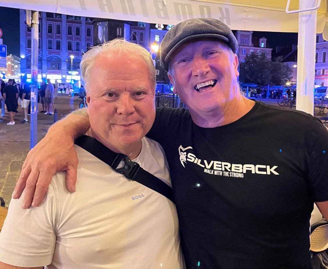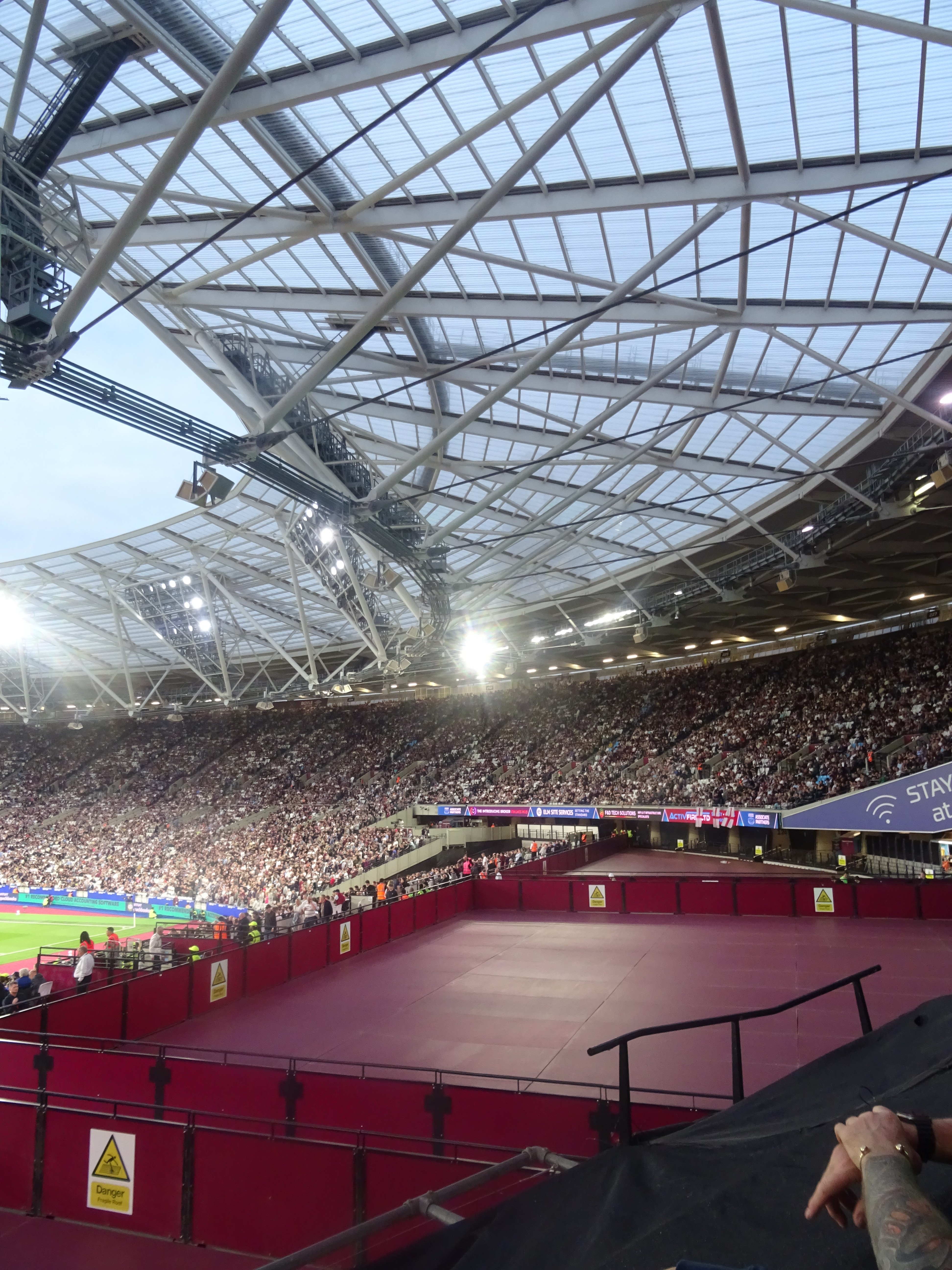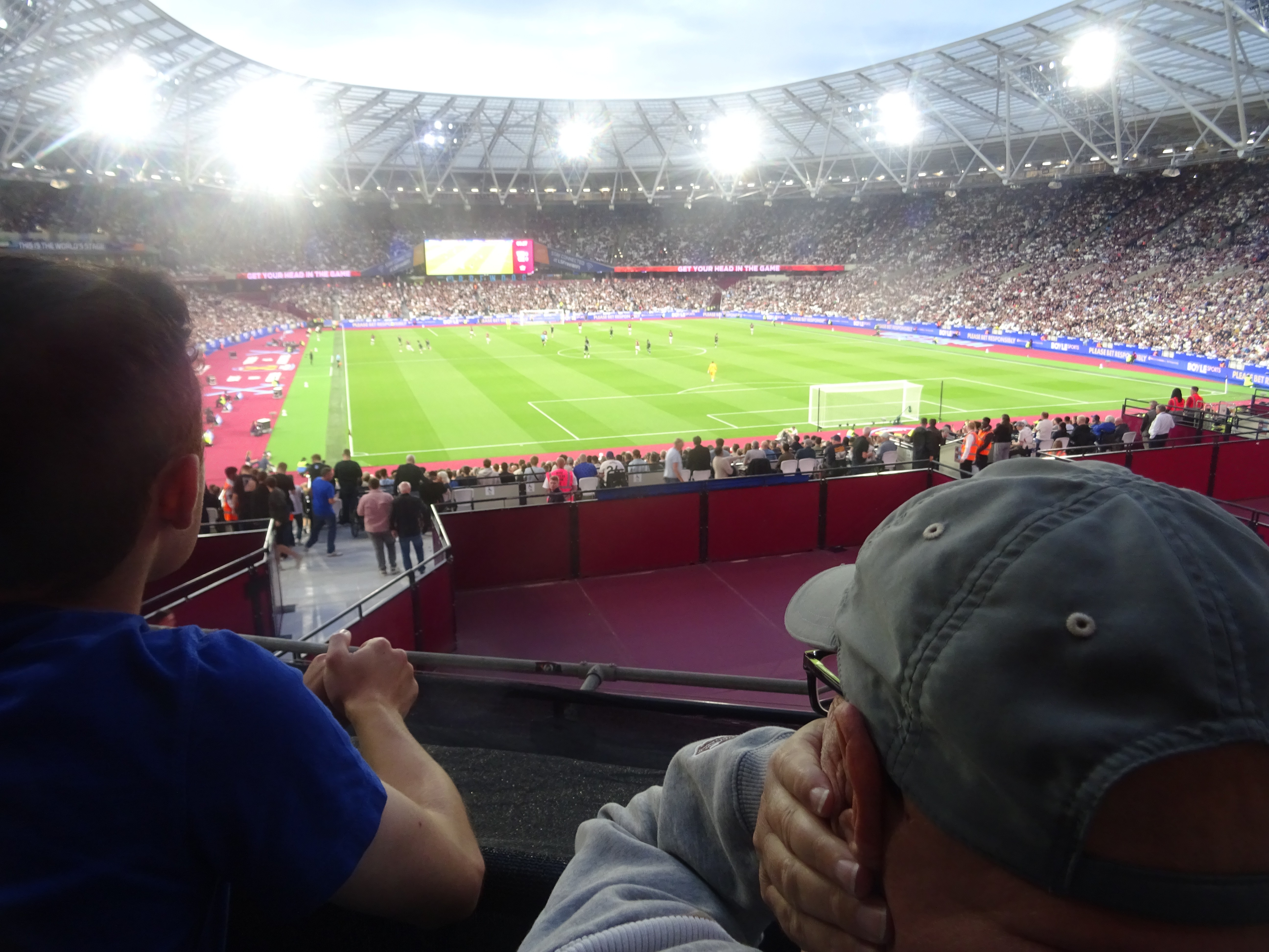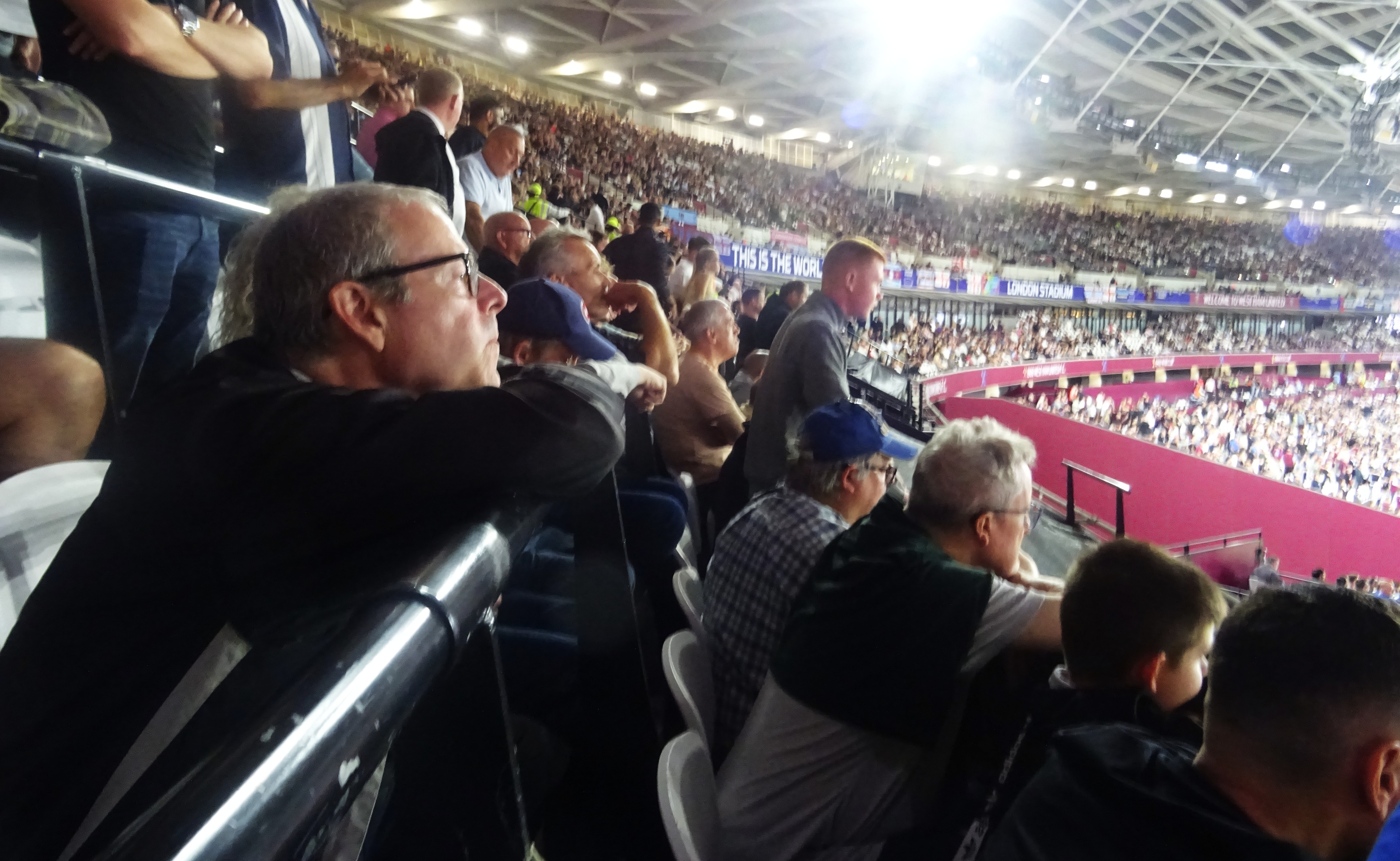 I settled in alongside John in row H, and who should be right behind me but my dear friend Deano from Silverdale, who was lucky with a last-minute ticket.