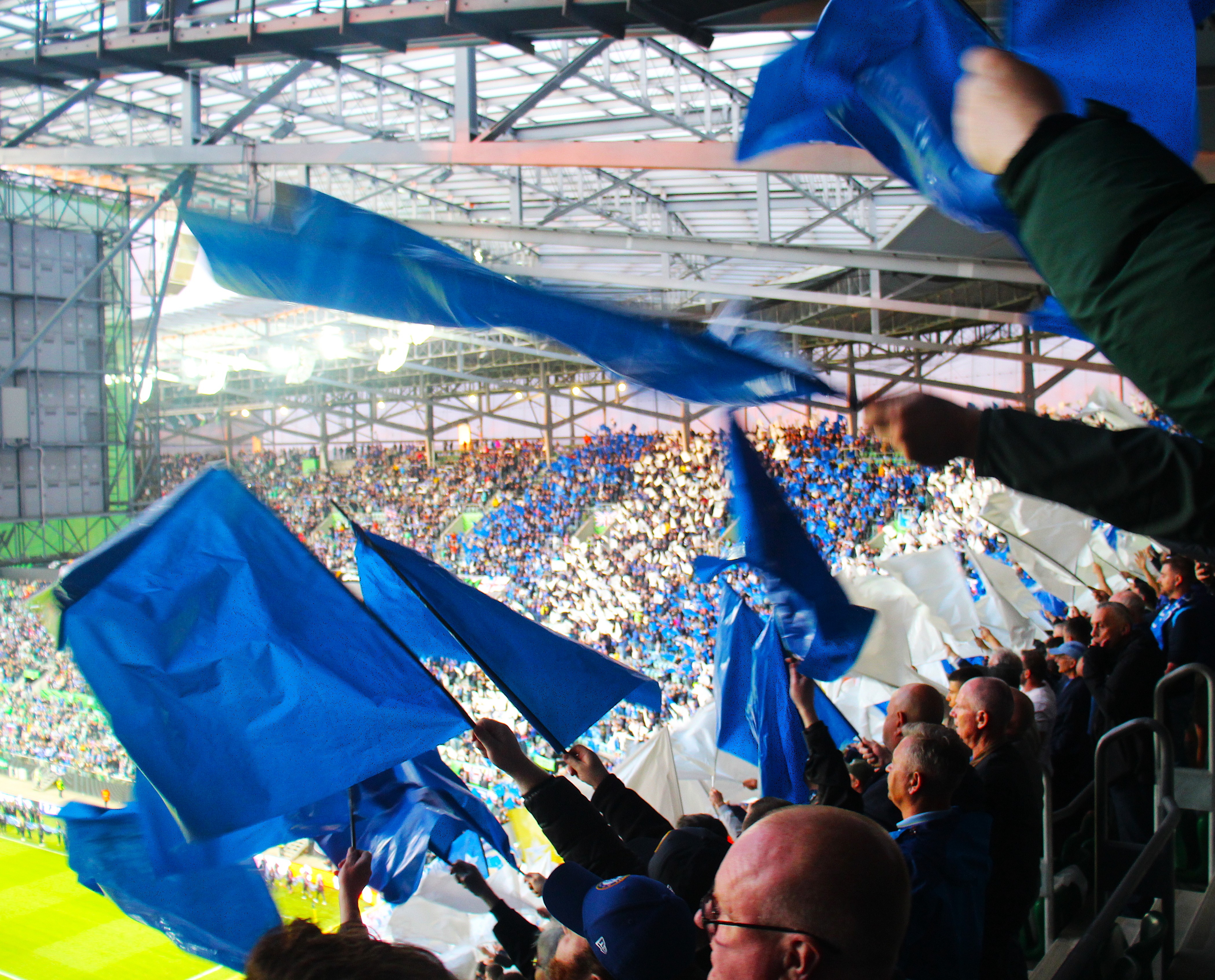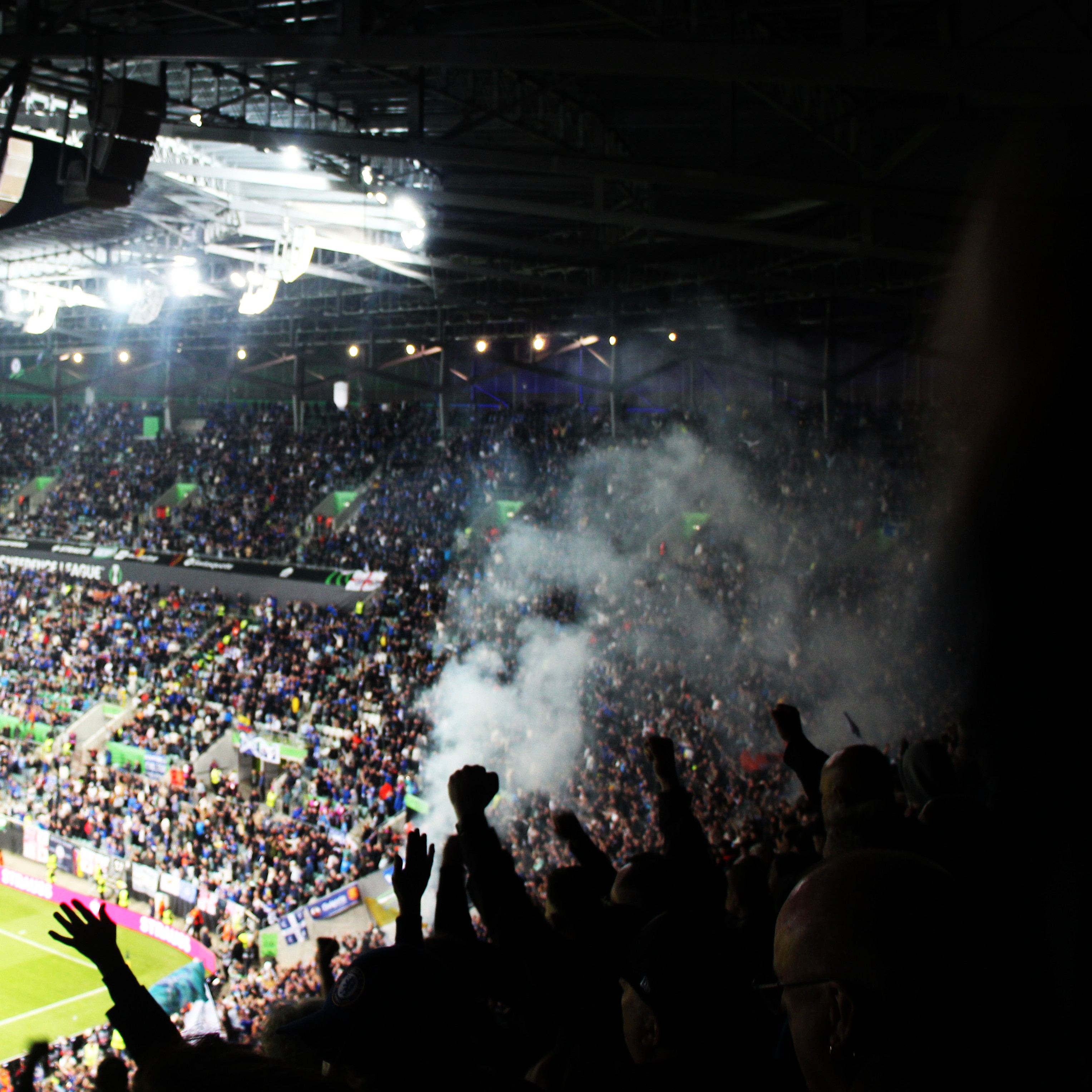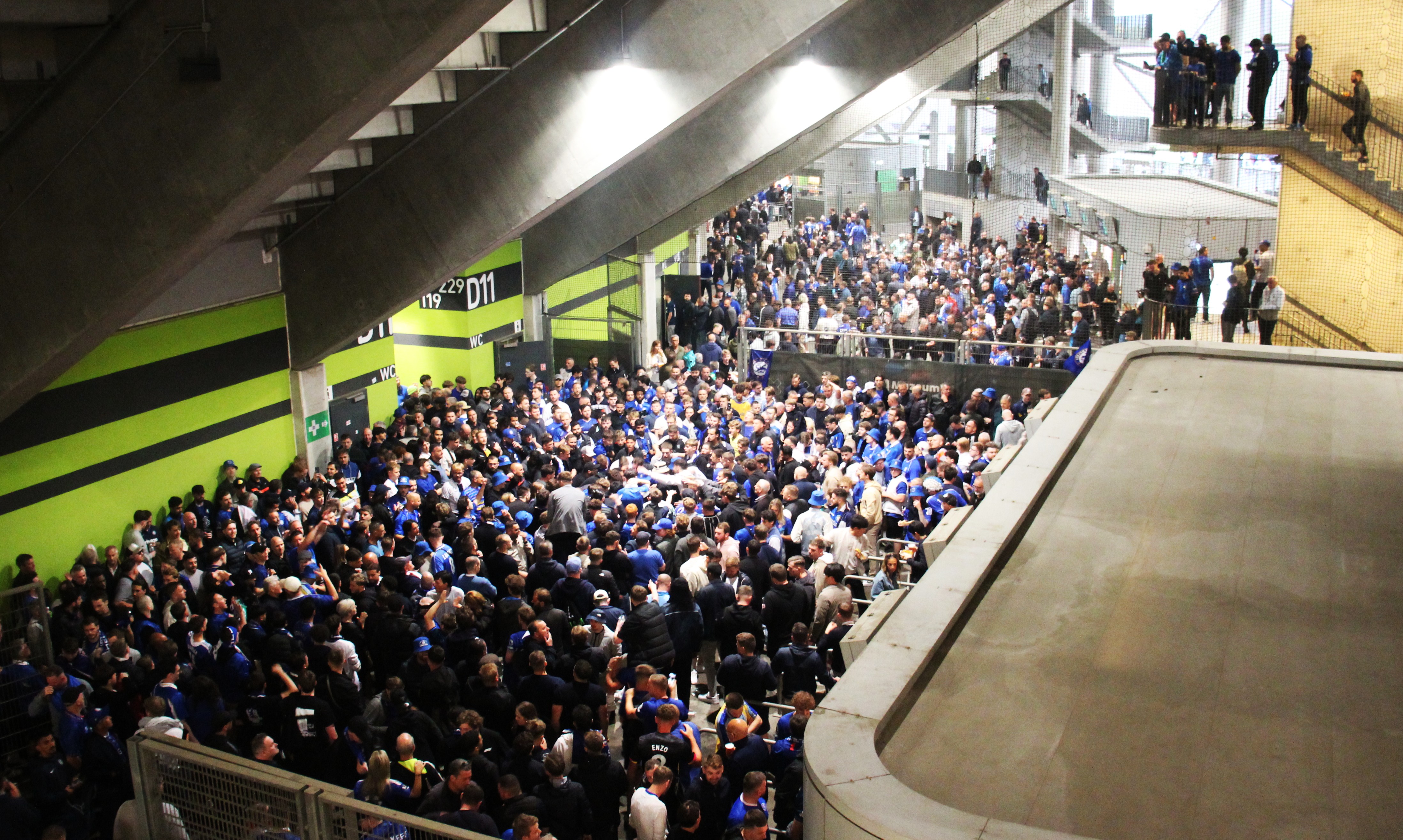 There was an almighty queue to get in, and time was running out. How could I leave my house at 5.50am and still be outside the ground at 12.15pm? Eventually I made it through the turnstiles, but the info on my ticket – Block 6 – bore no relevance to where I needed to aim for. There was a mass of people ahead of me and as I gingerly stepped up some surprisingly steep, but dangerously narrow, steps I saw the LED lights of the pre-game razzamatazz reflected on the stairwell walls.