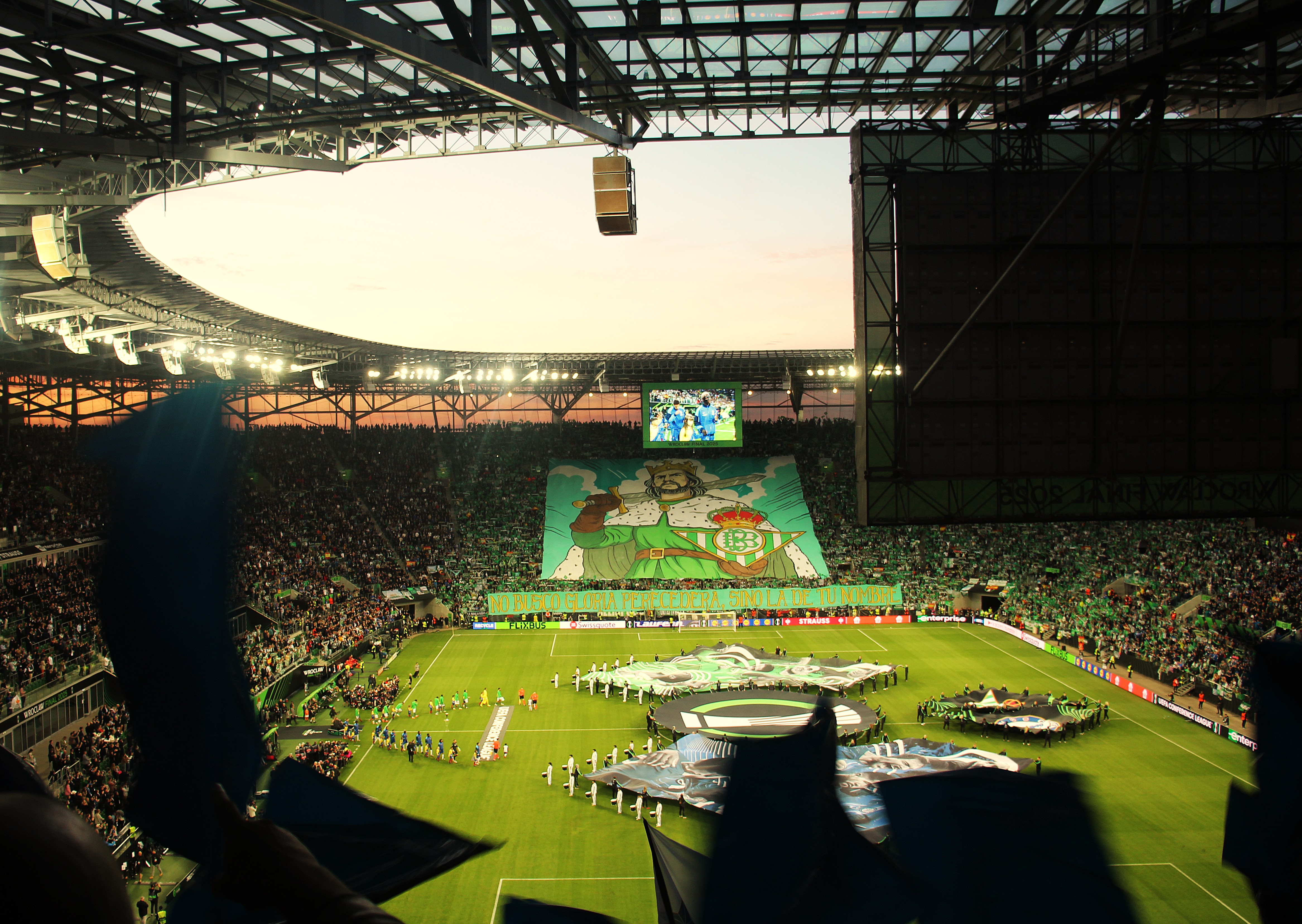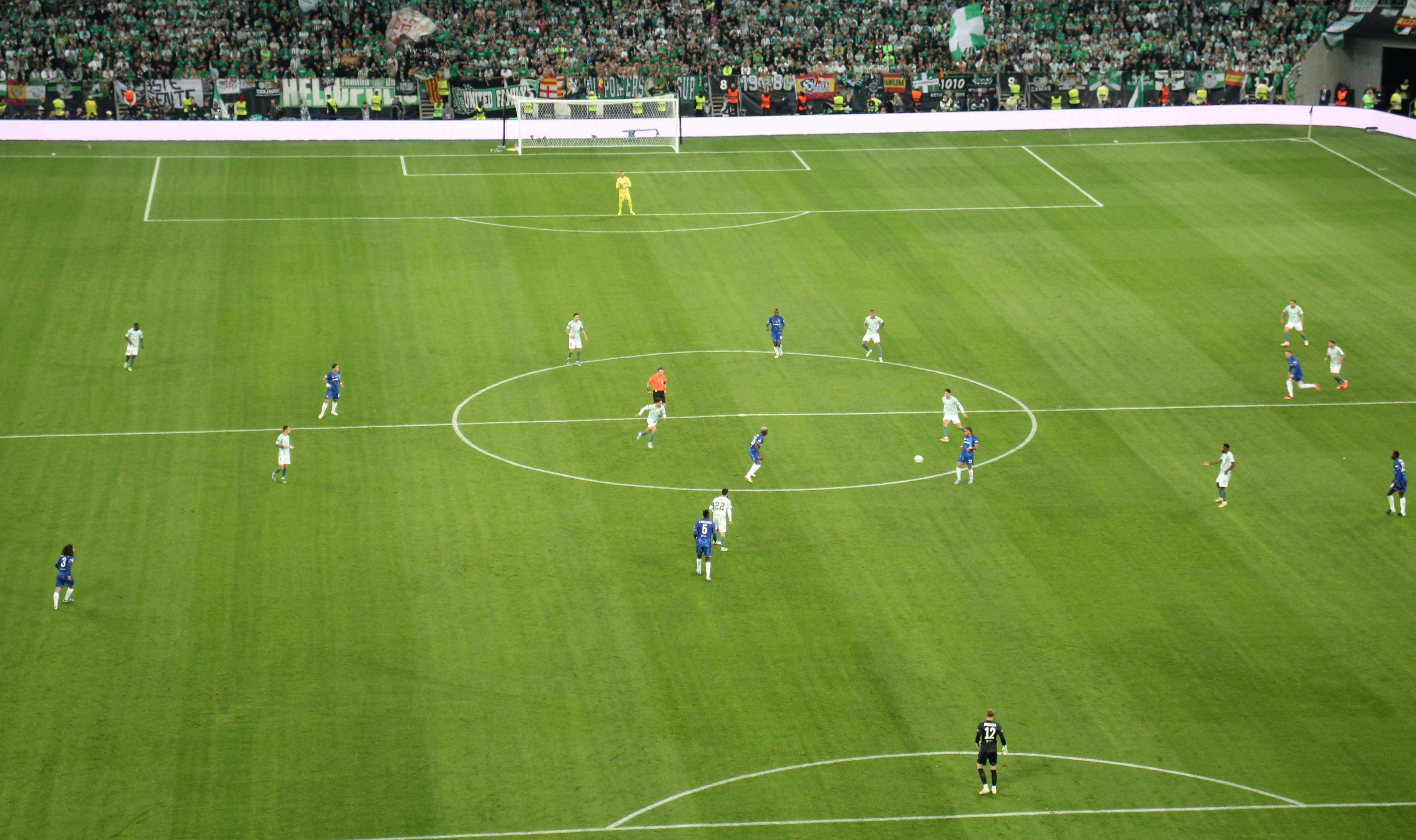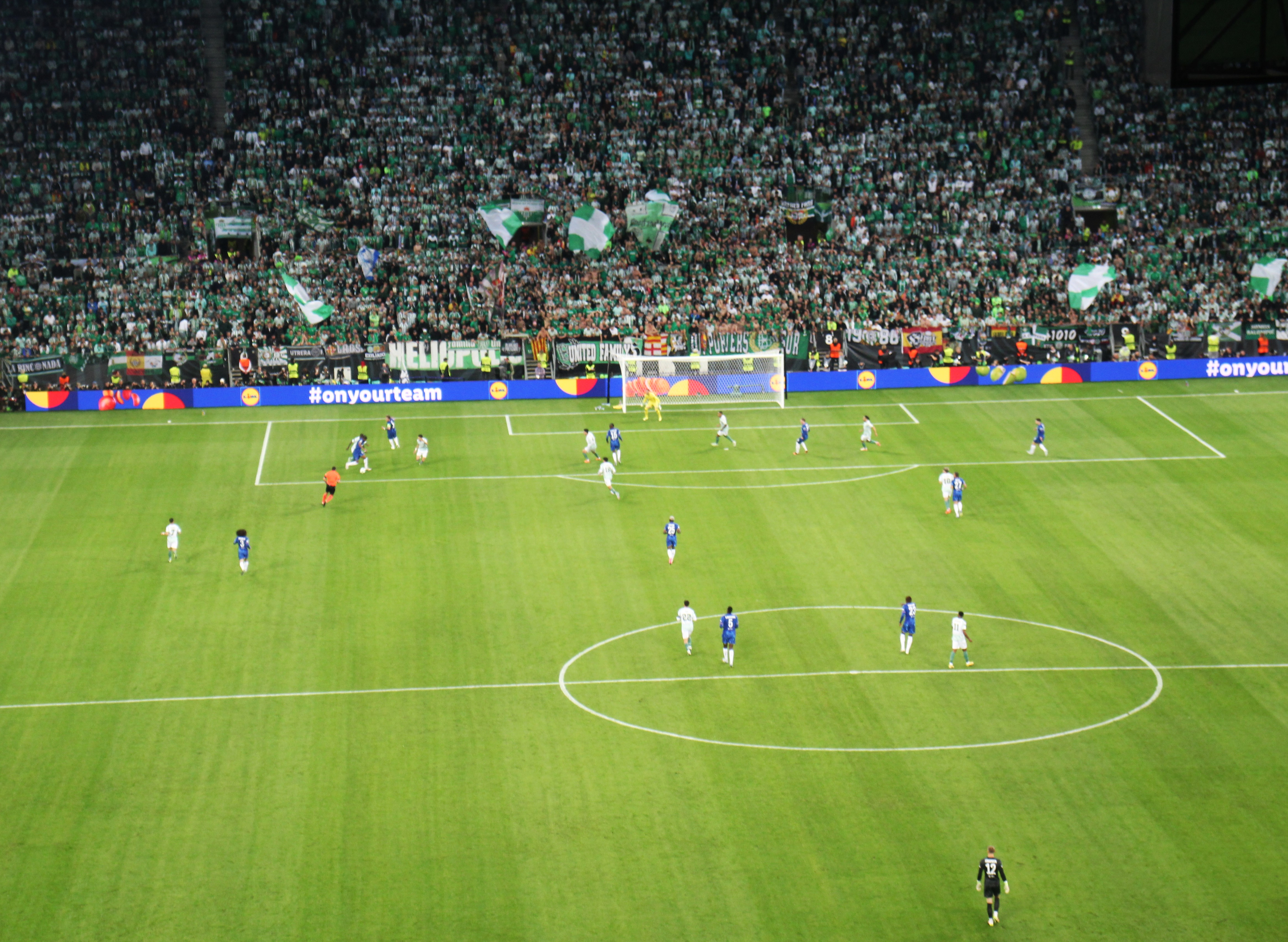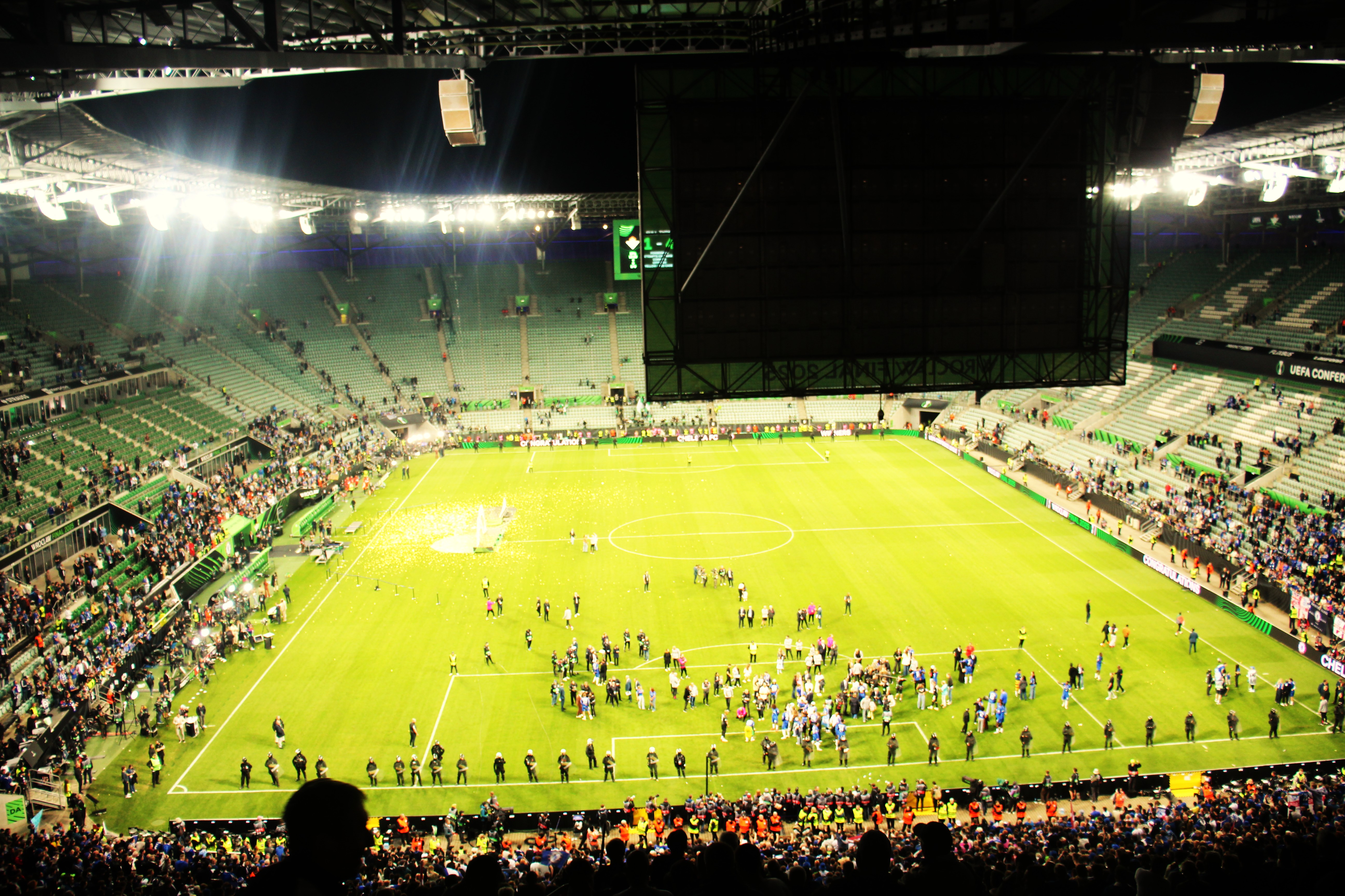 For a few moments, every spare inch of possible space within the stadium flashed LED lighting, urging support of the home team. The mundane grey interior of this old stadium metamorphosed into Times Square. It was quite an ordeal on the senses.