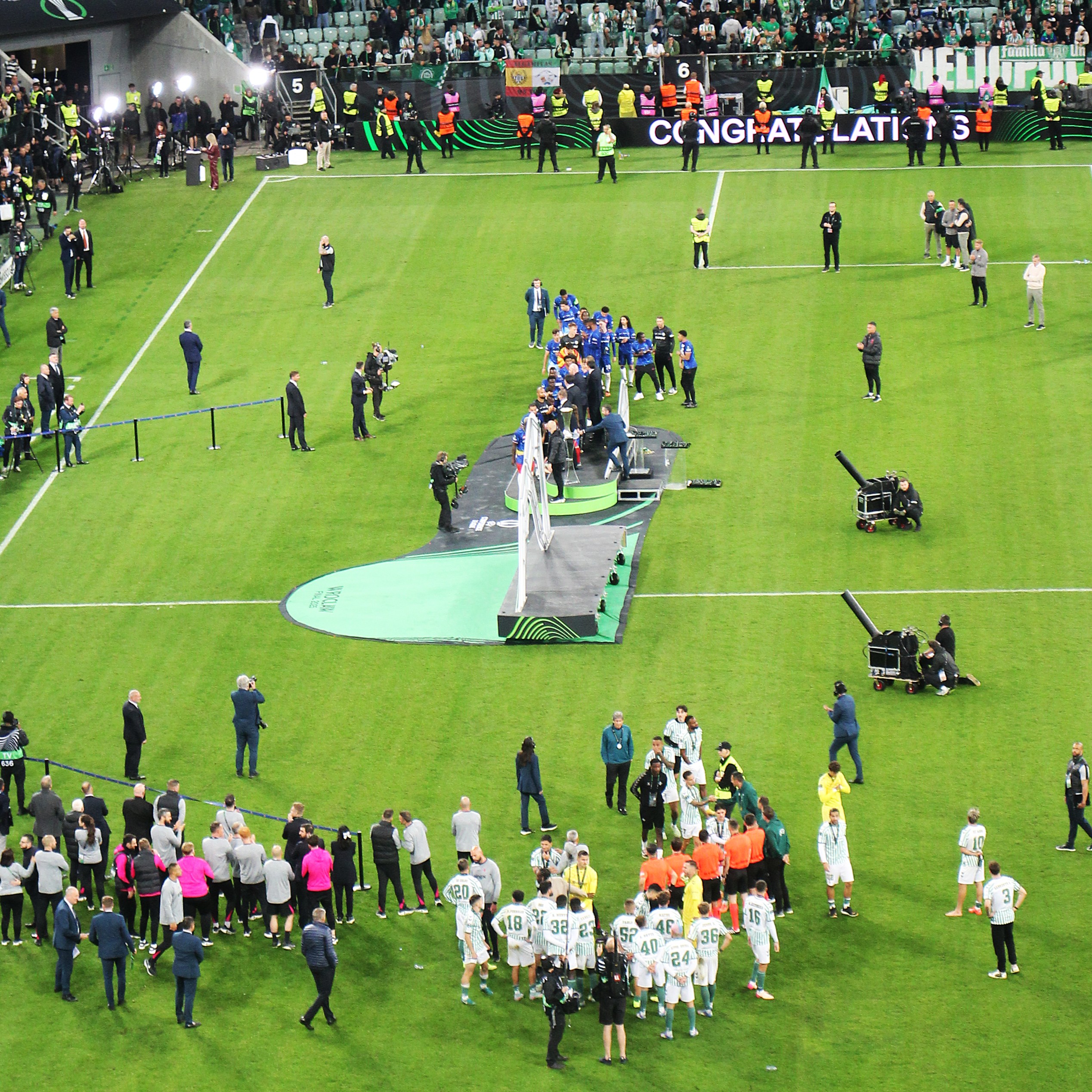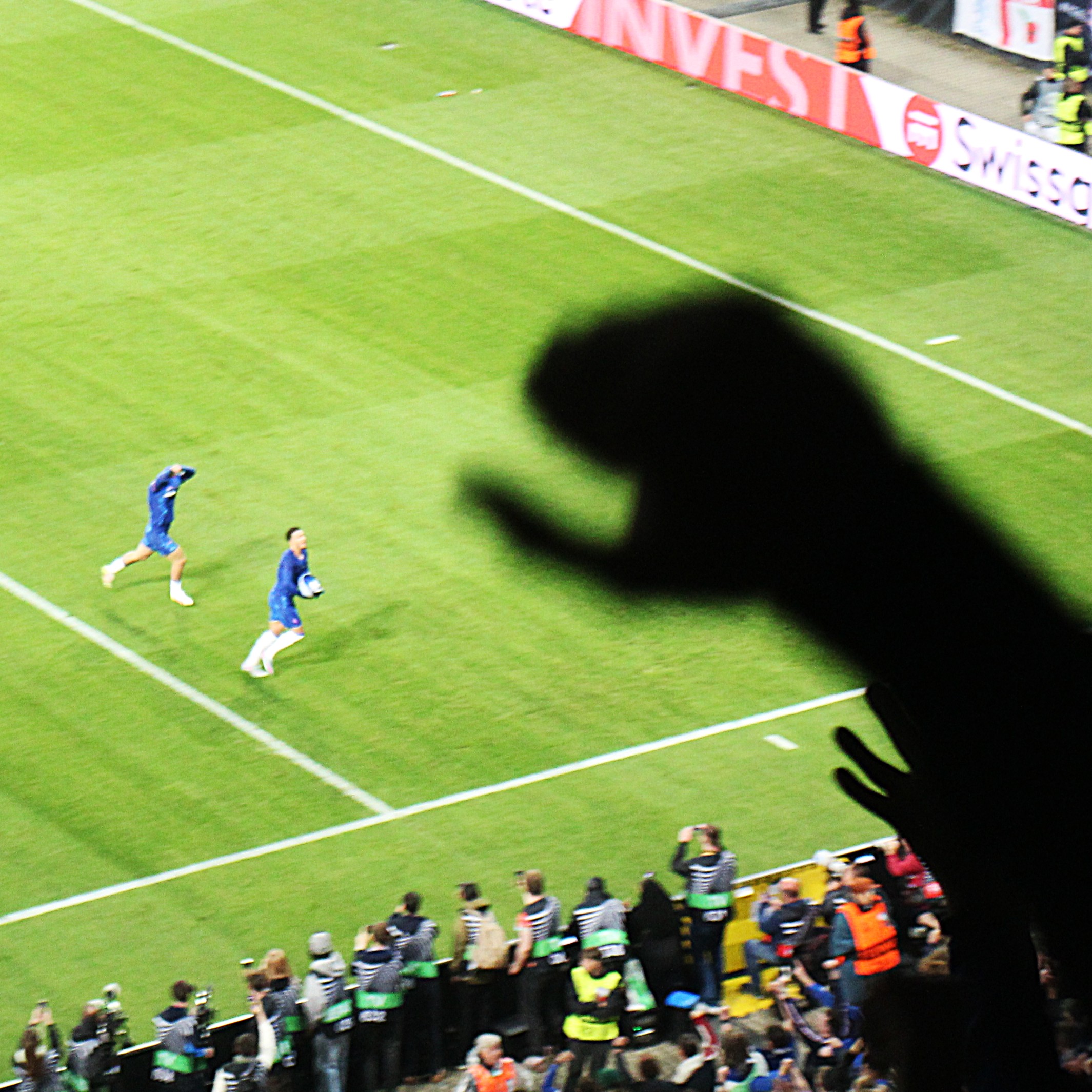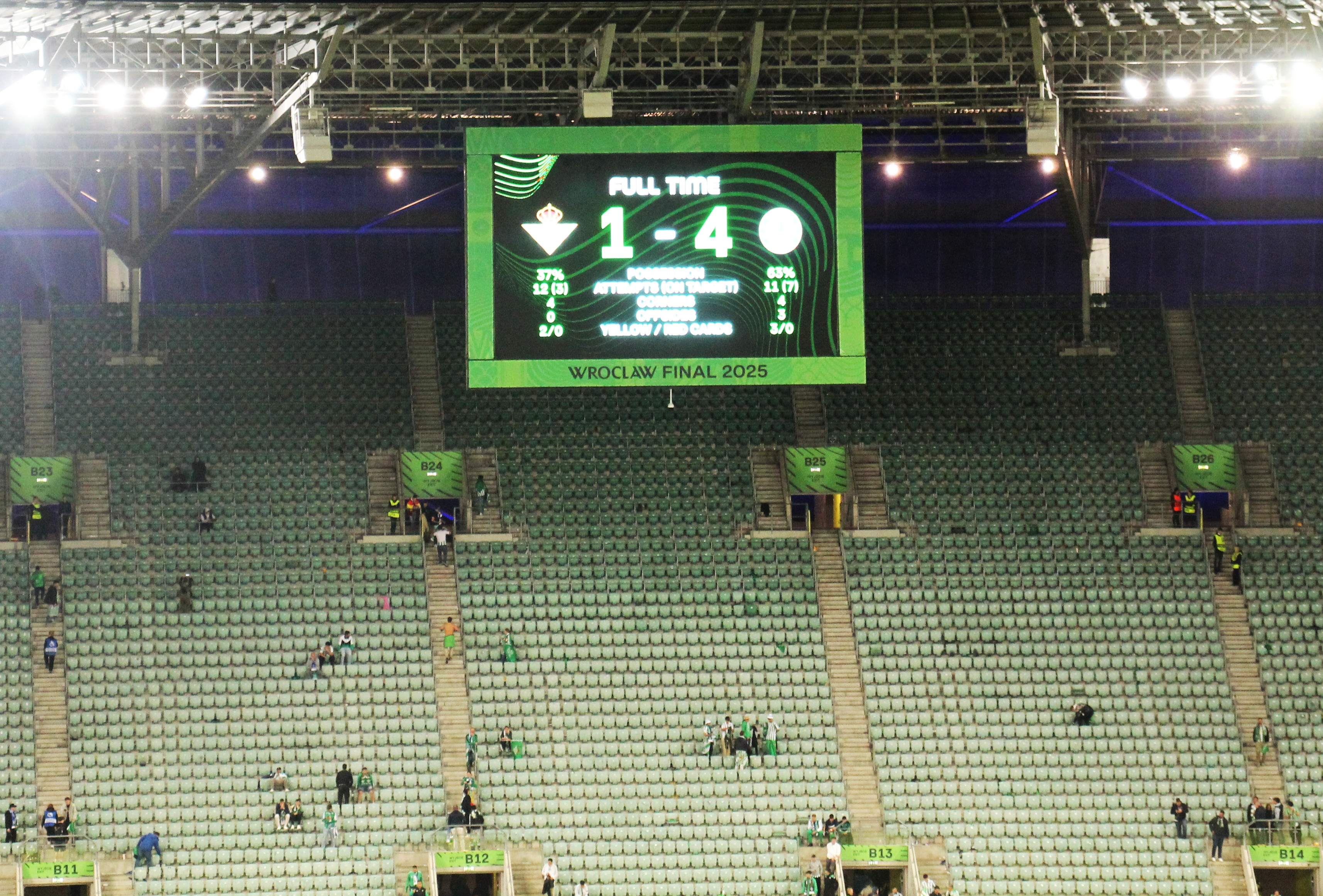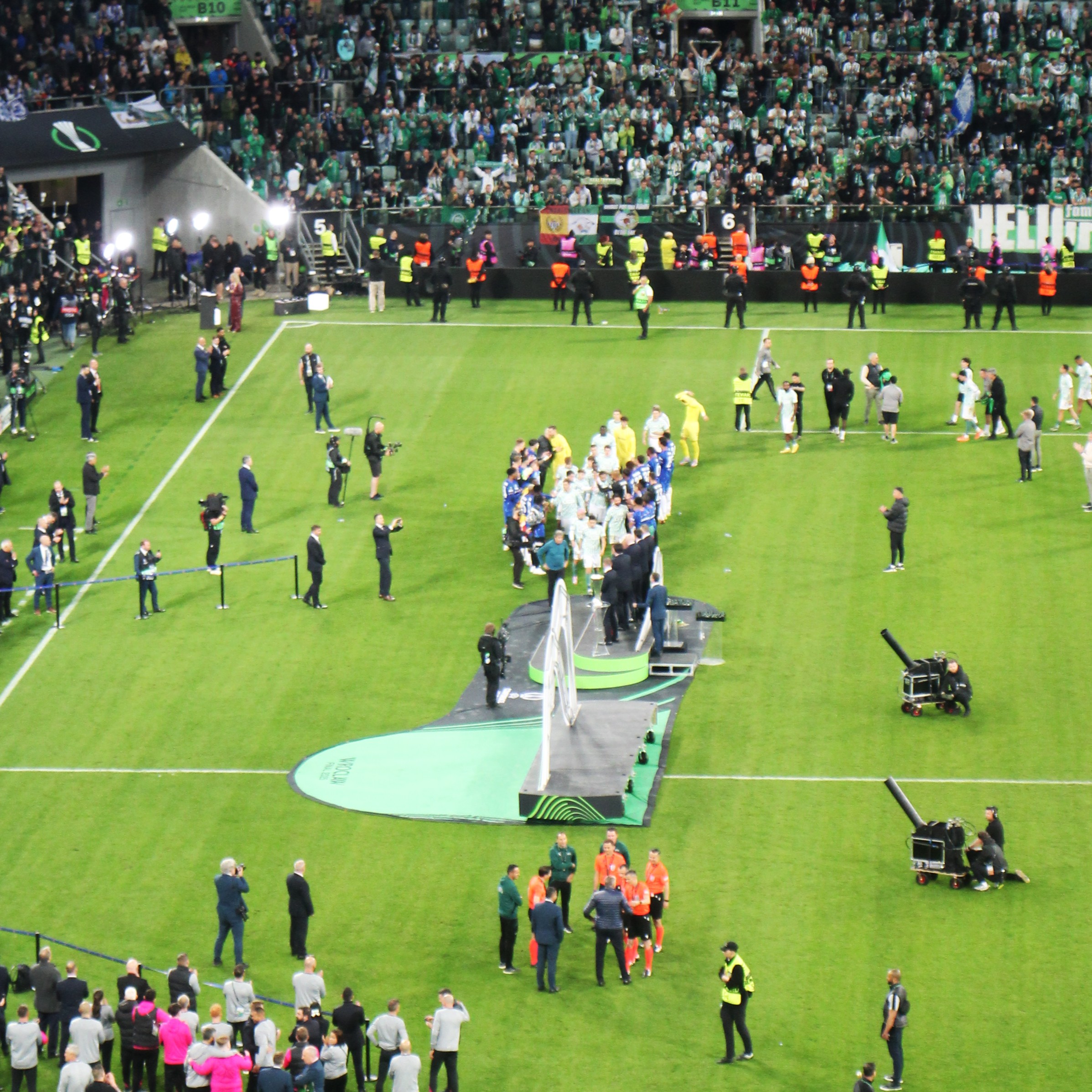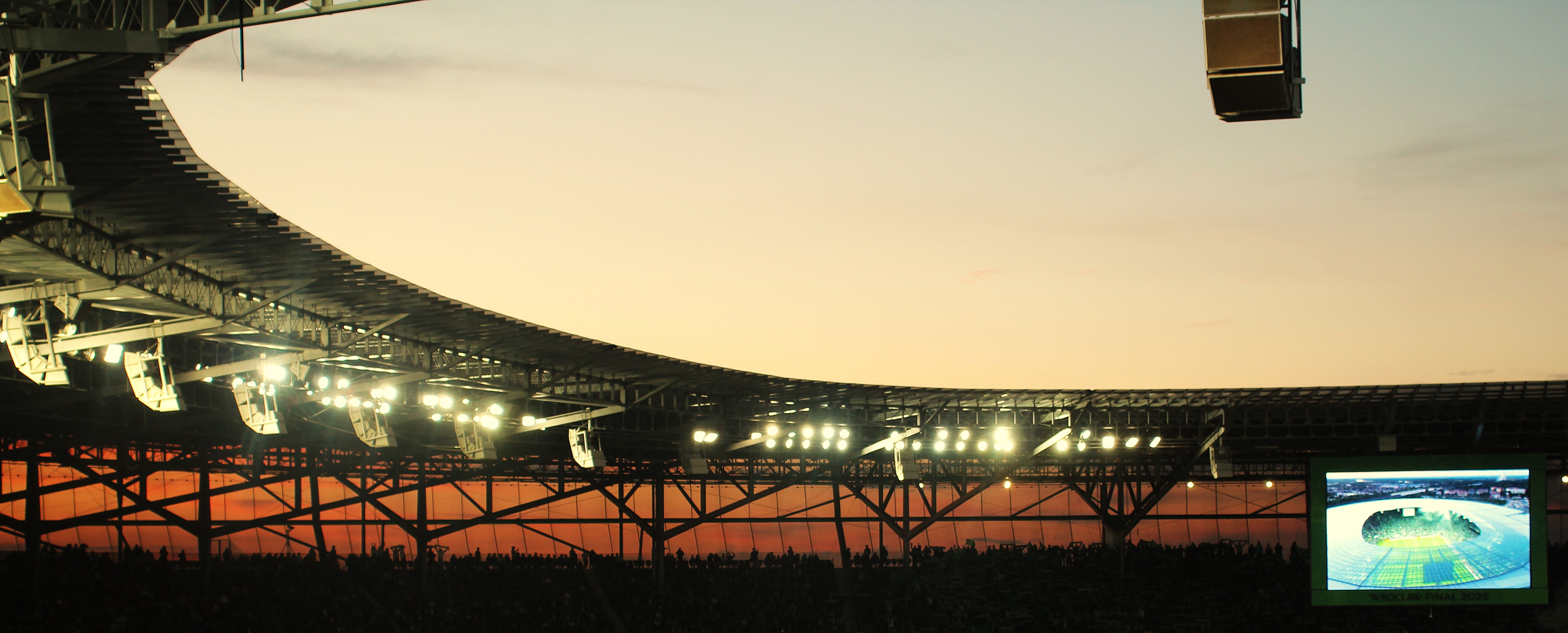 For a few moments, every spare inch of possible space within the stadium flashed LED lighting, urging support of the home team. The mundane grey interior of this old stadium metamorphosed into Times Square. It was quite an ordeal on the senses.