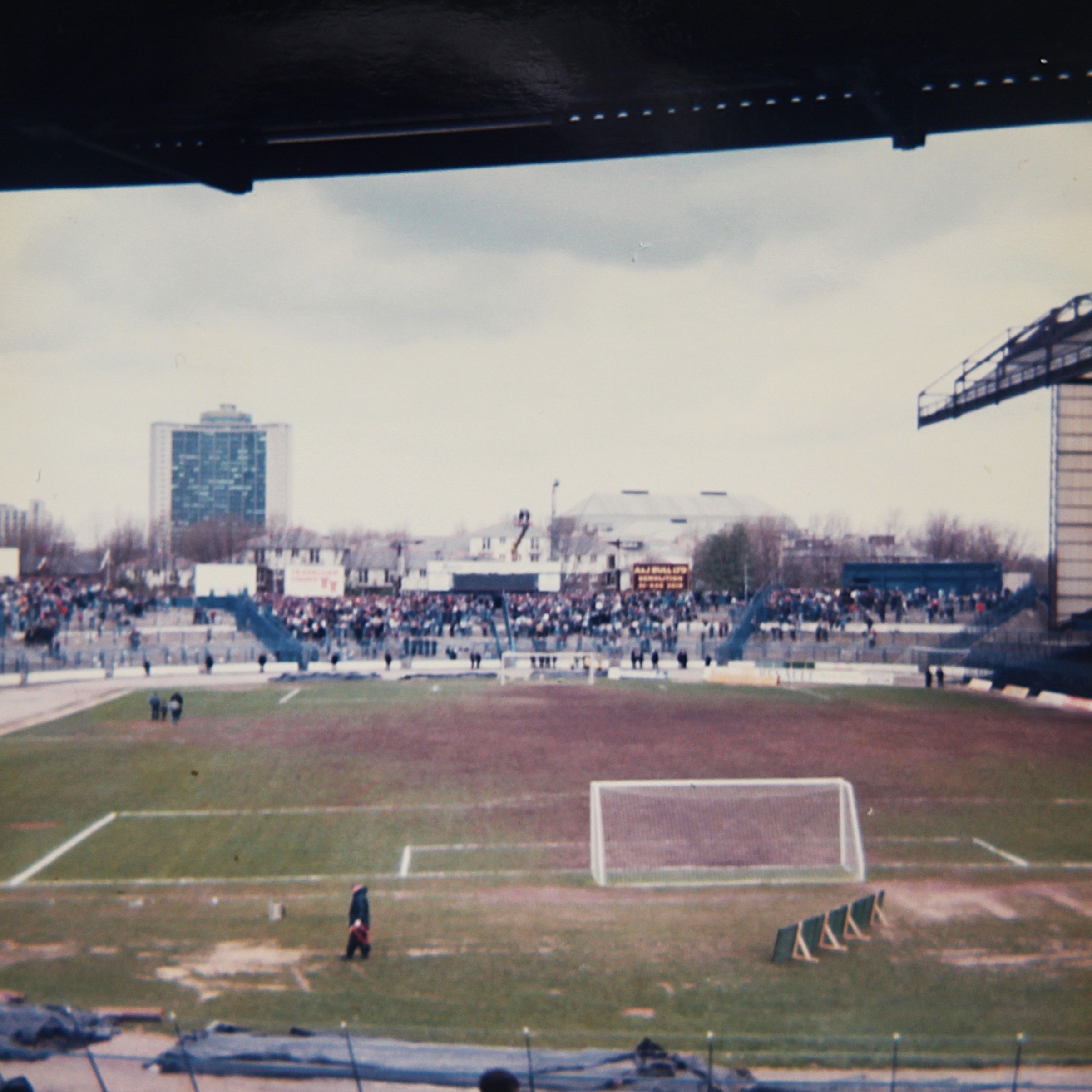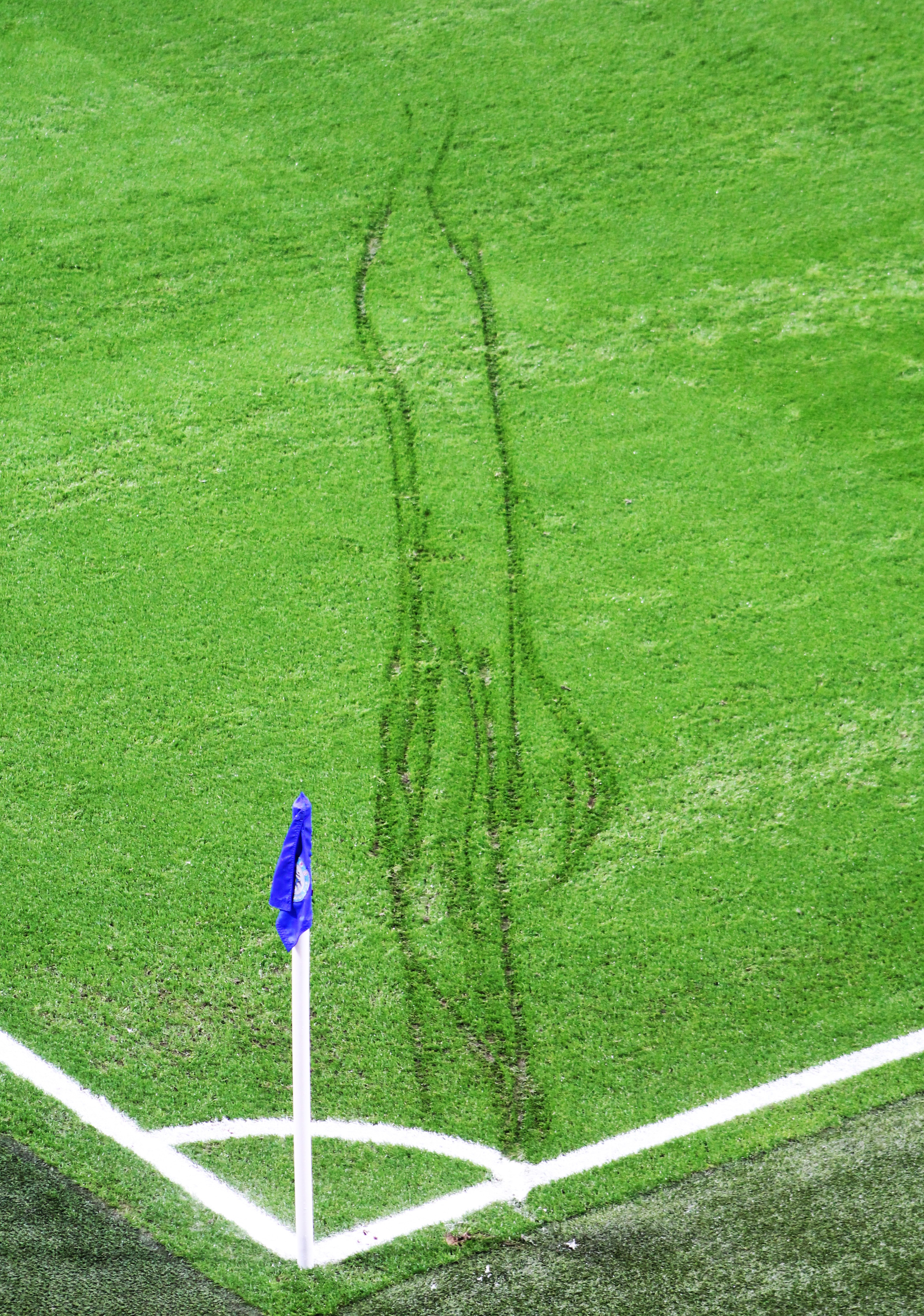I was down in the bottom corner, row 2, right by the corner flag with Gary and John. It seemed we were below the level of the pitch; it must have been the camber.